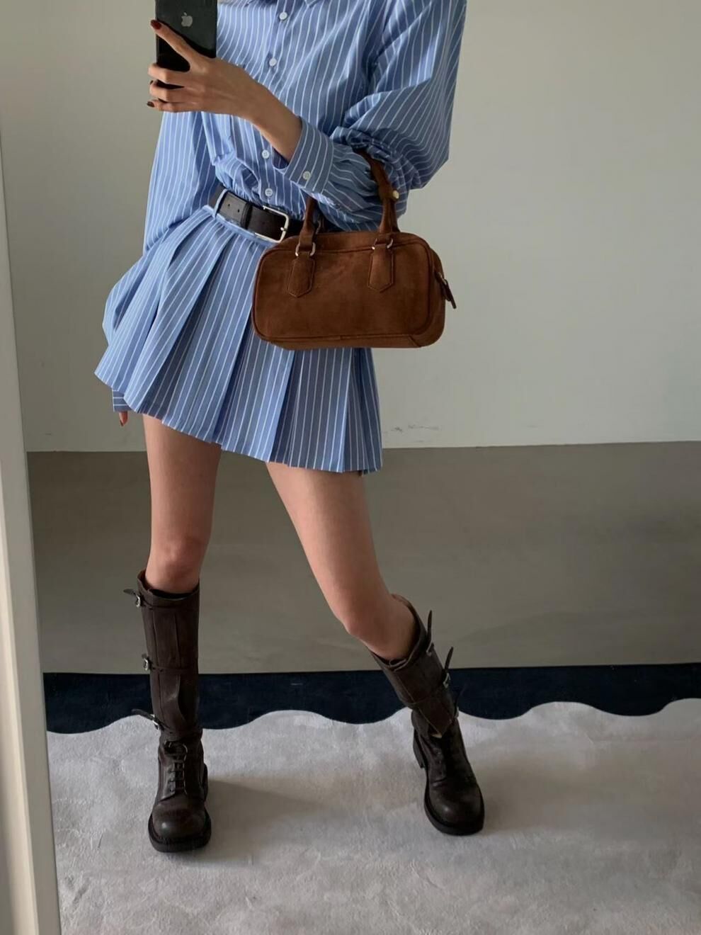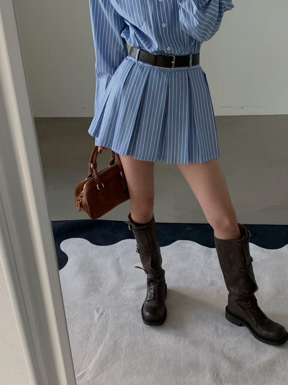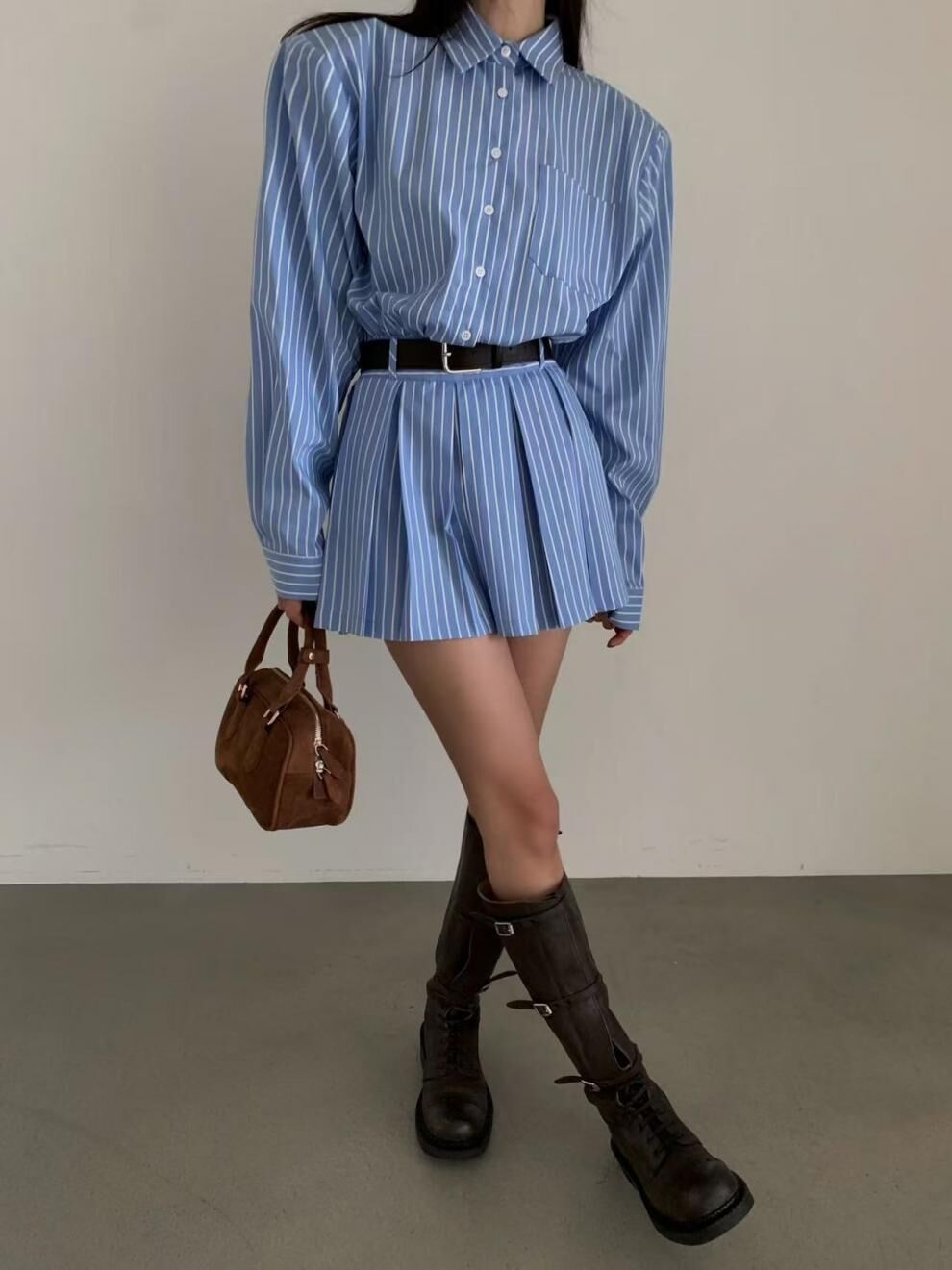 學院風 2件條紋襯衫洋裝