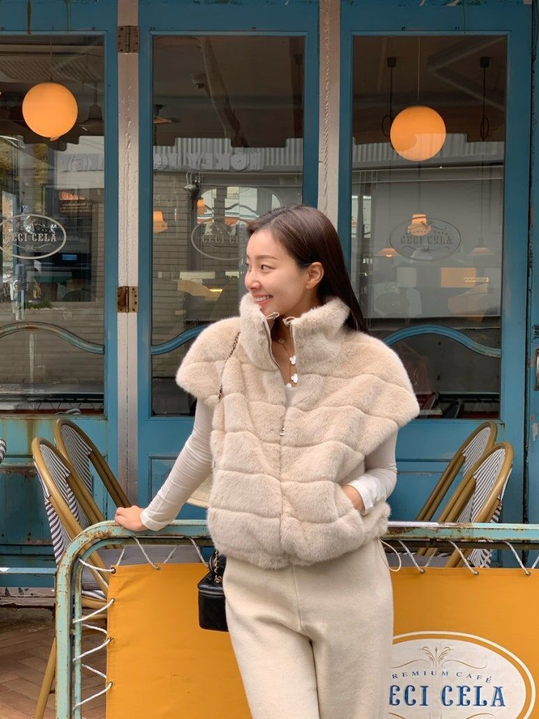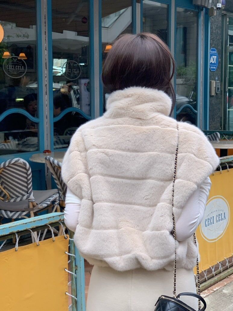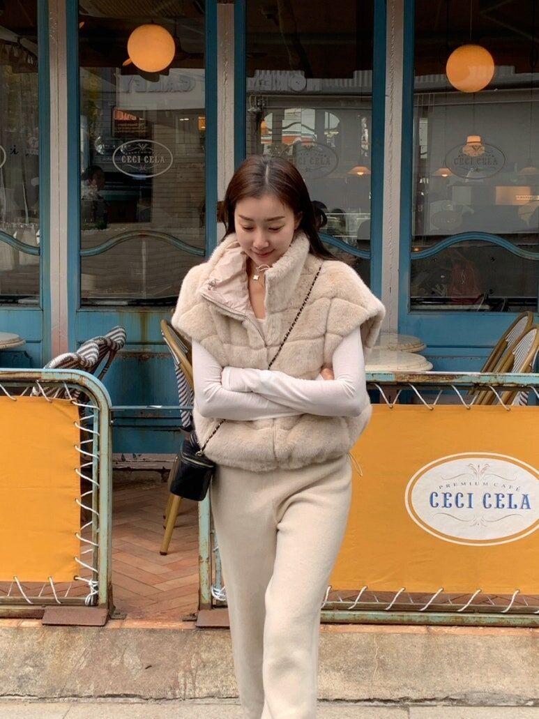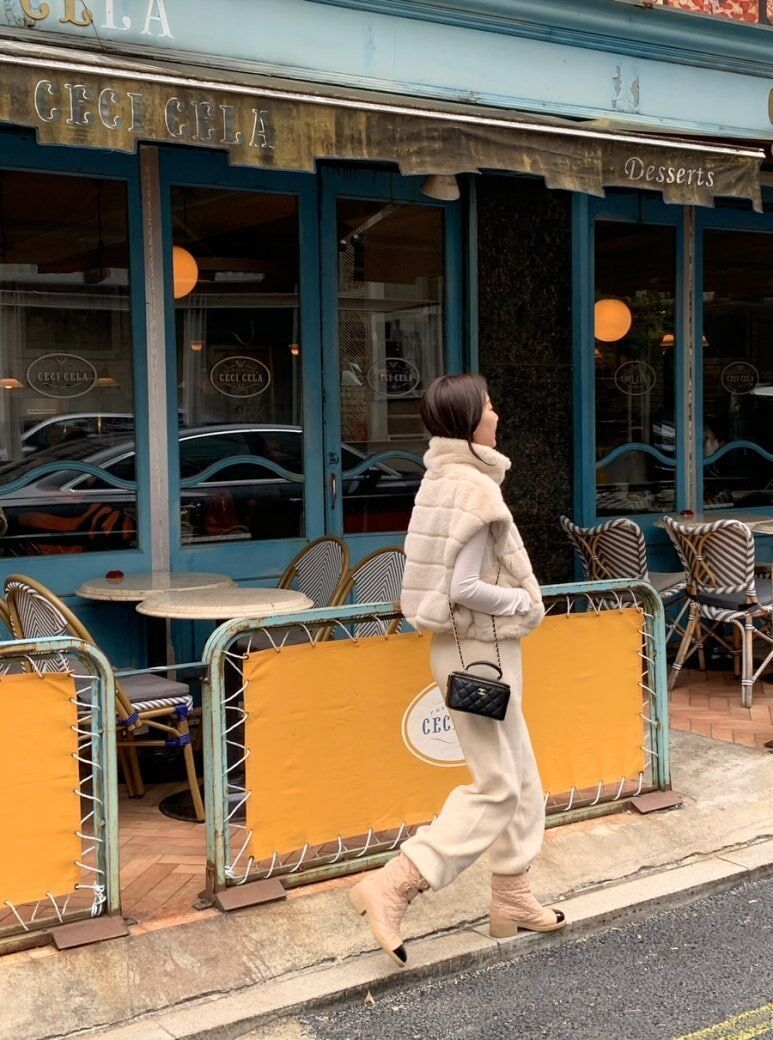 東大門水貂毛 高領背心(杏/黑)