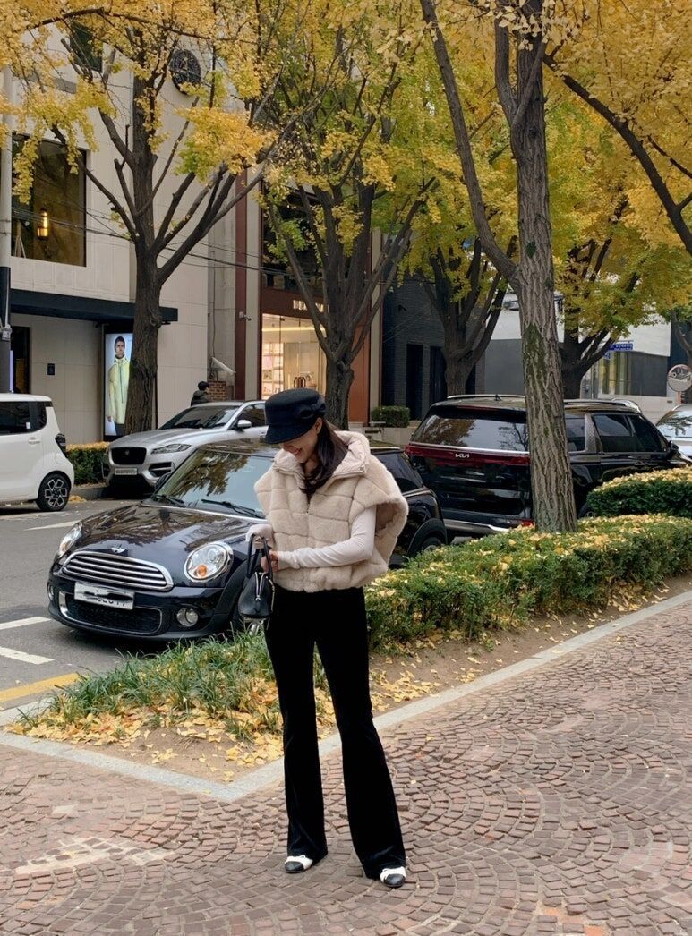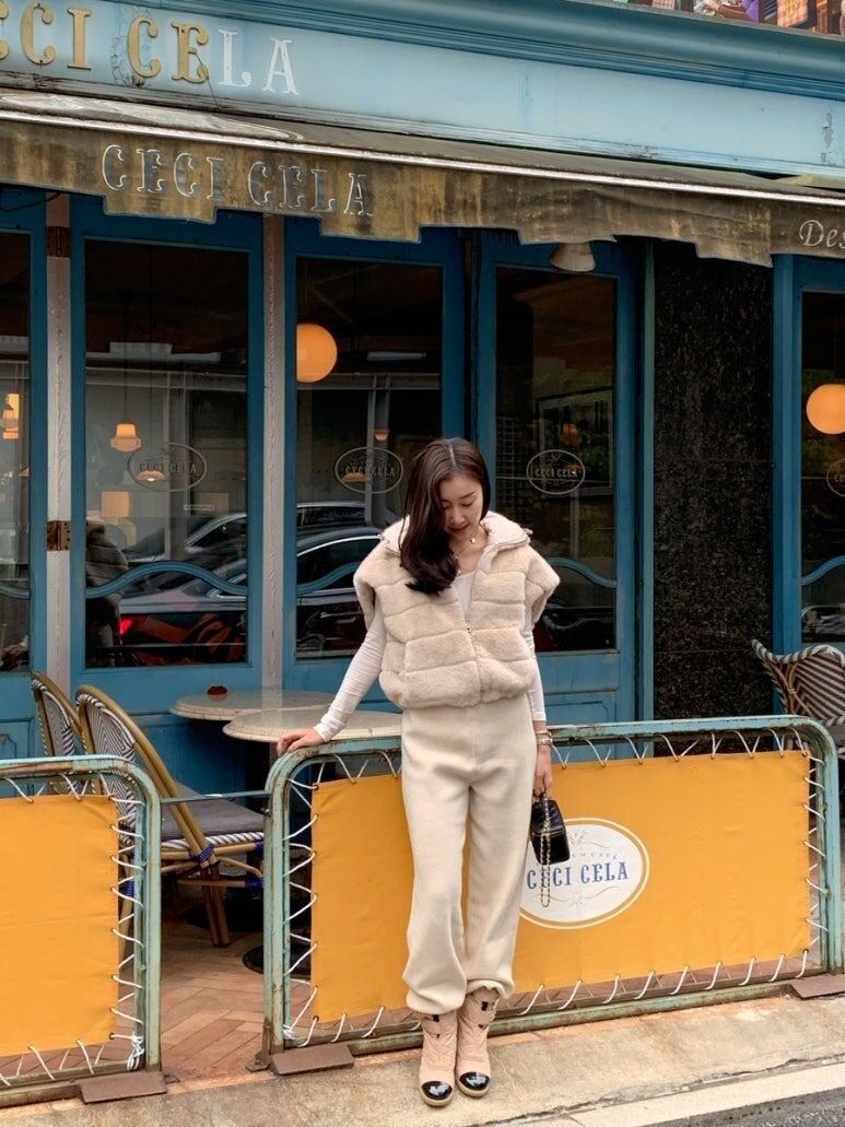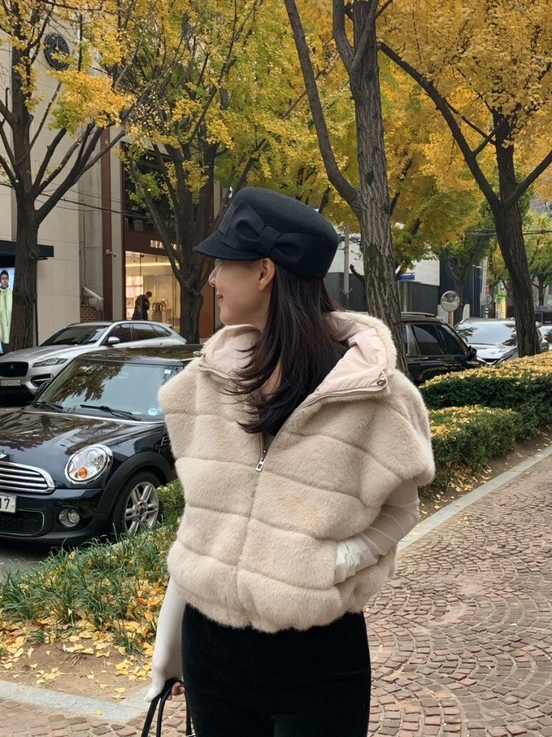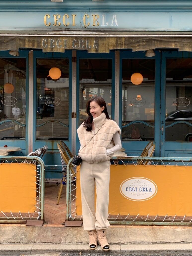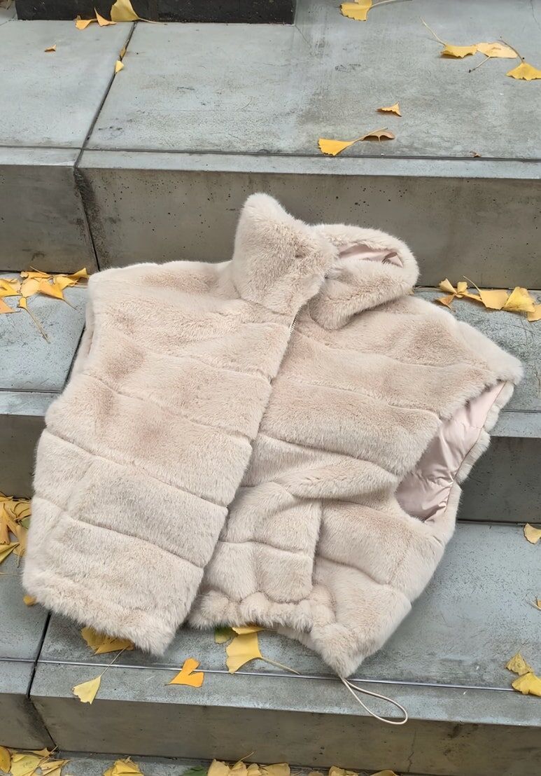 東大門水貂毛 高領背心(杏/黑)