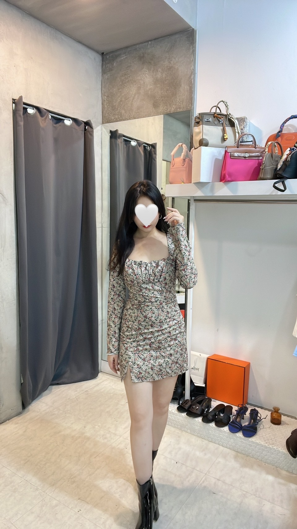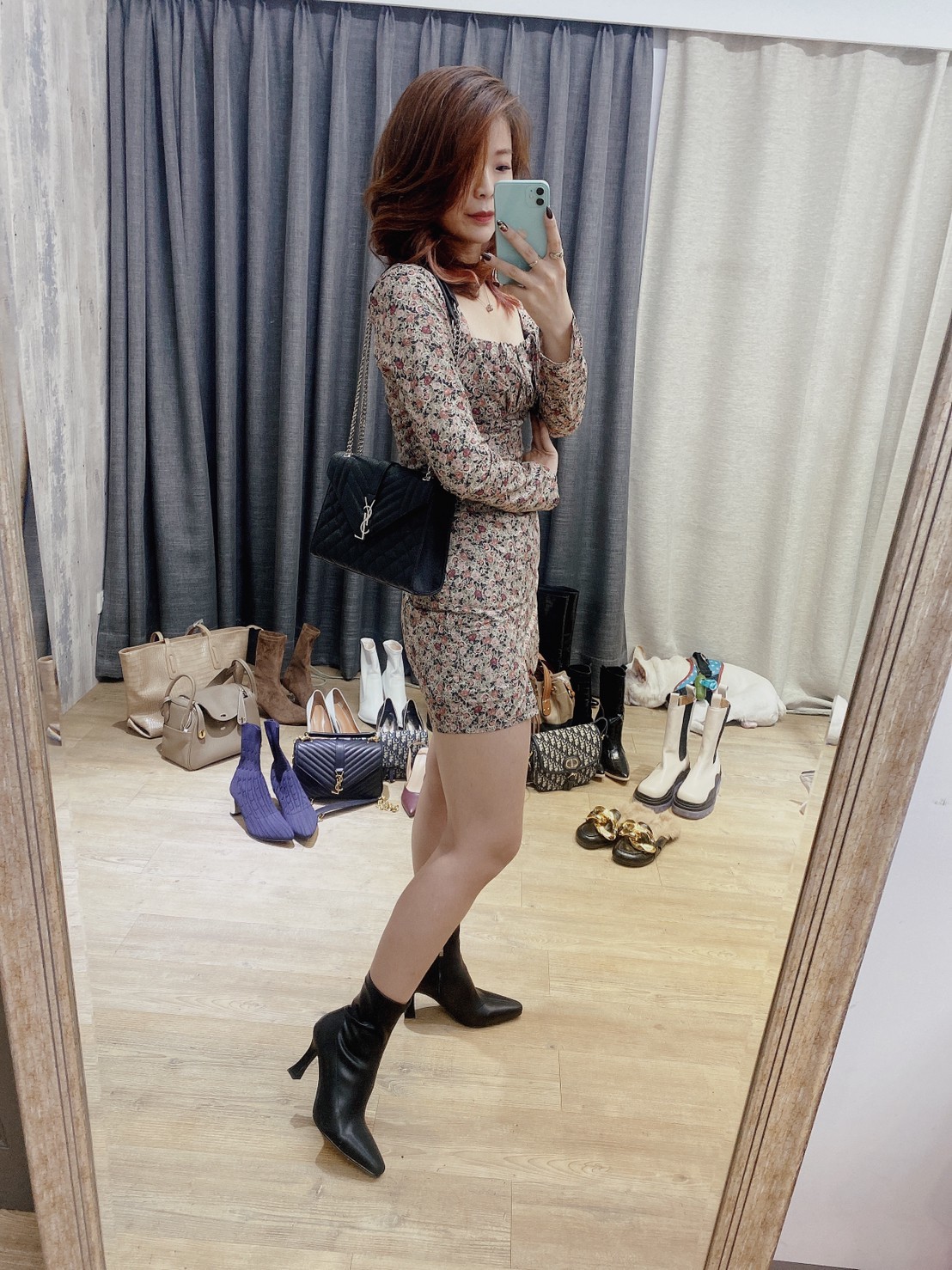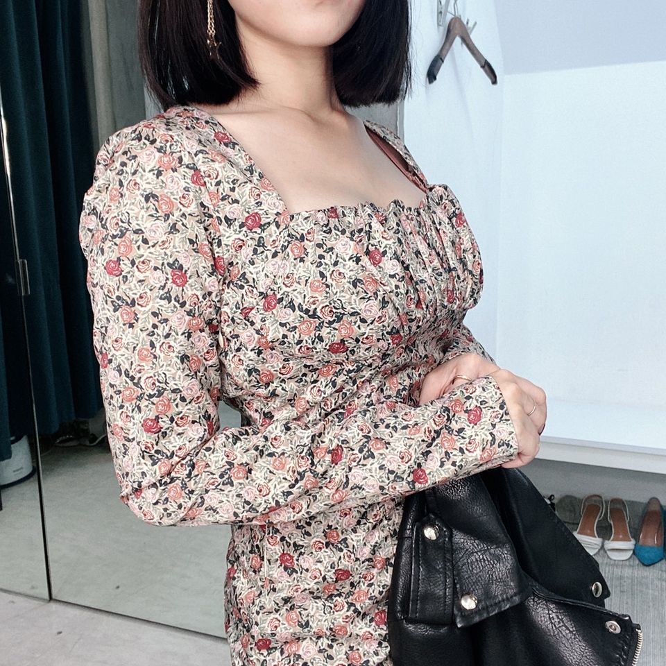 貼身剪裁突顯曲線,細緻的花卉印花為裙裝增添輕盈浪漫的氣息。