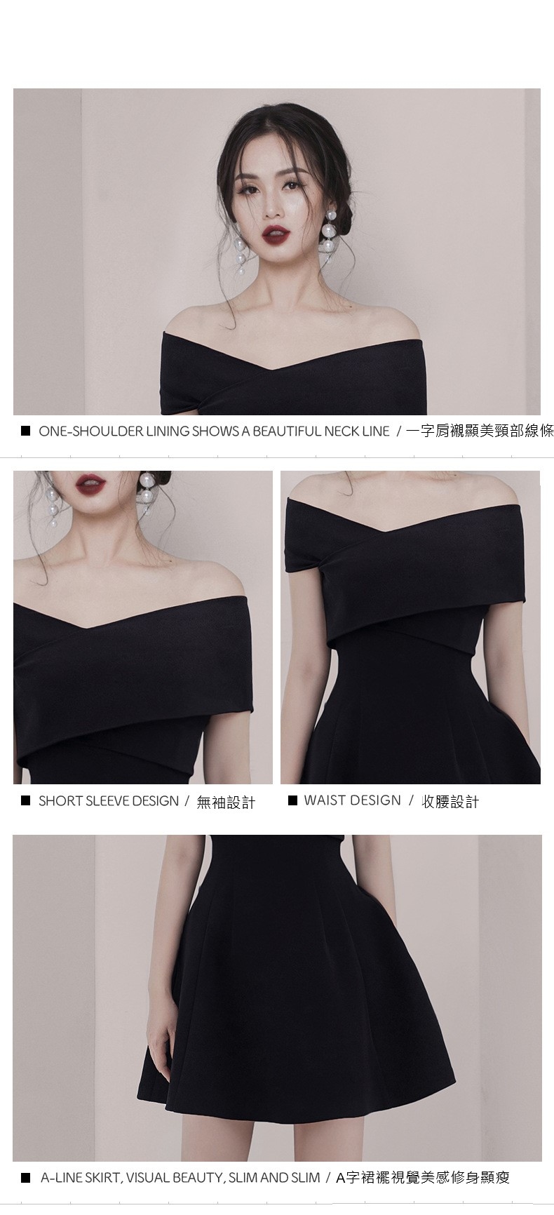 一字領露肩 顯瘦短洋(紅/黑/白)