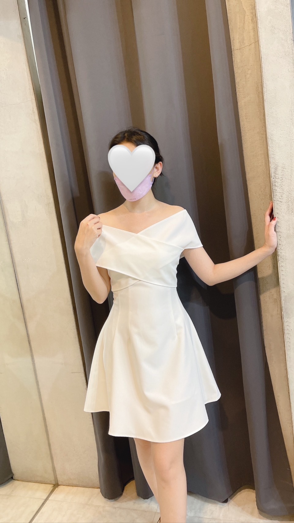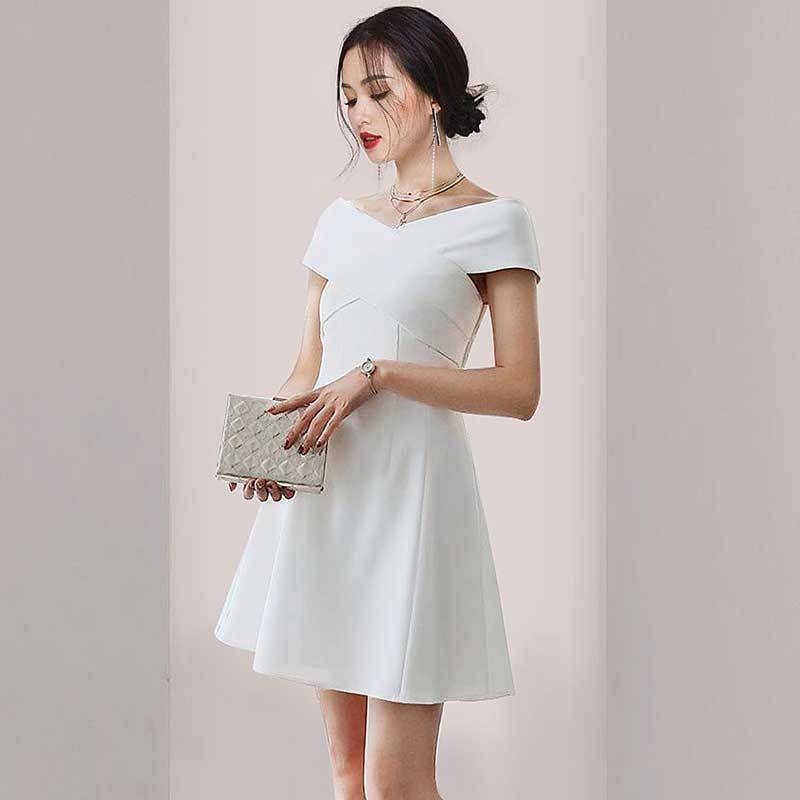 白色一字領露肩裙裝