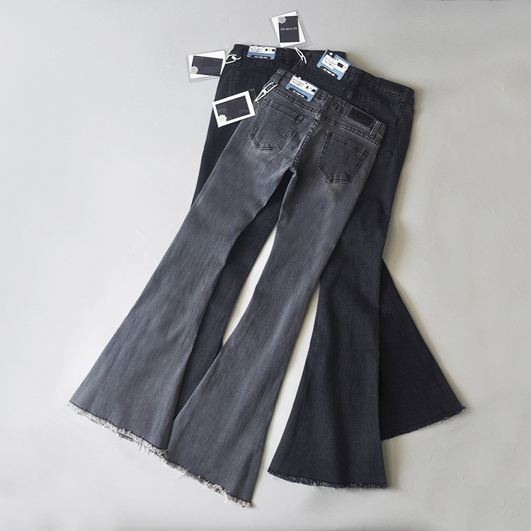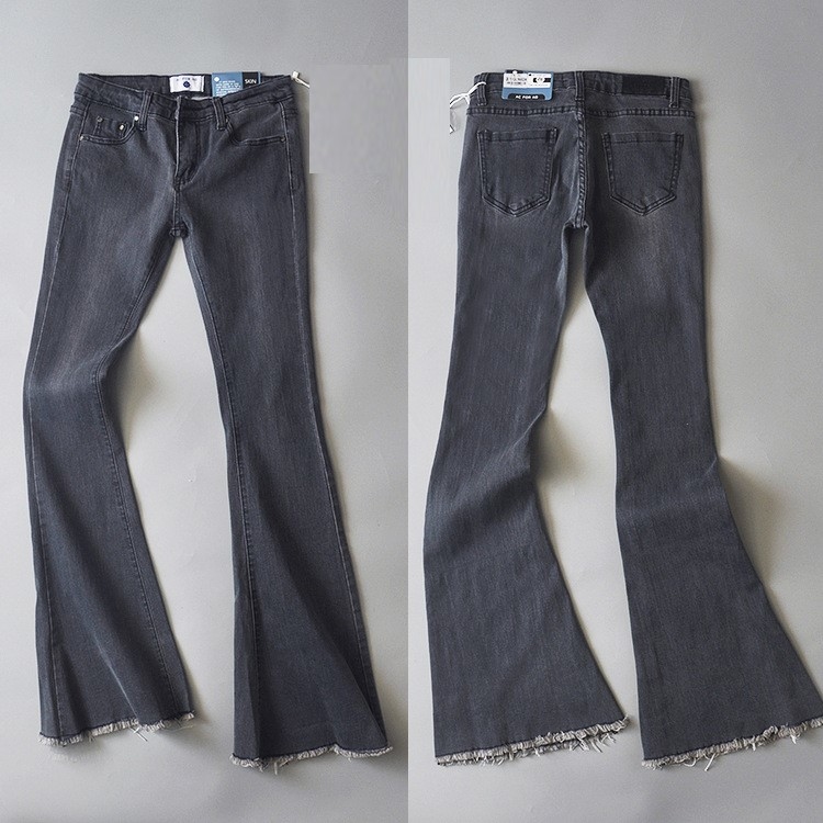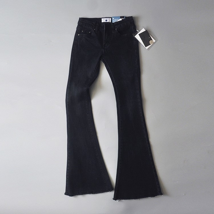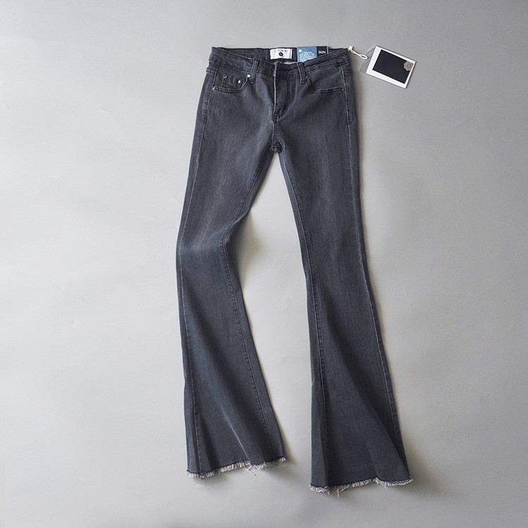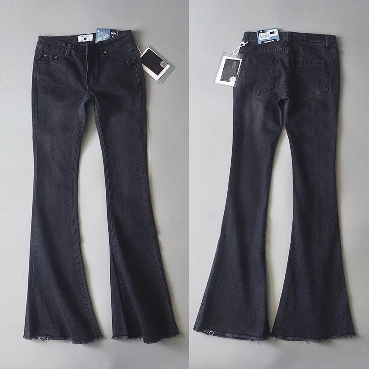 中腰彈性喇叭褲(黑/深藍/淺藍/淺灰)