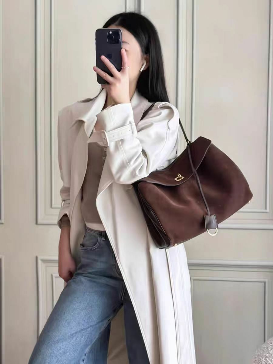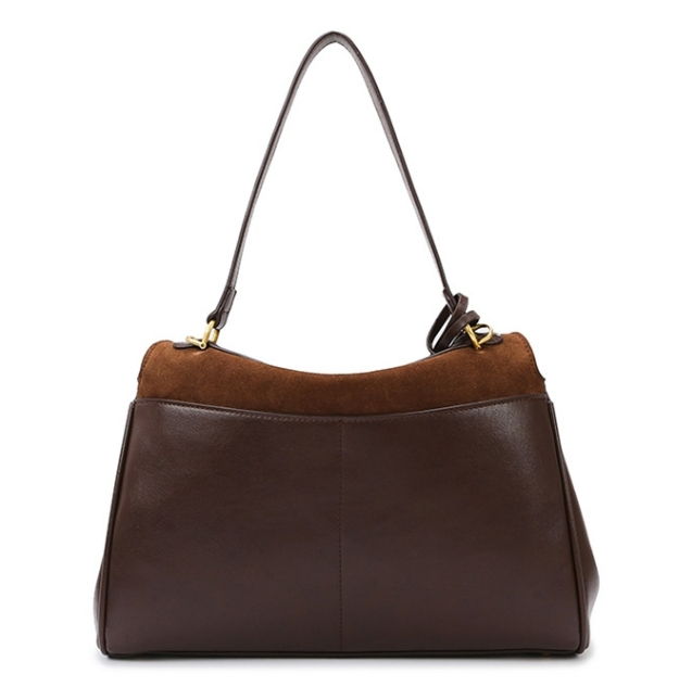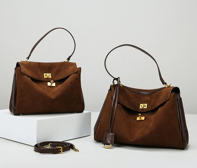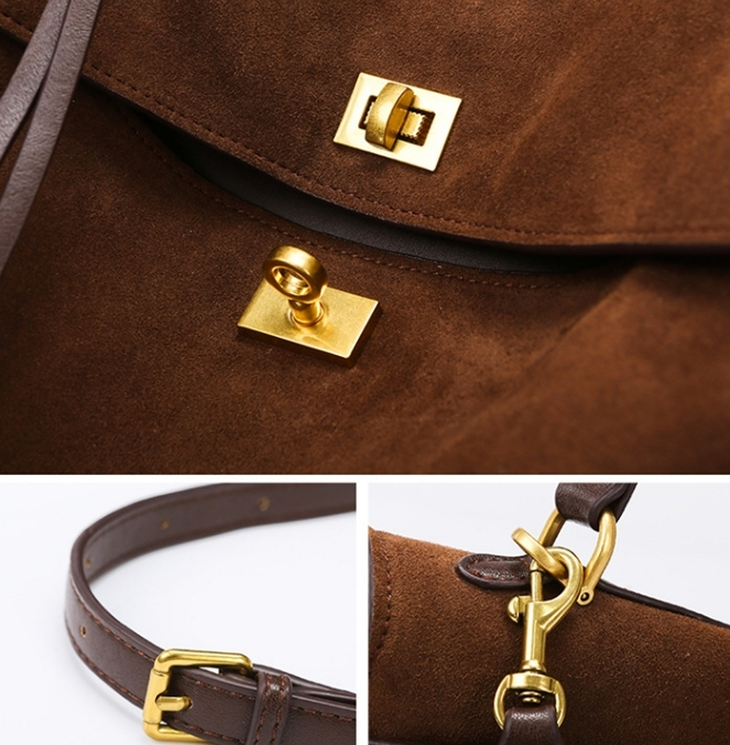 這款棕褐色皮革手提包,採用復古造型,散發優雅時尚氣息。質感上佳,材質柔韌,耐用耐磨,適合各種場合使用。包身設計大方實用,搭配金色金屬硬件,彰顯高雅格調。內部空間寬敞,能輕鬆收納日常所需物品。外型簡單大方,搭配各式服飾都能展現時髦品味。無論是通勤上班或是週末閒暇,都能為妳的造型增添出色質感。