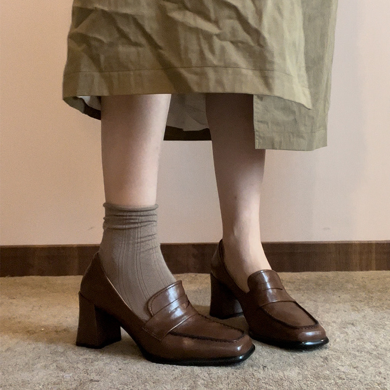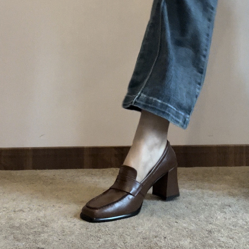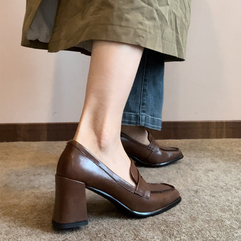 方頭粗高跟 英倫樂福鞋(35-39)(茶/黑)