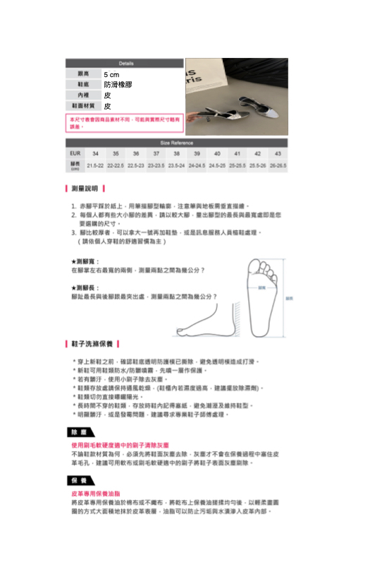 低跟鞋身設計,增添日常活動的便利性。
