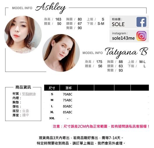 柔細詩意的蕾絲設計,繡點點綴錯落有致,鏤空後背型塑優雅曲線。 舒適無鋼圈,貼身服貼不勒肩。 多彩色系任君選,搭配不同場合展現個人風格。 女性化設計,散發自然優雅魅力。 貼心提醒:此商品不提供退換貨服務,建議選擇前仔細確認尺寸。
