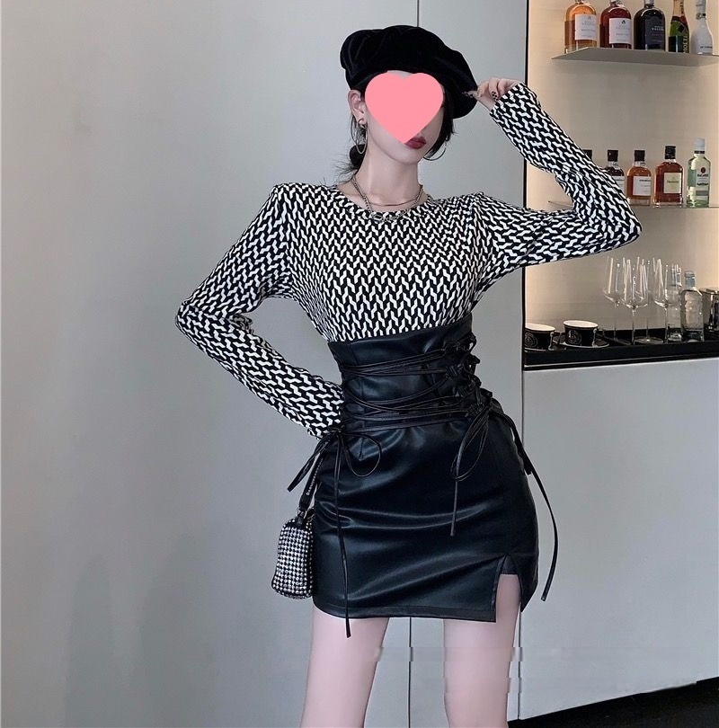 辣妹系 幫帶高腰皮短裙