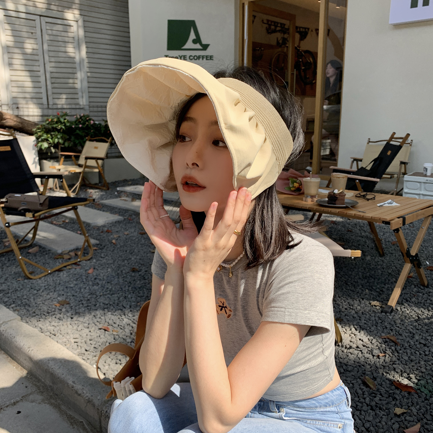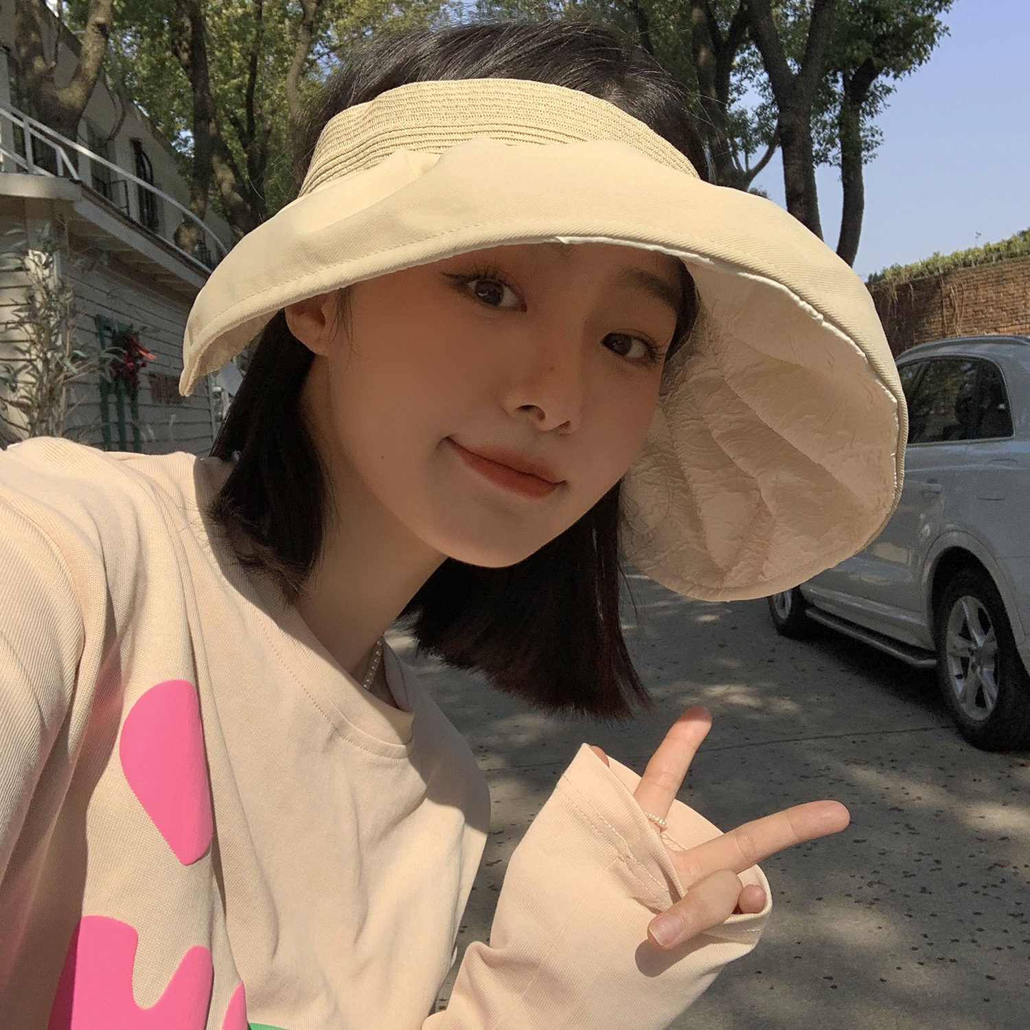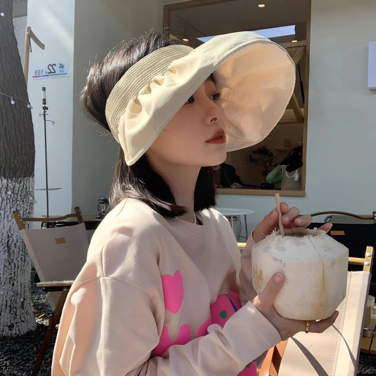 時尚又俐落的雙面遮陽帽,可以遮蔽陽光,提供全面防護。