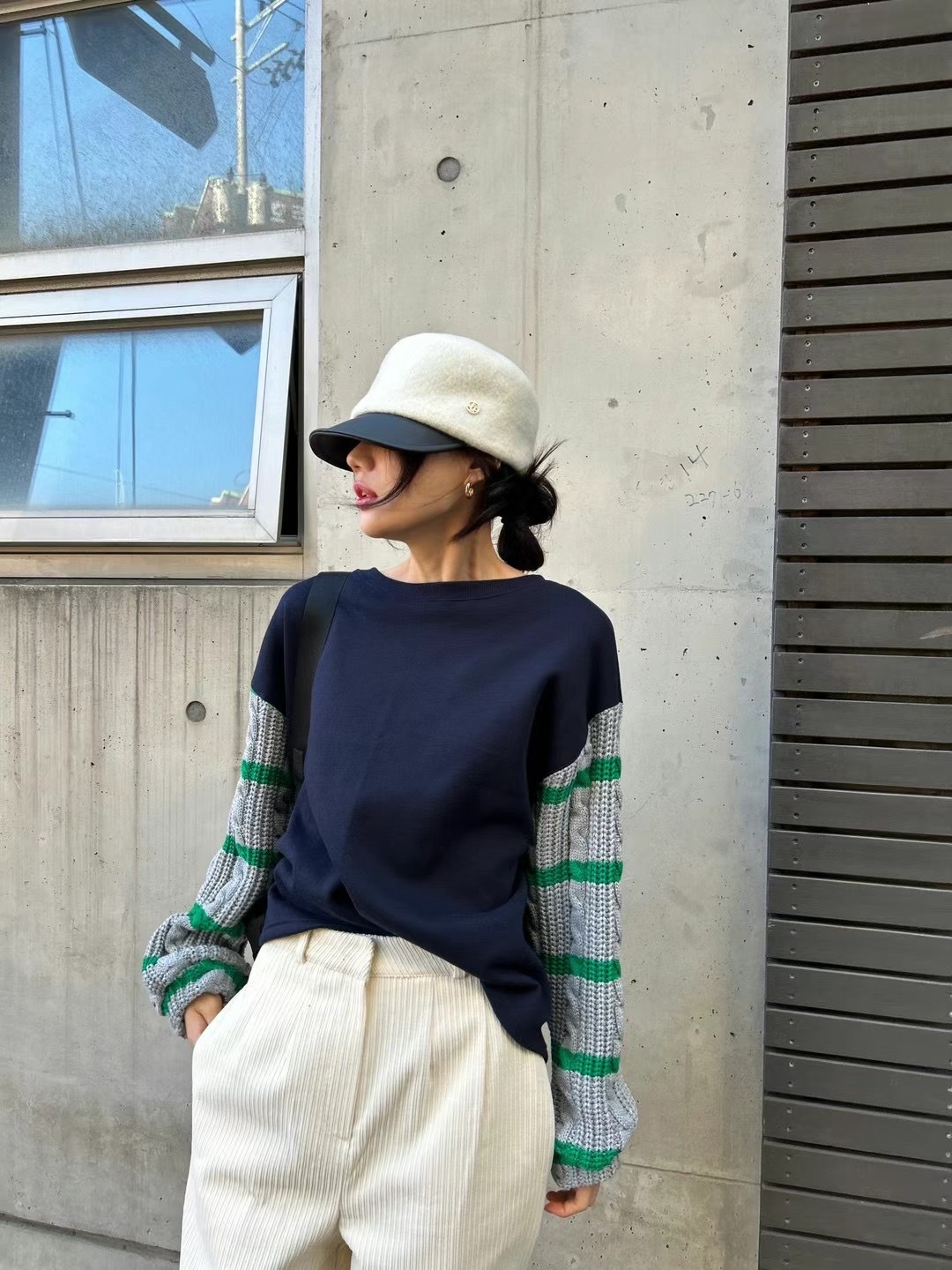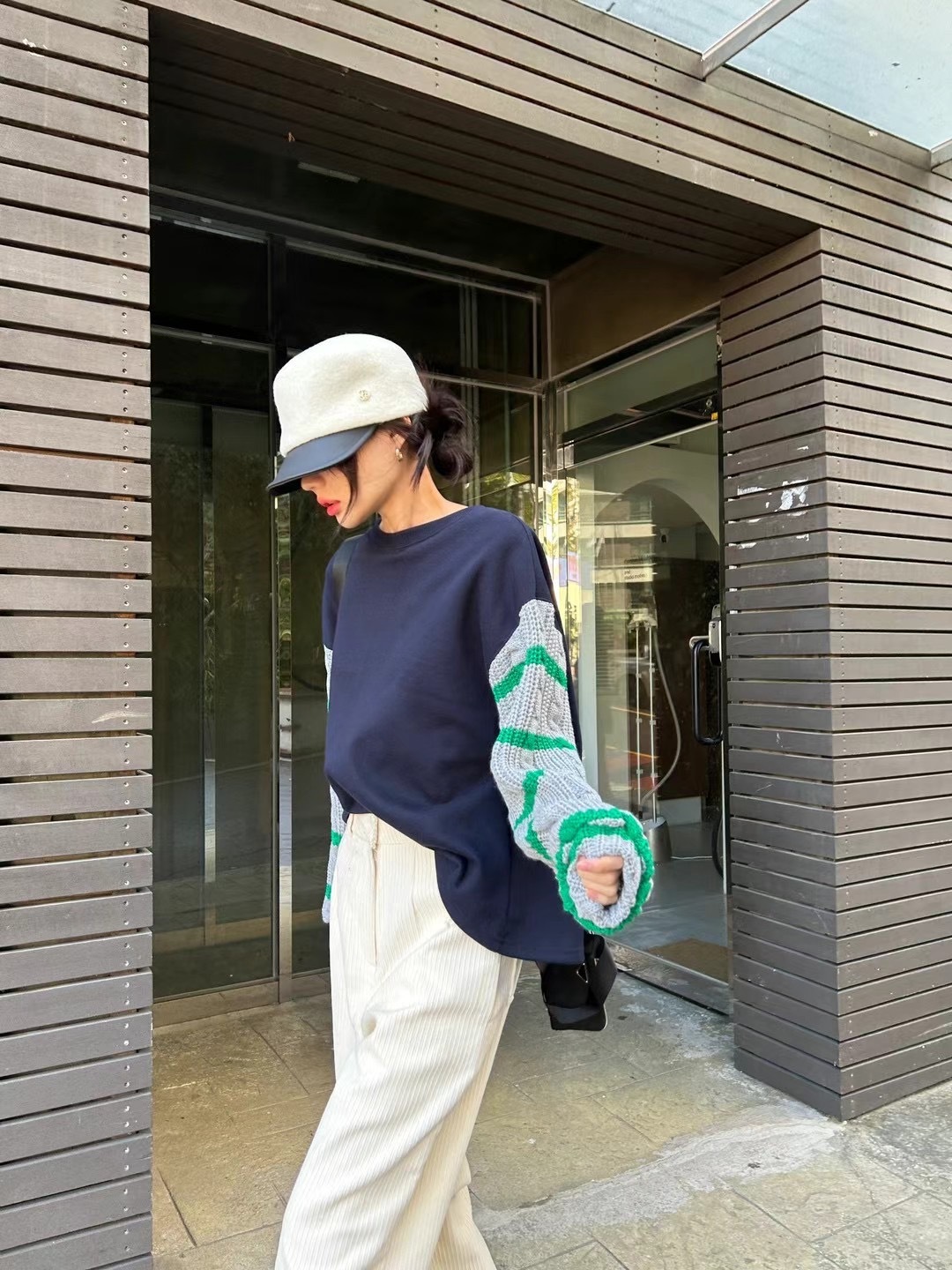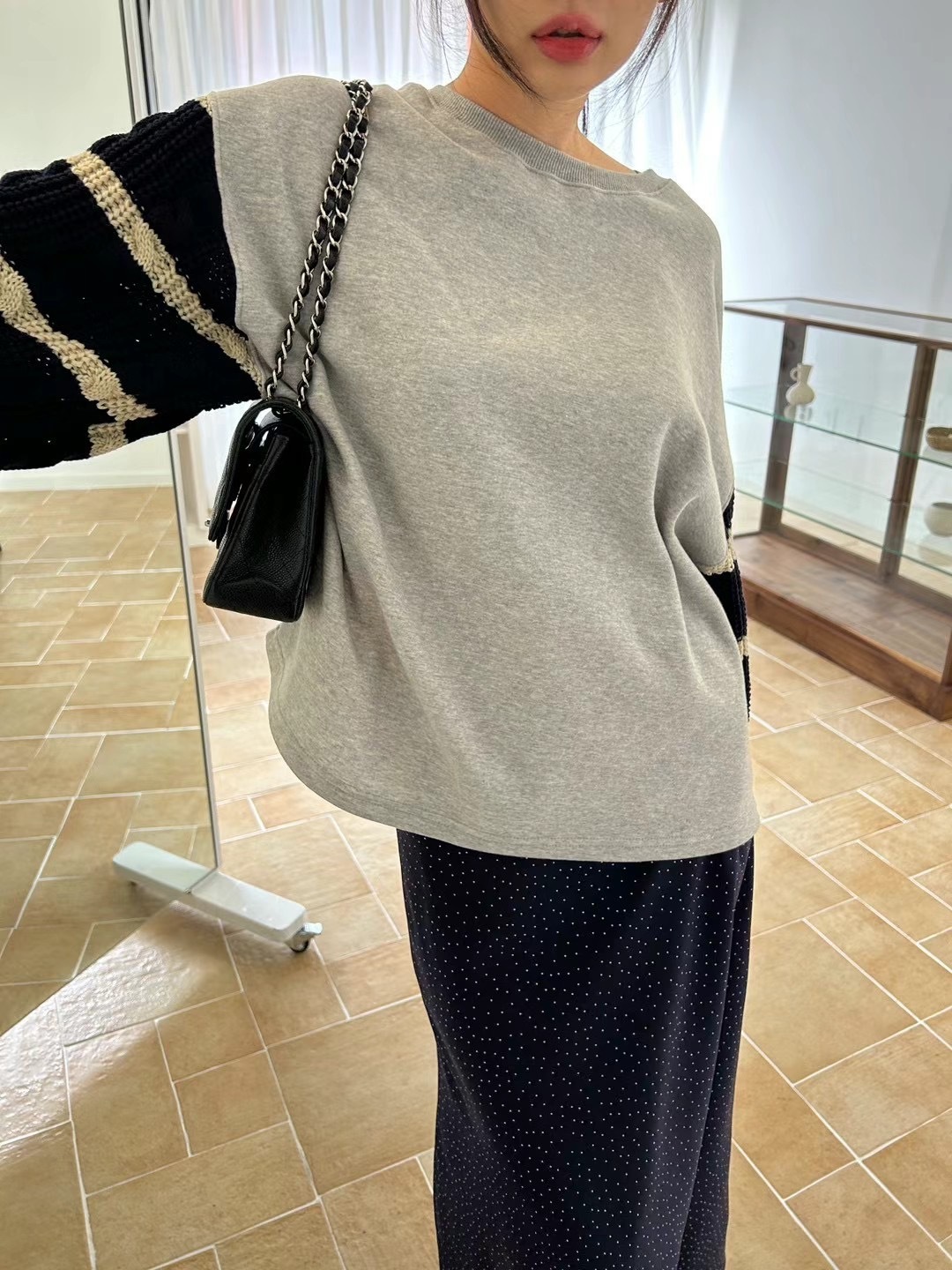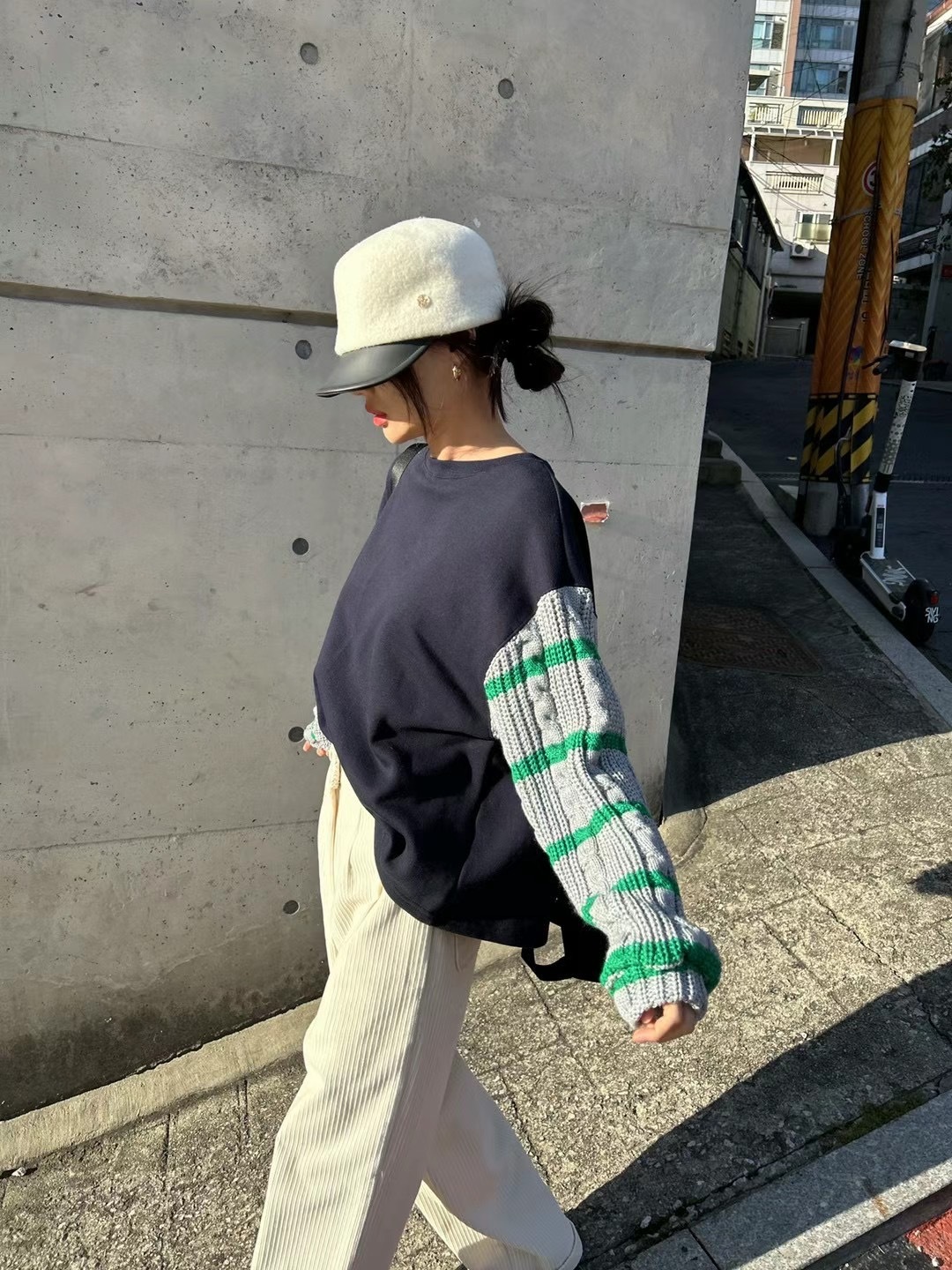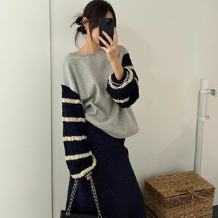 東大門 毛衣拼接寬鬆衛衣(灰/黑)