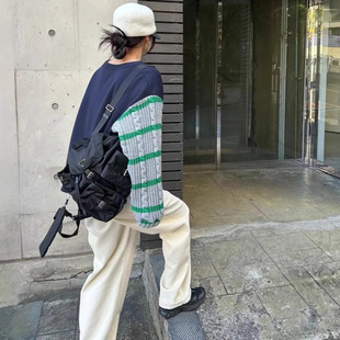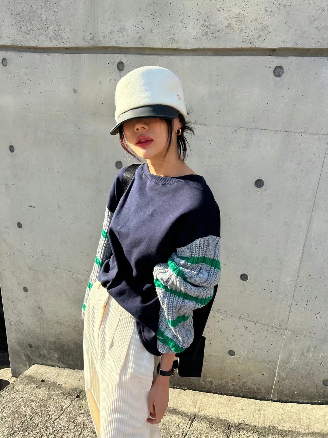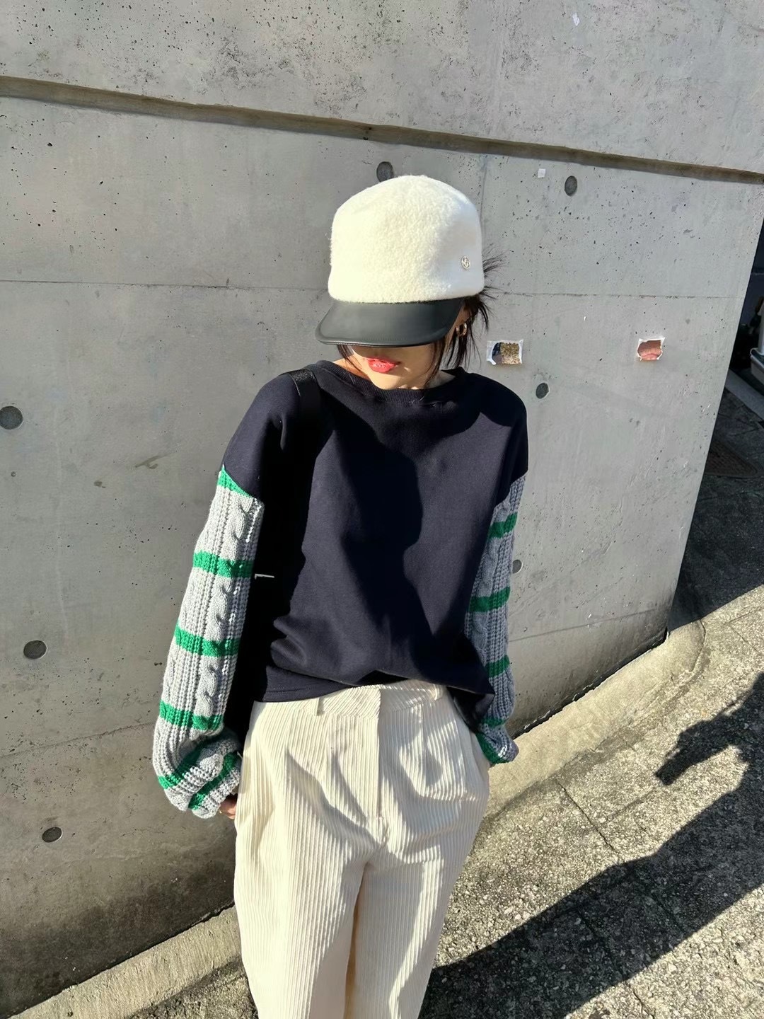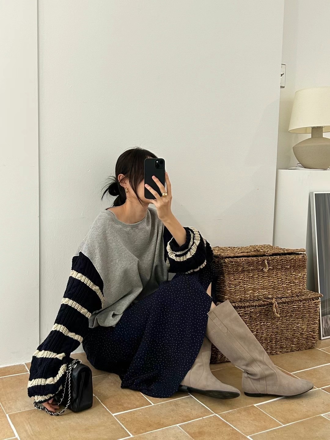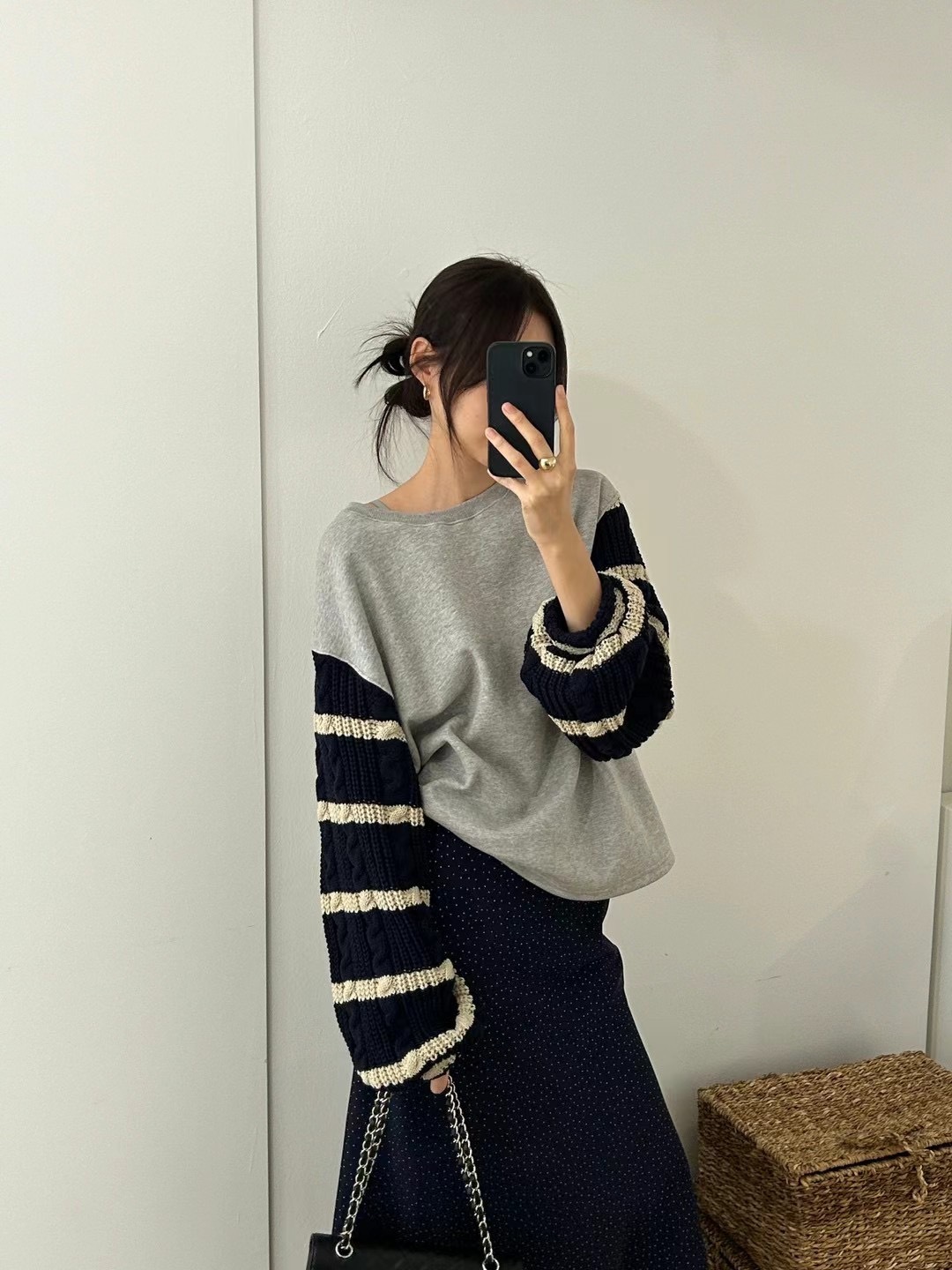 東大門 毛衣拼接寬鬆衛衣(灰/黑)