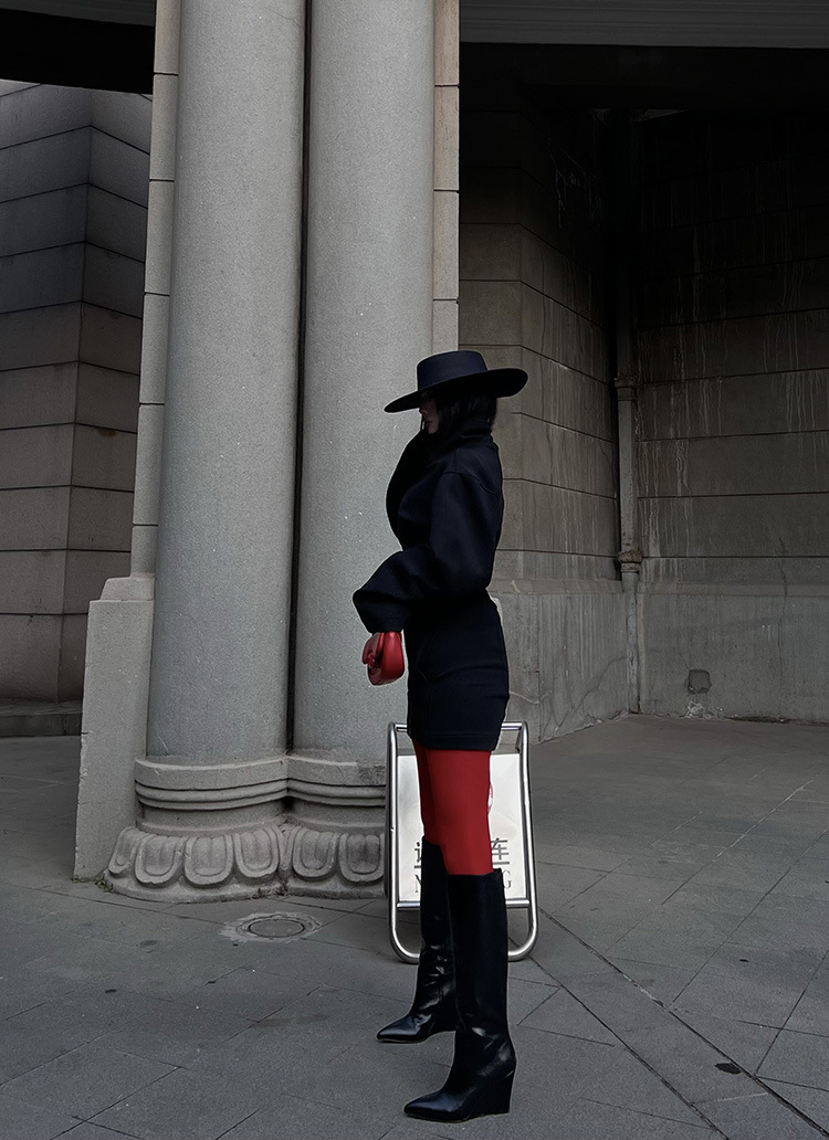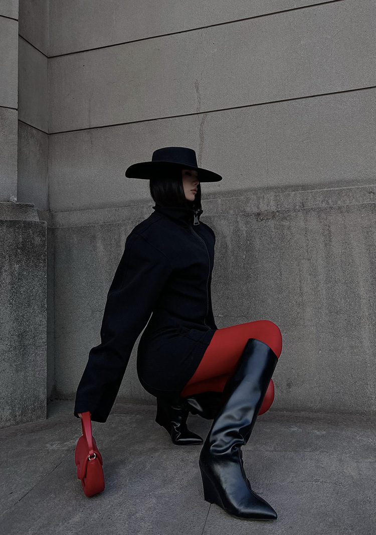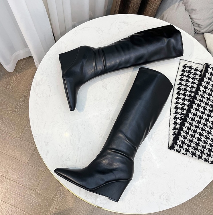 率性小姐姐 尖頭坡跟直筒長靴(35-39)