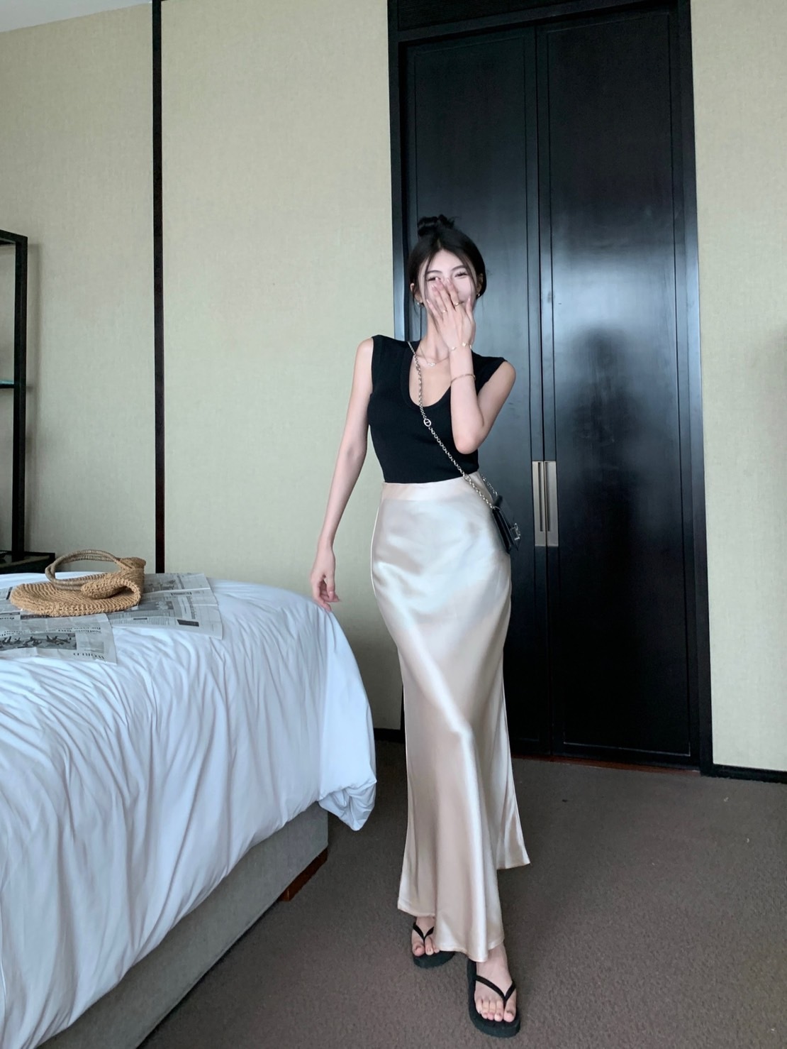 這款高腰魚尾緞面長裙是優雅別緻的設計,層次感豐富且飄逸動人。裙擺以垂墜的緞面布料剪裁而成,流暢自然的A字型線條,能完美包覆身型曲線。特別採用柔軟細緻的緞面面料,質地高雅光澤動人,穿搭起來既優雅大氣又顯氣質。款式靈活多變,黑、粉、綠、香檳等豐富色系任君挑選,適合各種正式場合。穿上這條裙子,定能成為矚目焦點,散發迷人的女性魅力。
