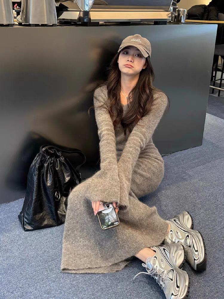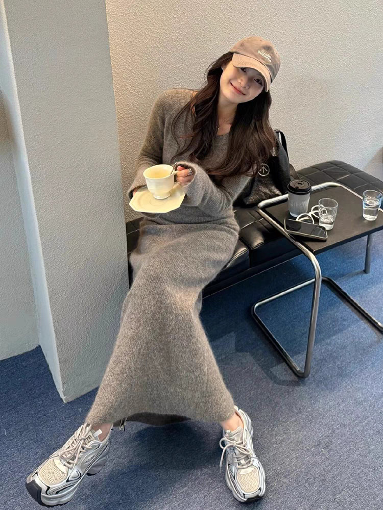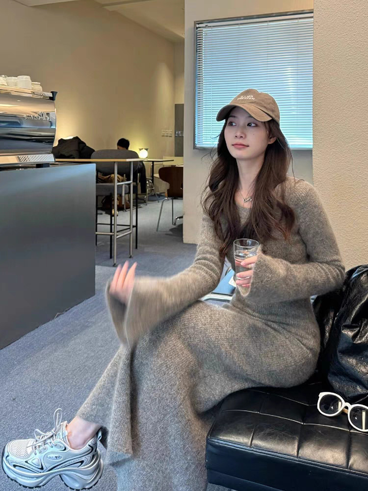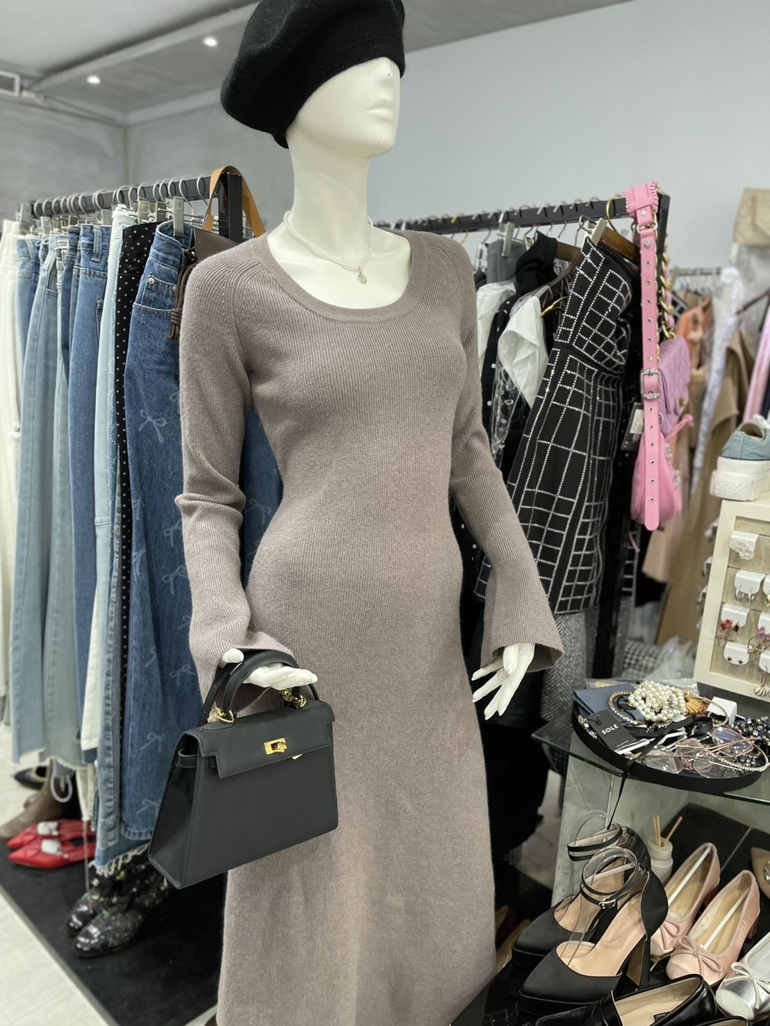 超級柔軟的喇叭袖針織毛尼長洋裝,為冬天提供舒適保暖的同時也能展現優雅時尚風格。