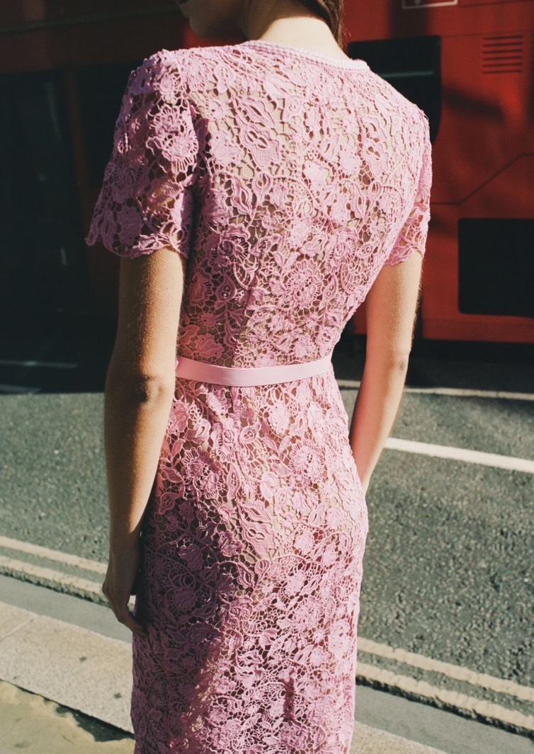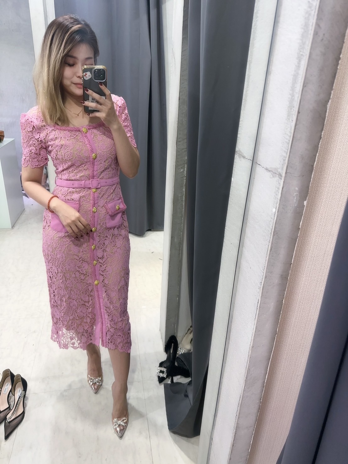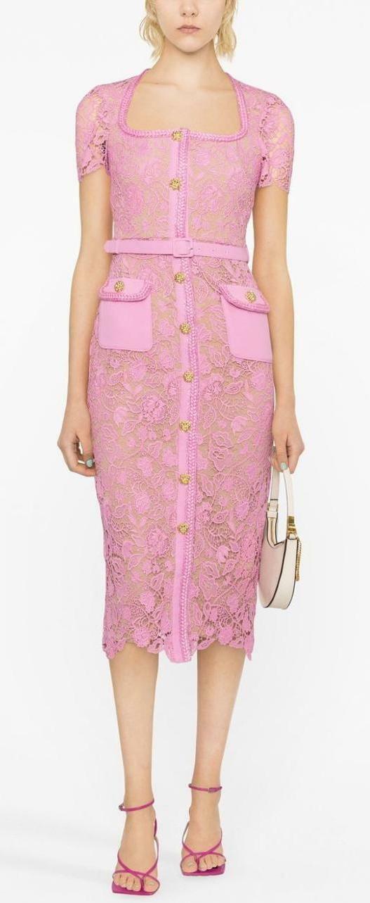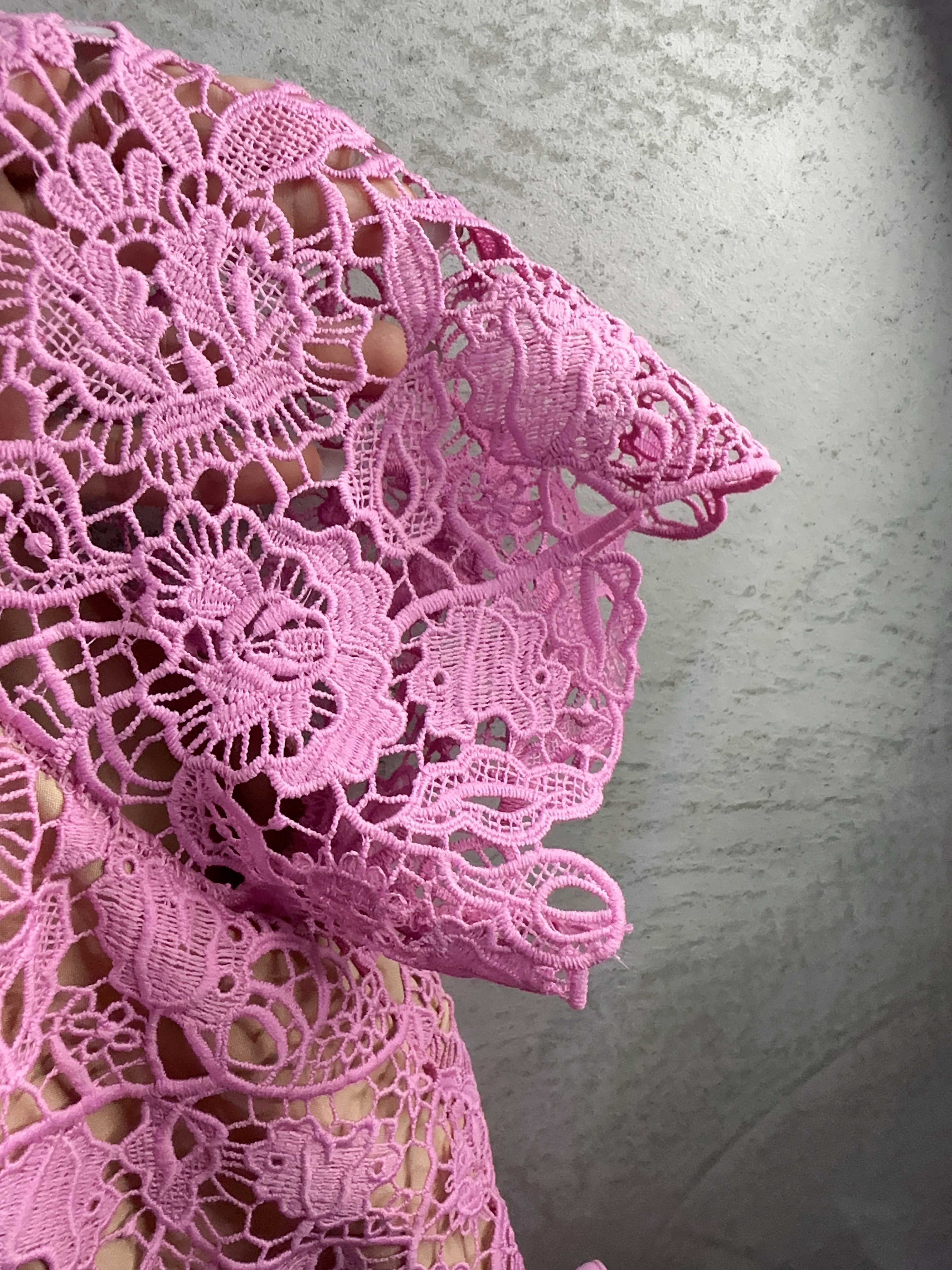 這件洋裝採用精緻水溶蕾絲材質,設計簡約優雅的方領剪裁,搭配飽滿飄逸的袖型,散發迷人女性魅力。貼身修身剪裁,展現纖細曲線。浪漫的粉色系配色,為妳的夏日穿搭注入甜美氛圍。適合多種場合佩戴,從日常休閒到正式場合都能完美駕馭。優雅時尚兼具,打造迷人氣質。