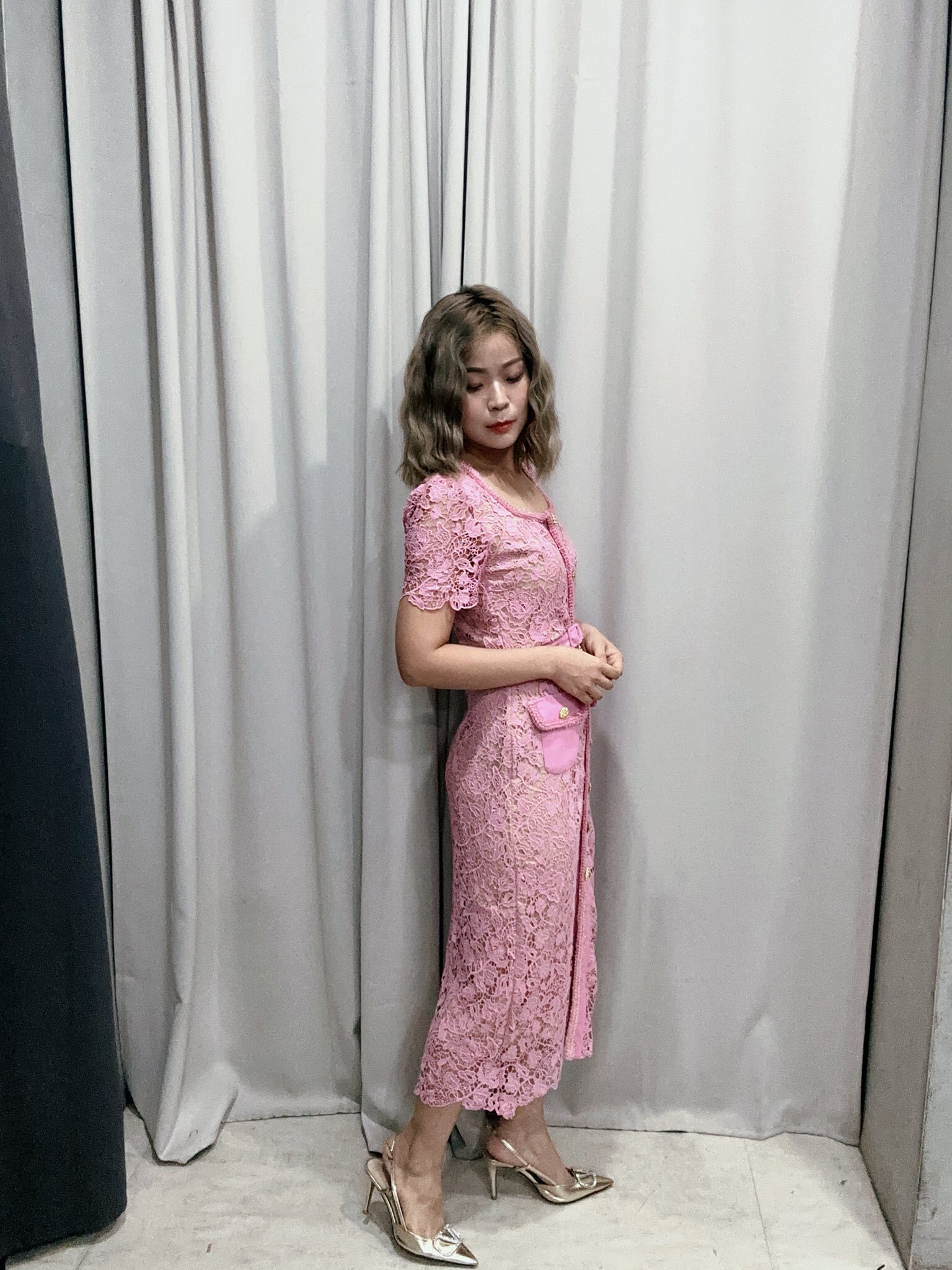 剪裁貼身展現迷人曲線。