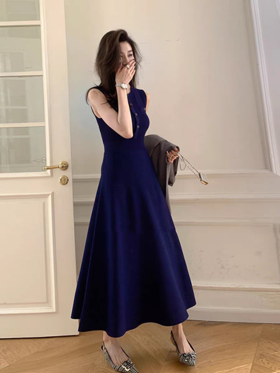 優雅迷人的剪裁設計,展現妳的迷人氣質。深藍色系清新沉穩,細緻剪裁服貼身形,穿著舒適自在。細緻的鈕扣點綴,增添復古優雅氣息。精心設計的收腰設計,展現動人曲線,適合各種場合穿搭。無論是在約會、聚會或工作場合,這款簡約長洋裝都能完美搭配,盡顯獨特魅力。