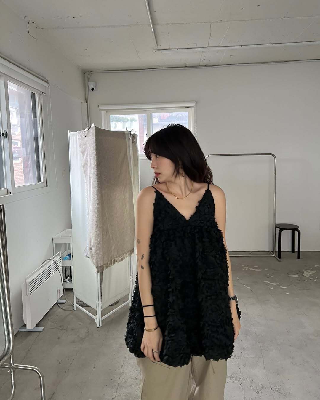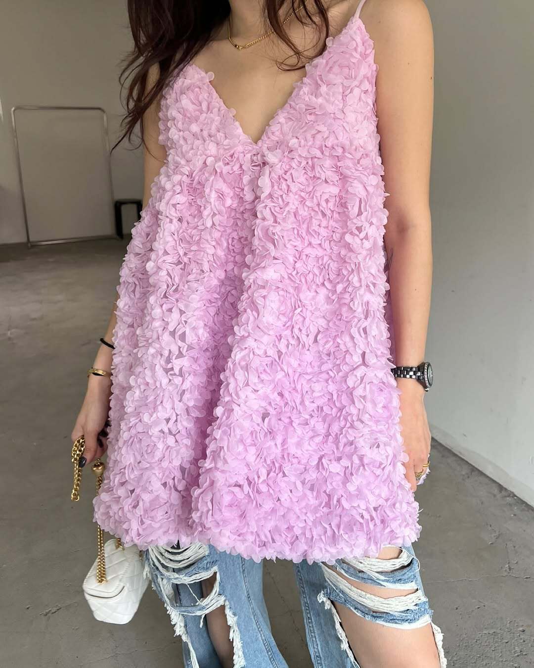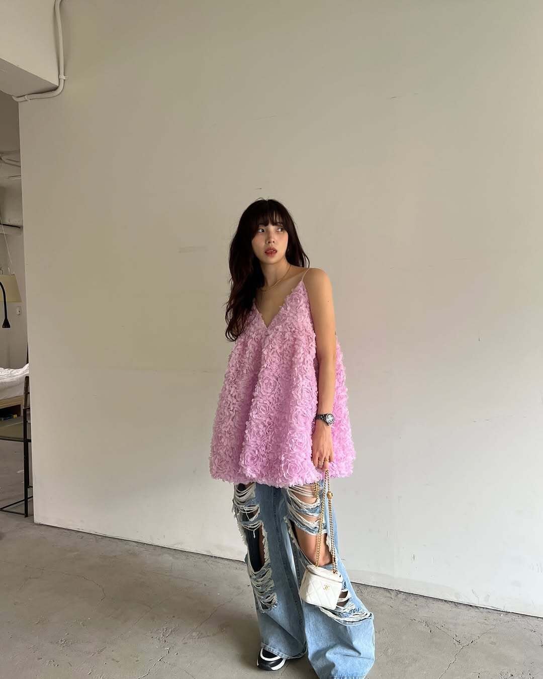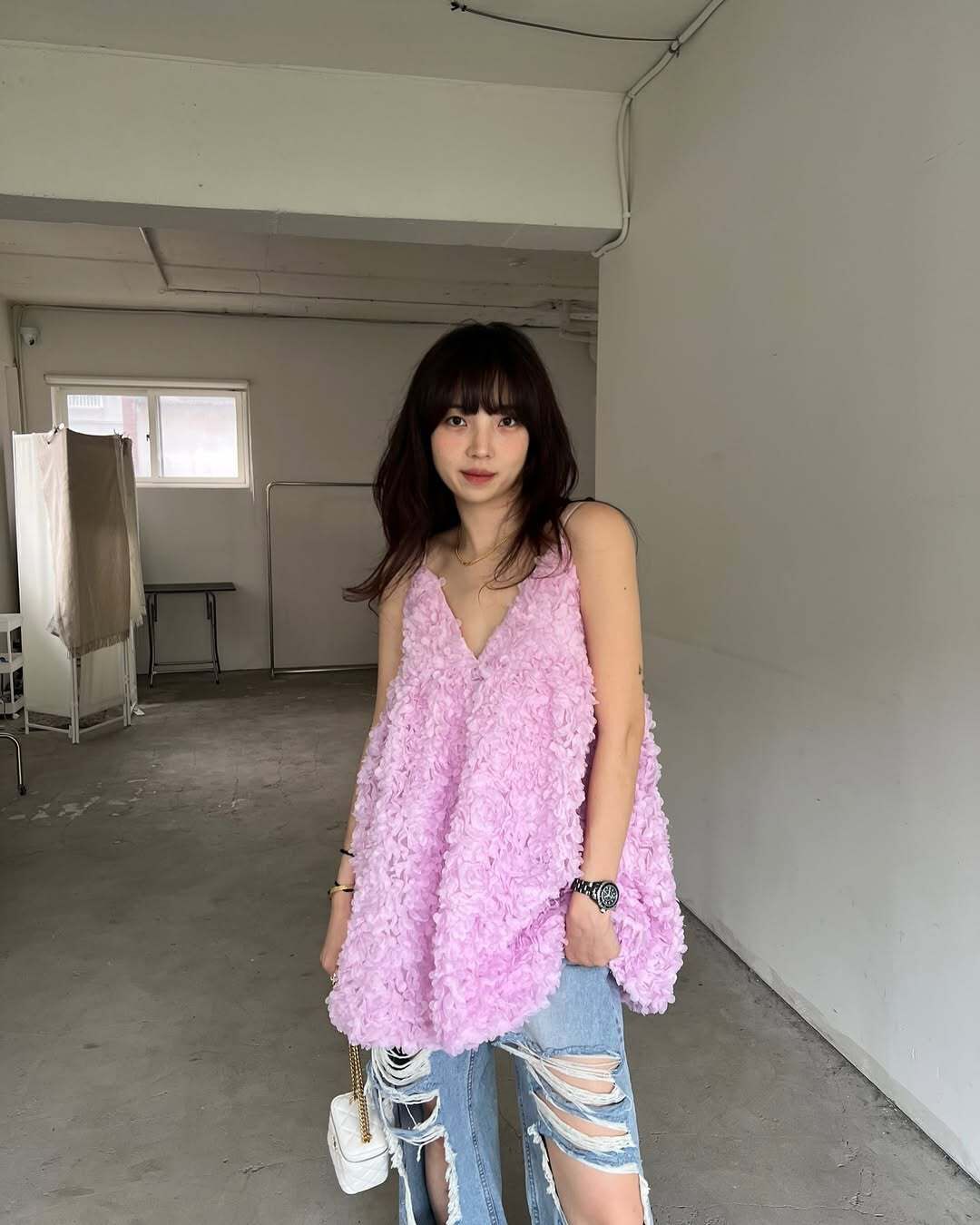 韓國重工立體勾花 長版上衣(粉/黑/白)