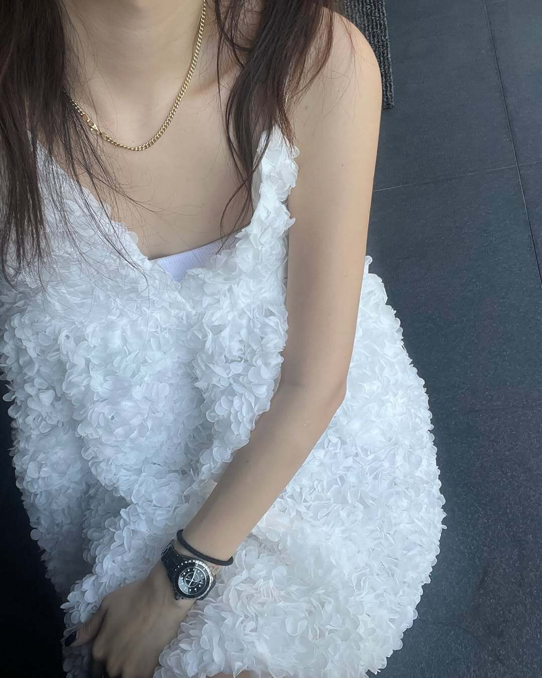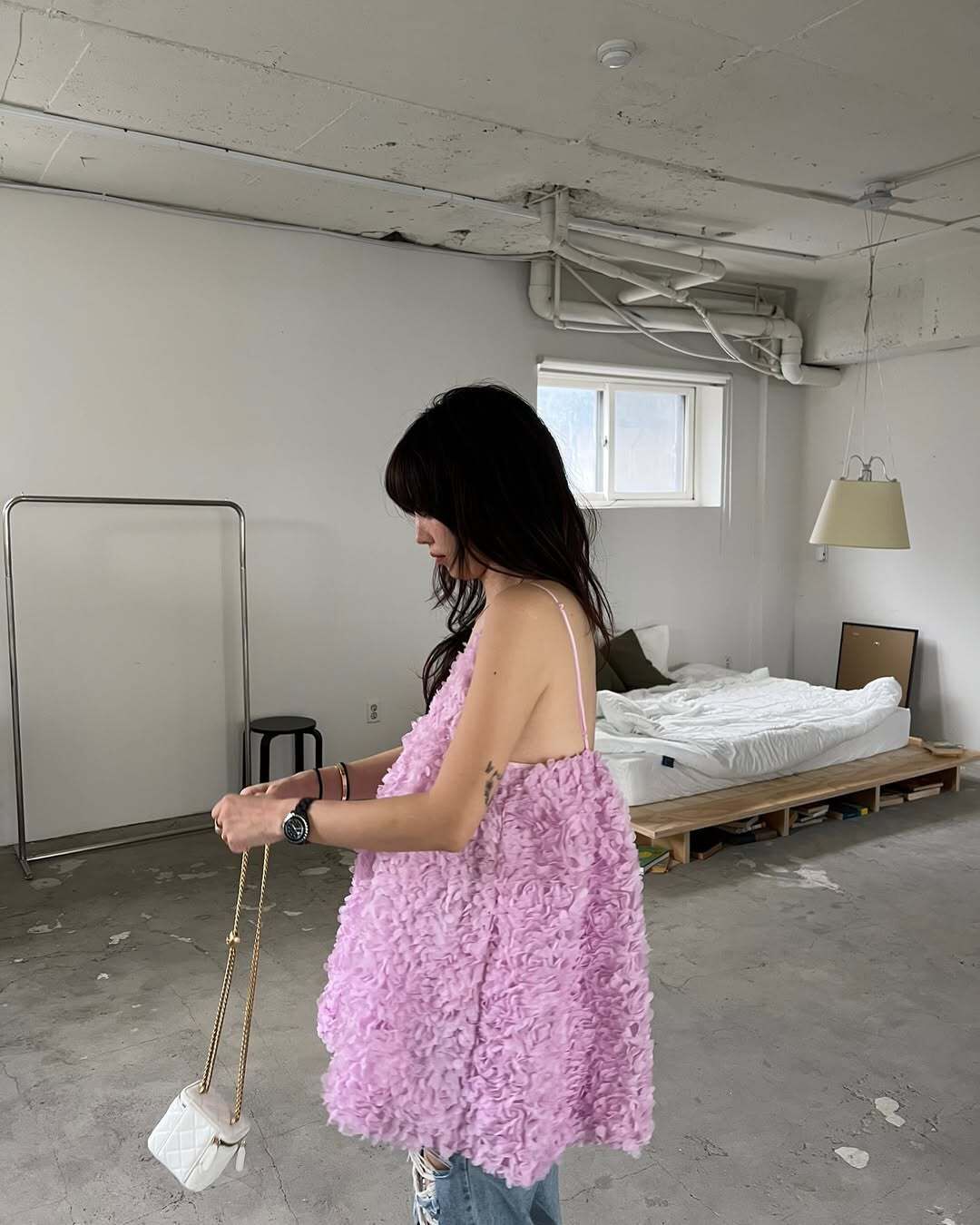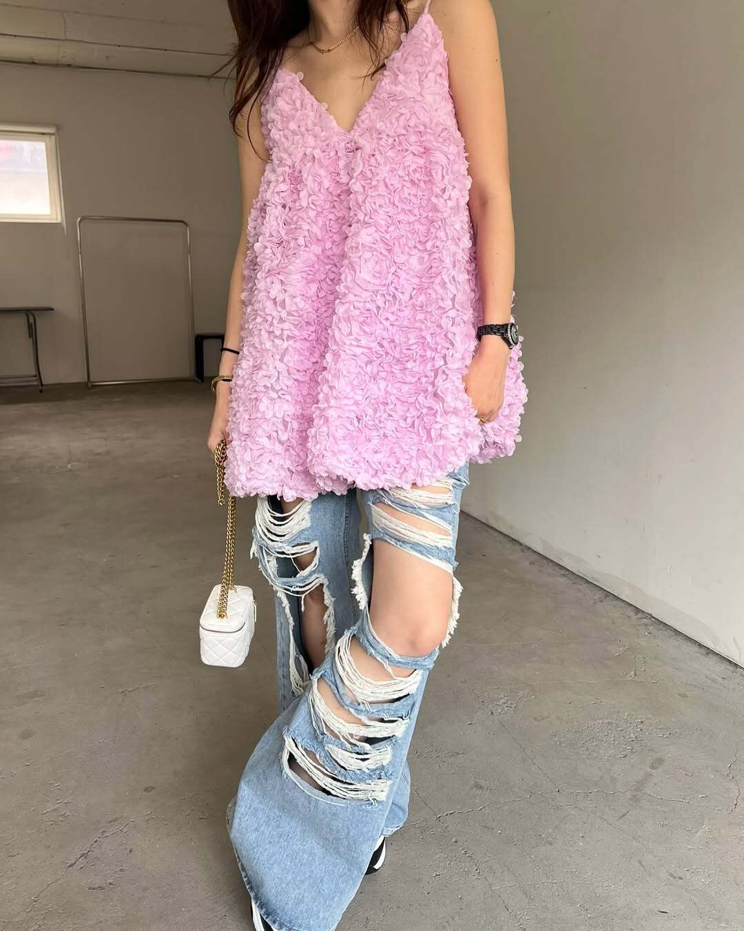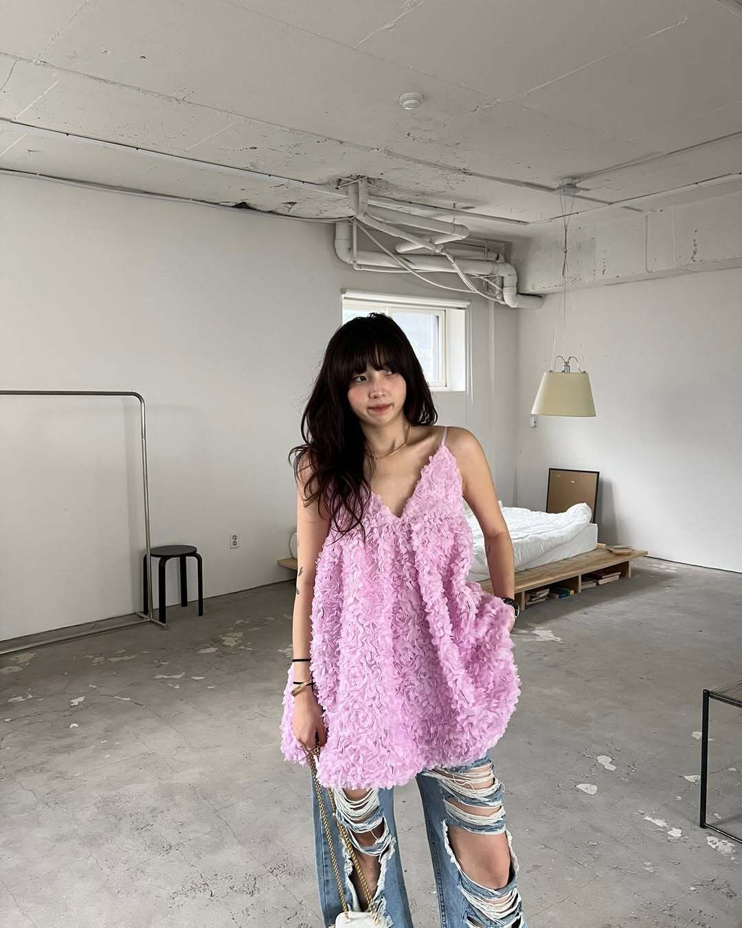 韓國重工立體勾花 長版上衣(粉/黑/白)