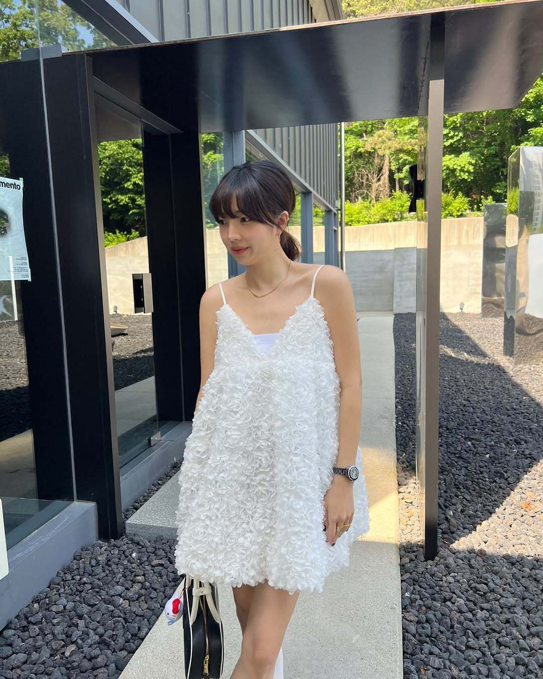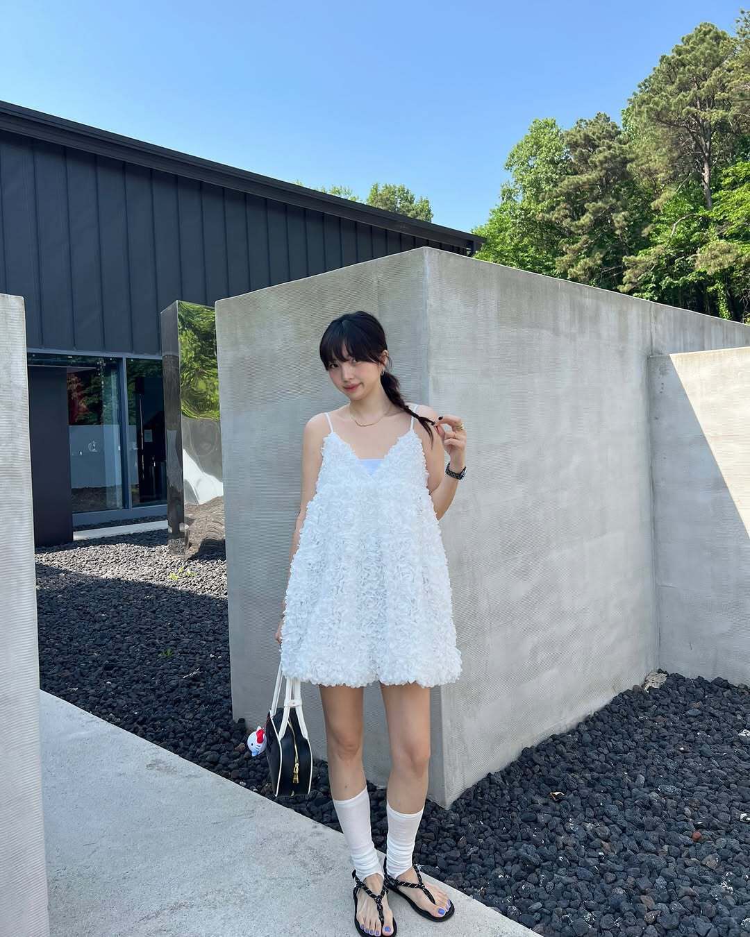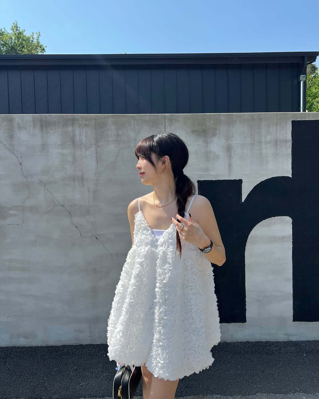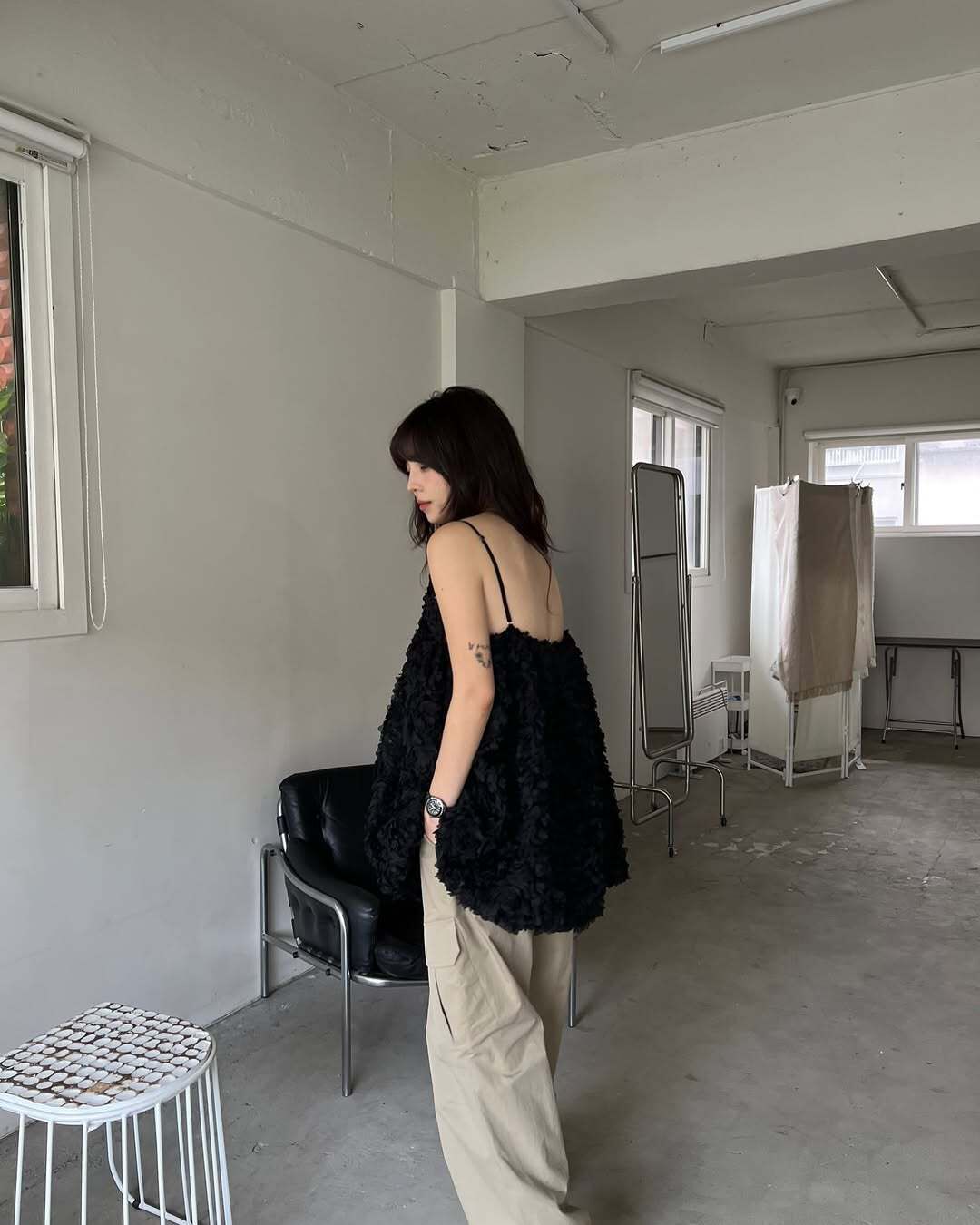 韓國重工立體勾花 長版上衣(粉/黑/白)