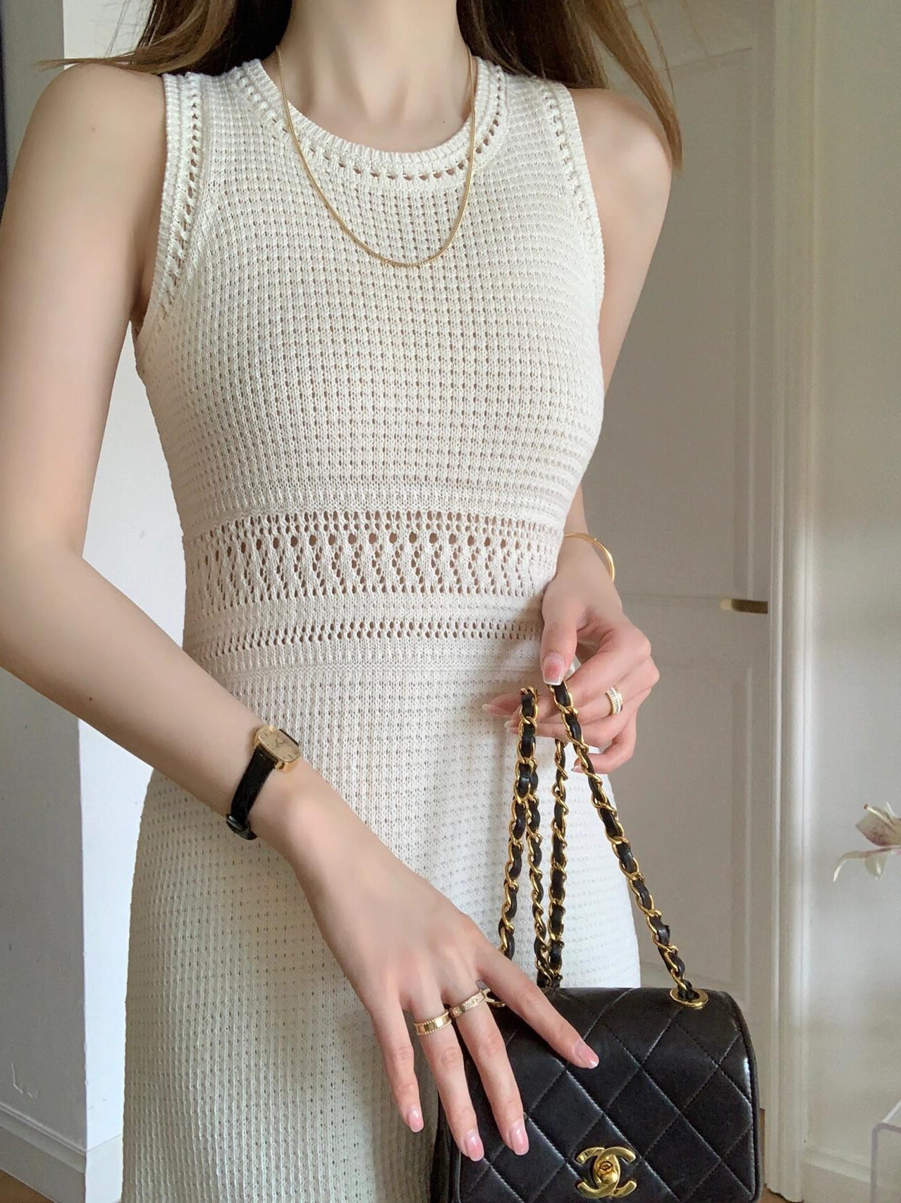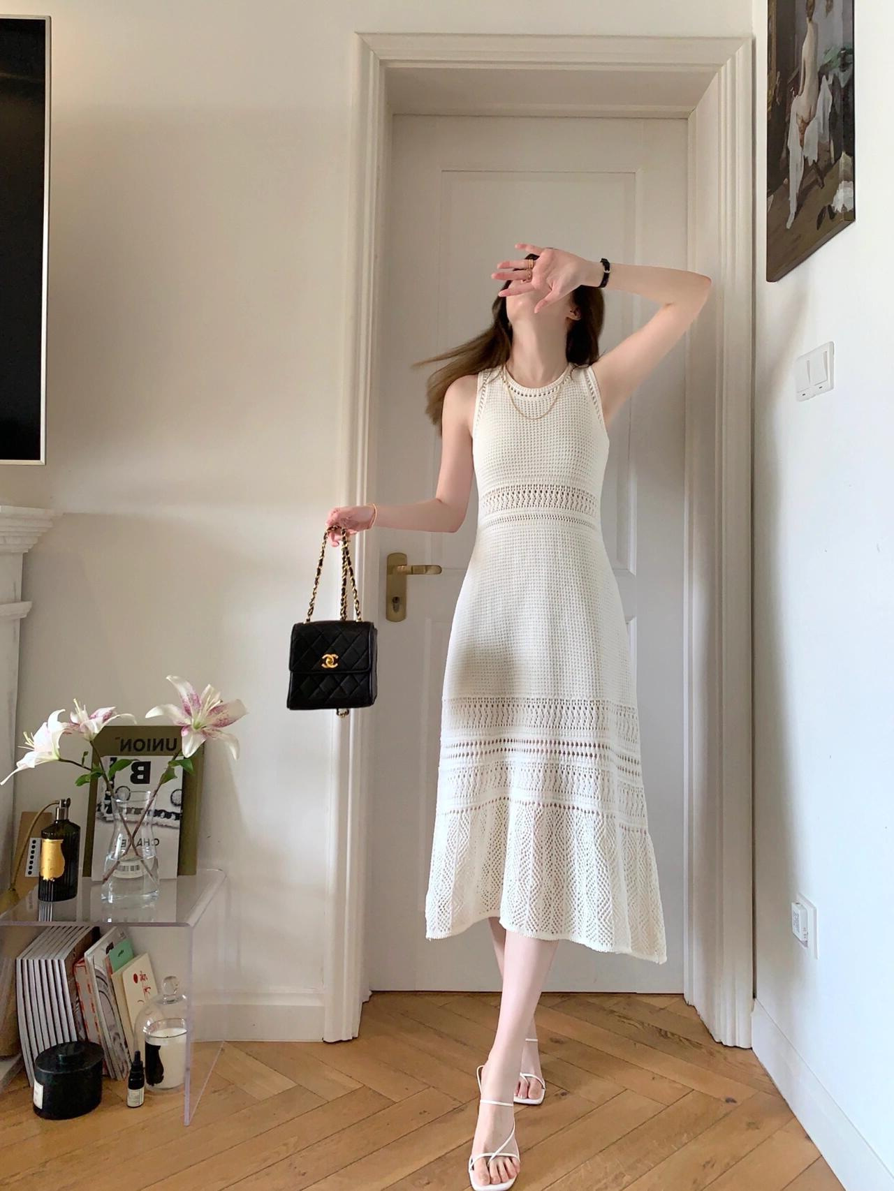 這款編織感動洞收腰洋裝是相當優雅時尚的單品。