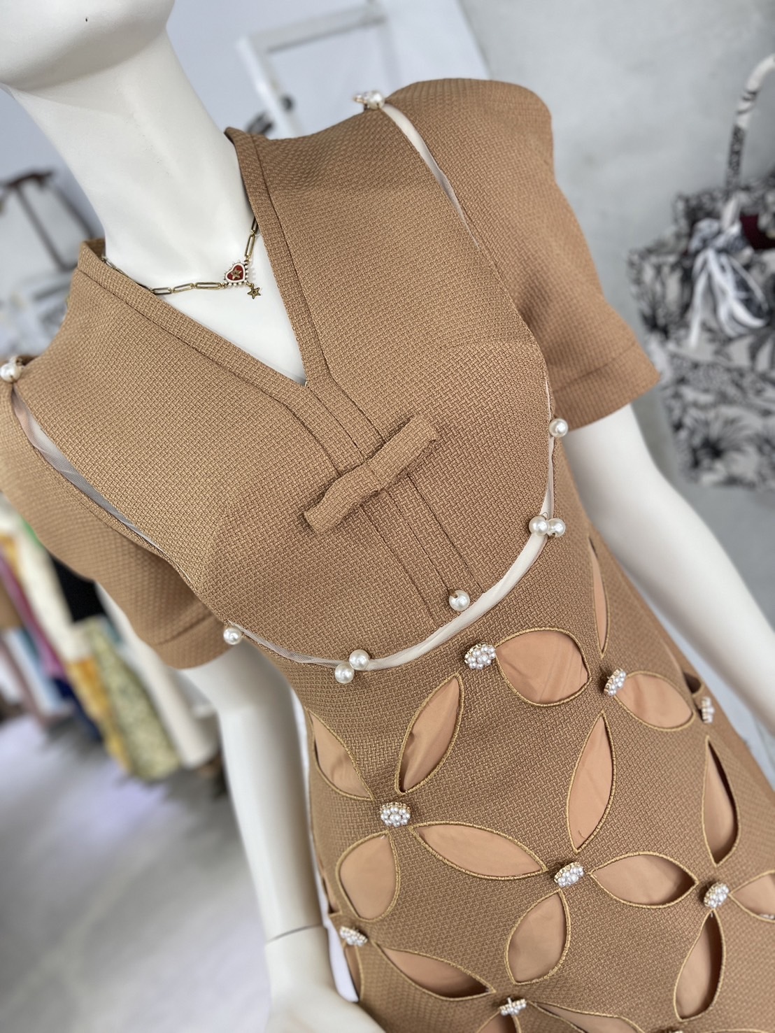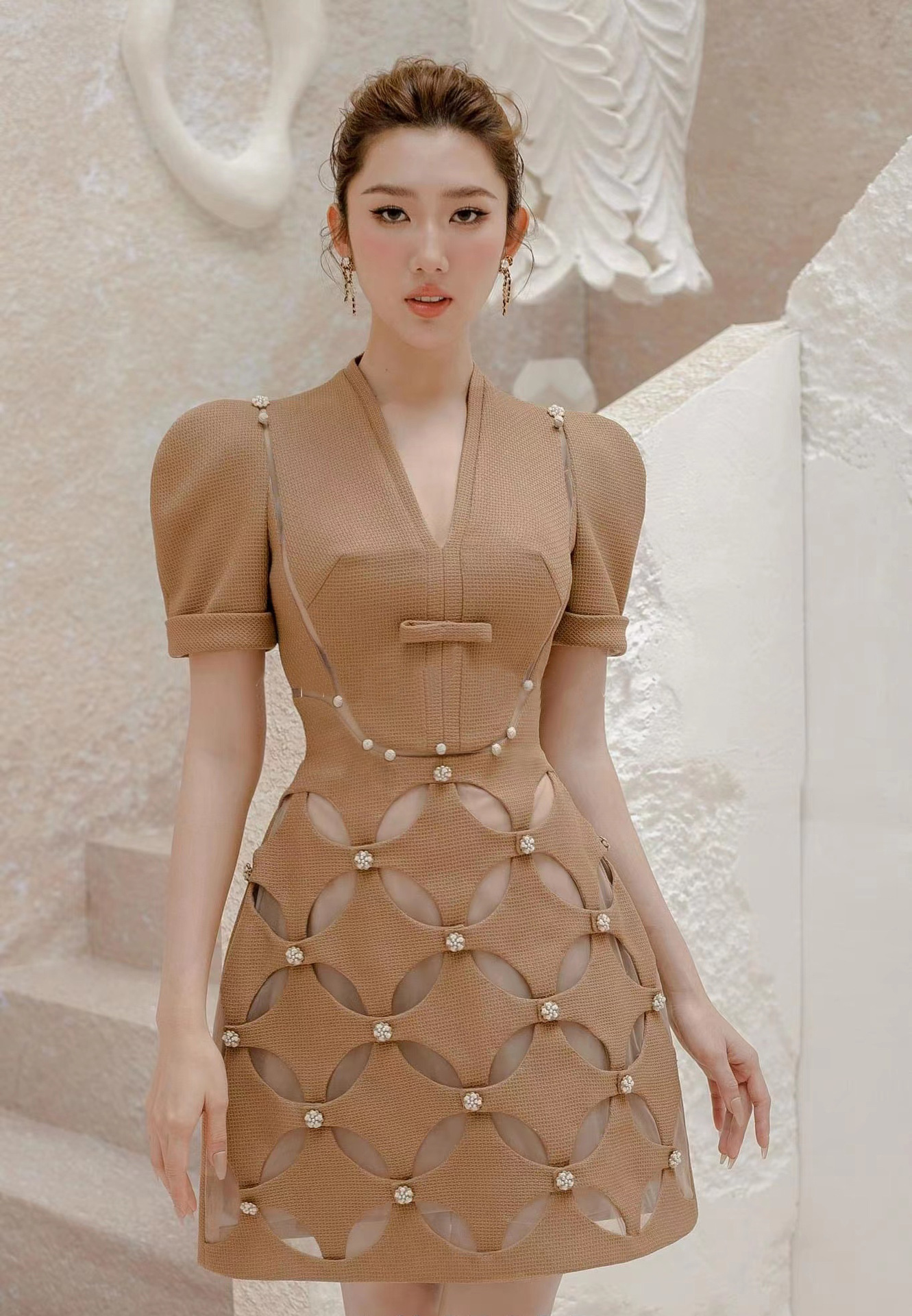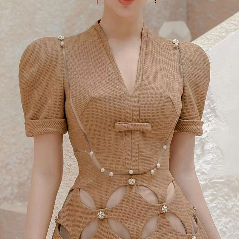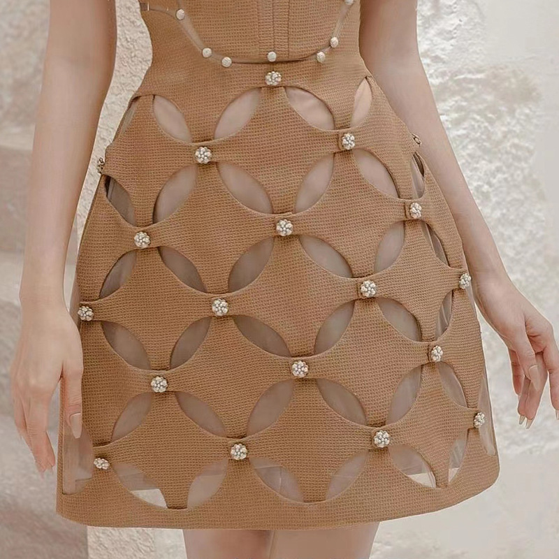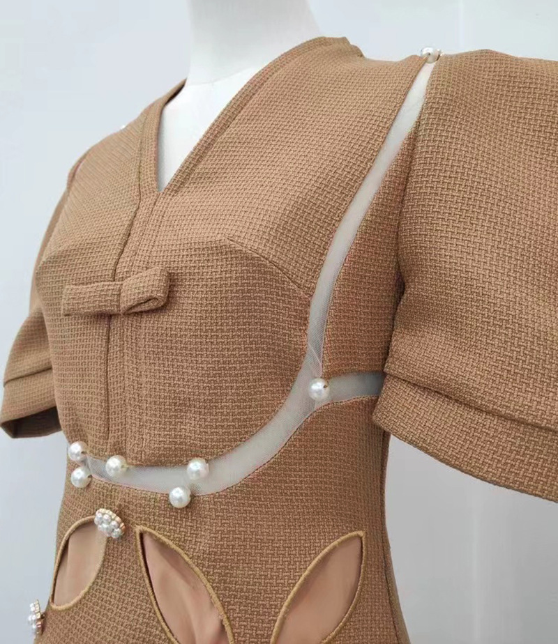 時尚柔和的米色調,勾勒出優雅纖細的曲線。獨特幾何簍空設計,展現動人的透膚質感。精緻扣飾點綴,散發迷人高雅氣質。別緻修身剪裁,適合多樣場合穿搭。舒適質地,賦予您 effortless 自在魅力。