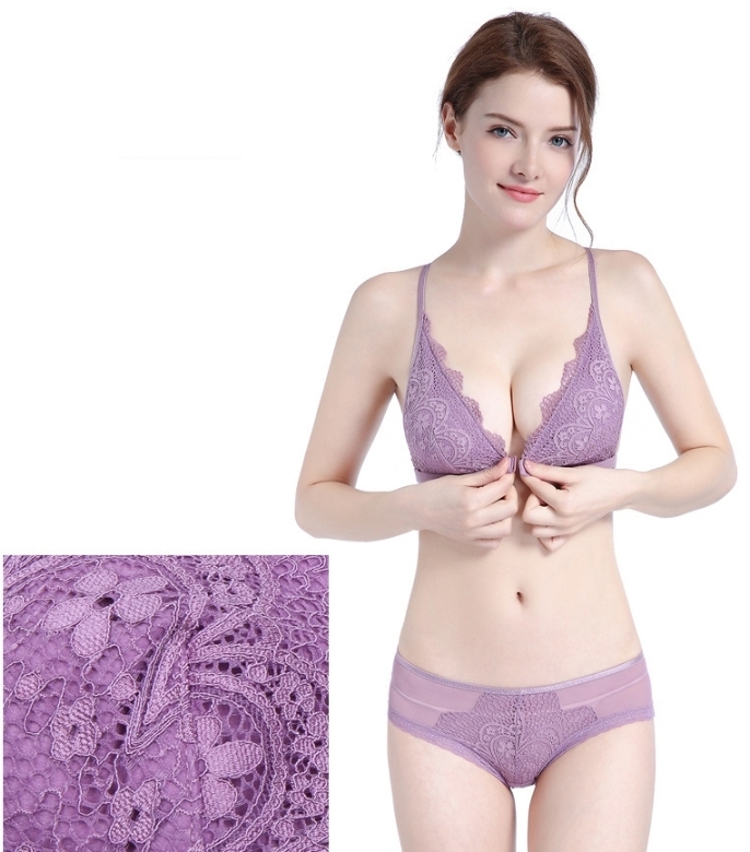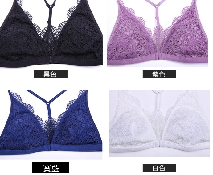 法系薄杯 前扣式內衣 (白/紫/藍/黑)