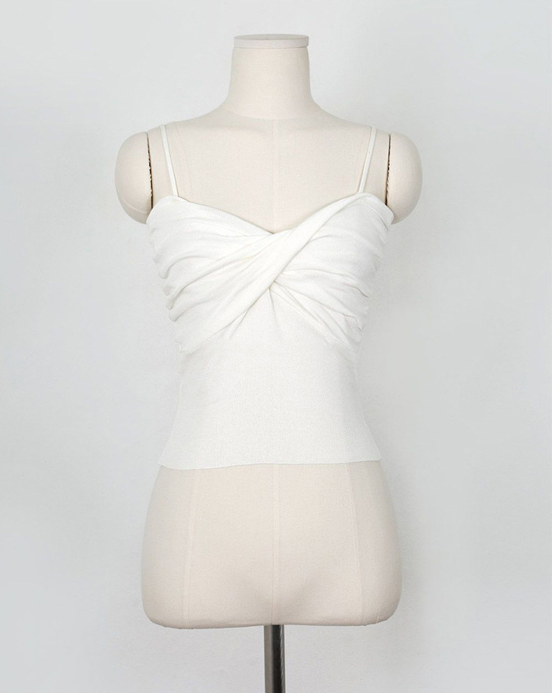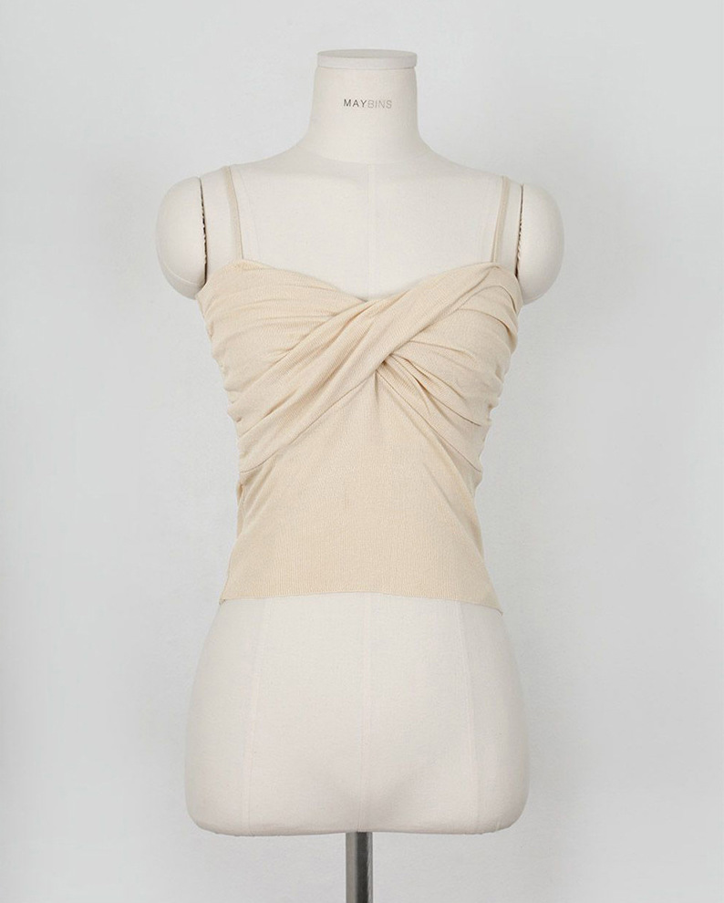 扭轉細肩帶背心(黑/白/杏)