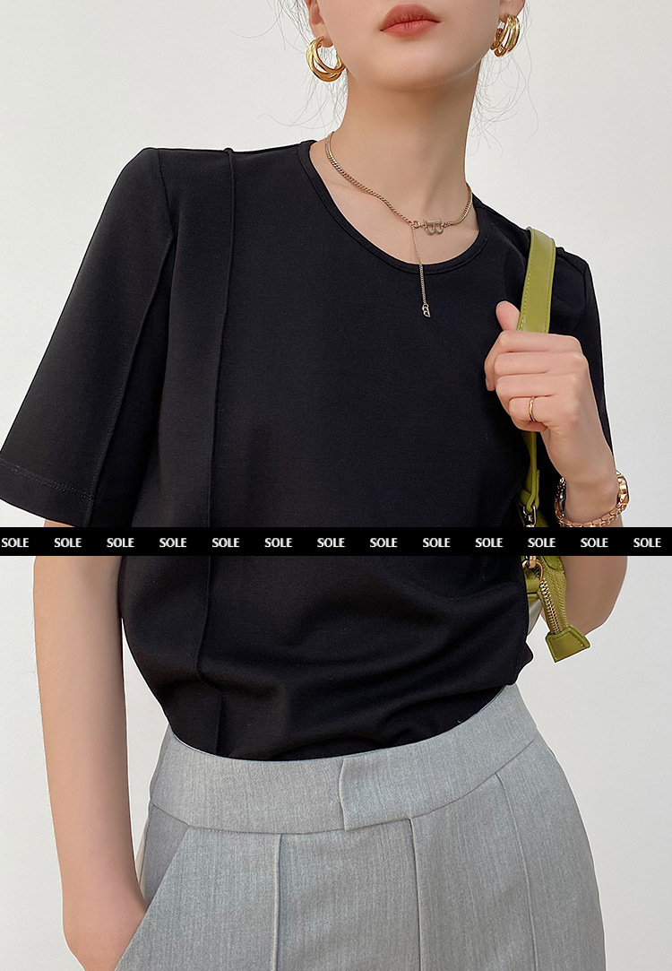 天絲棉五分袖 挺版免燙素T(黑/白)