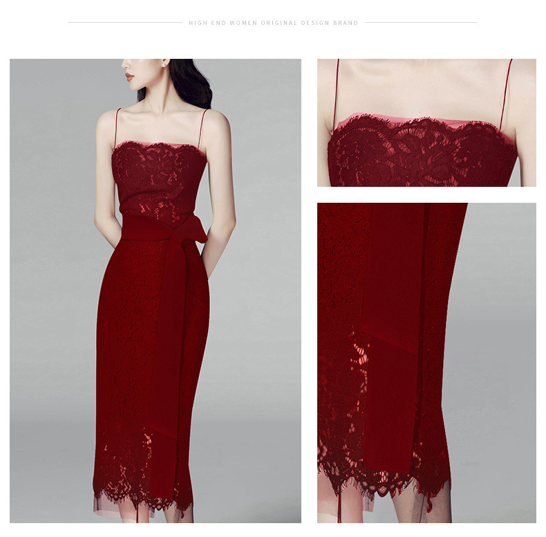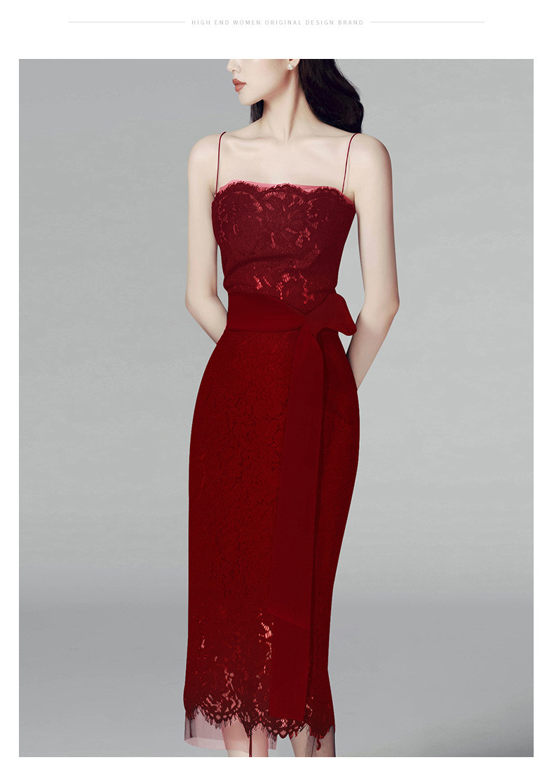 睫毛蕾絲拼接網紗 長洋裝