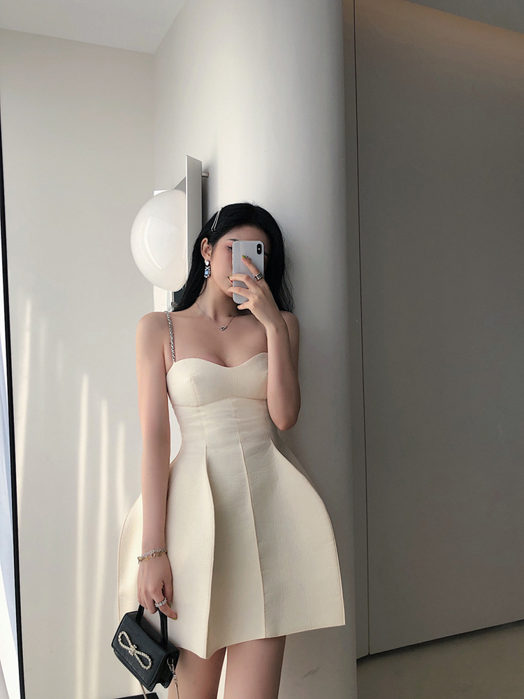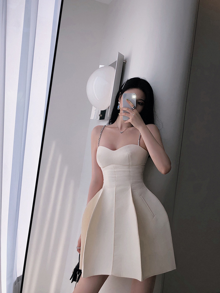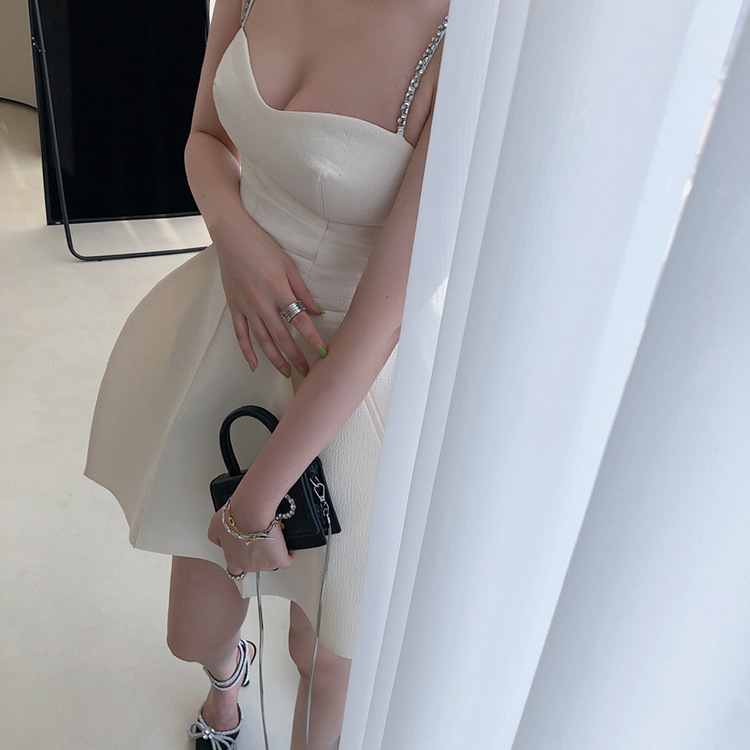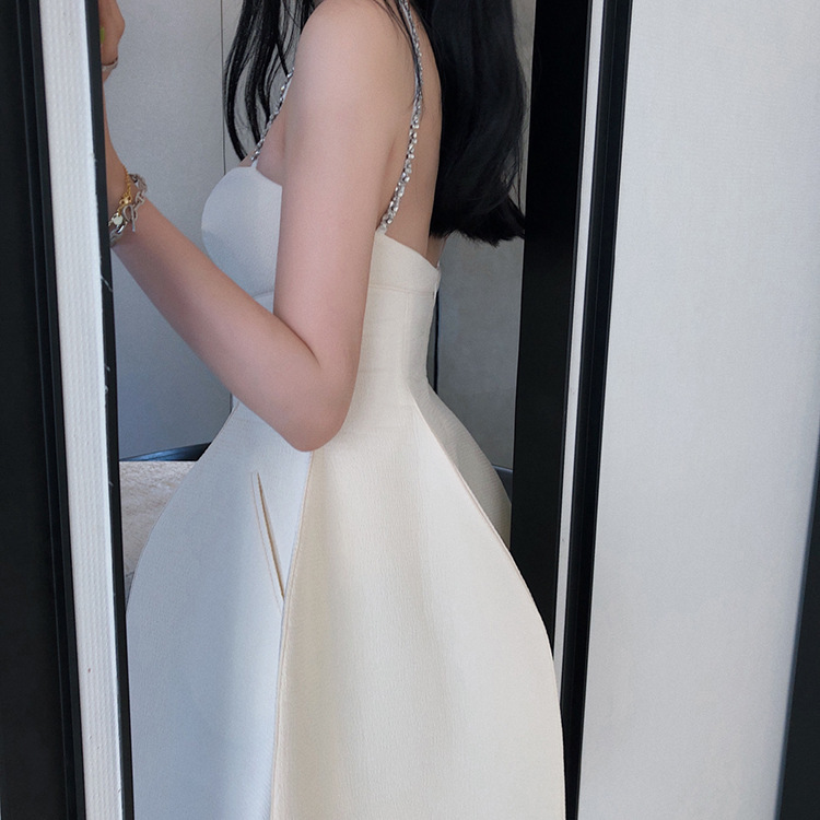 立體裙襬 水鑽肩帶小洋裝