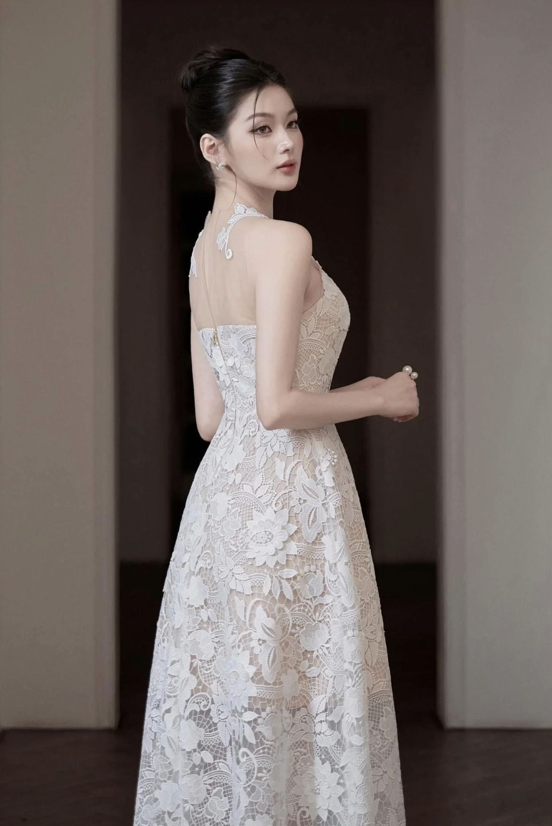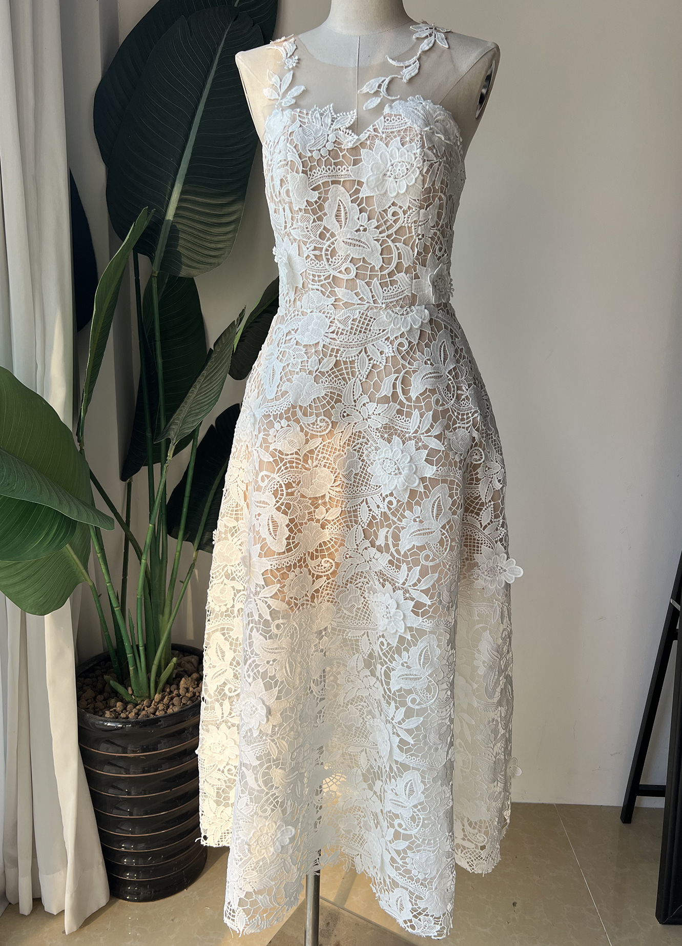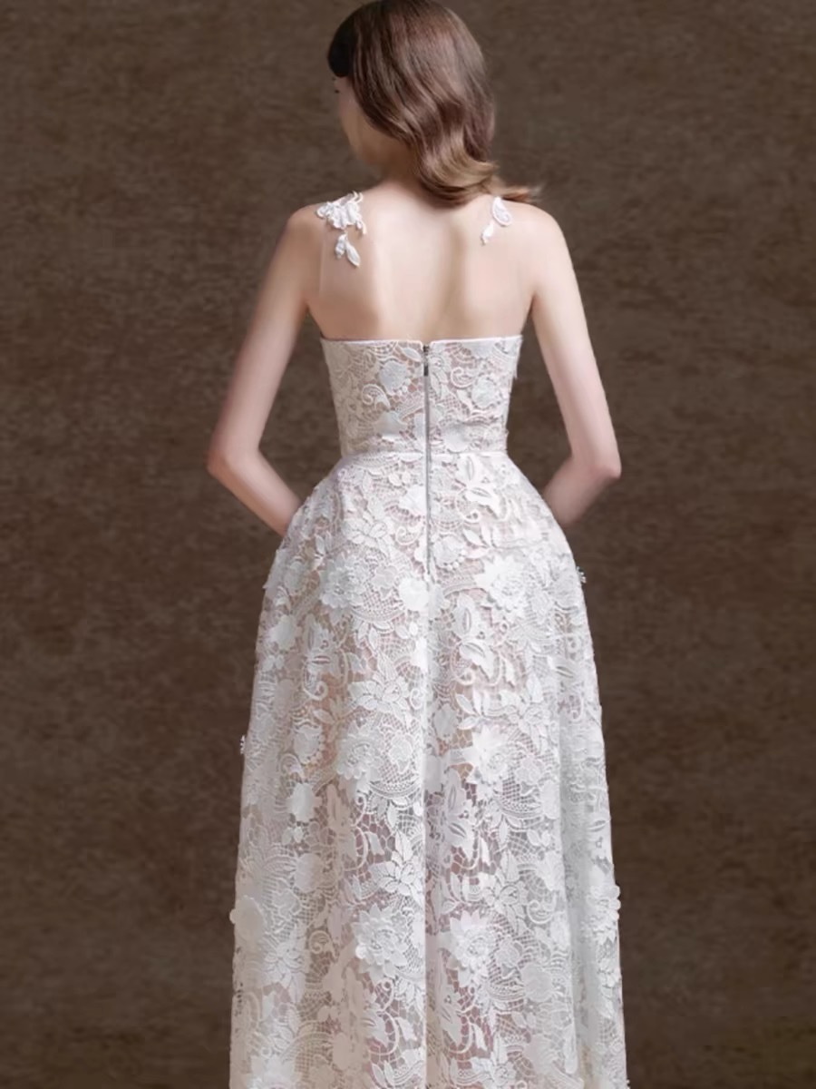網紗拼接水溶蕾絲長禮服