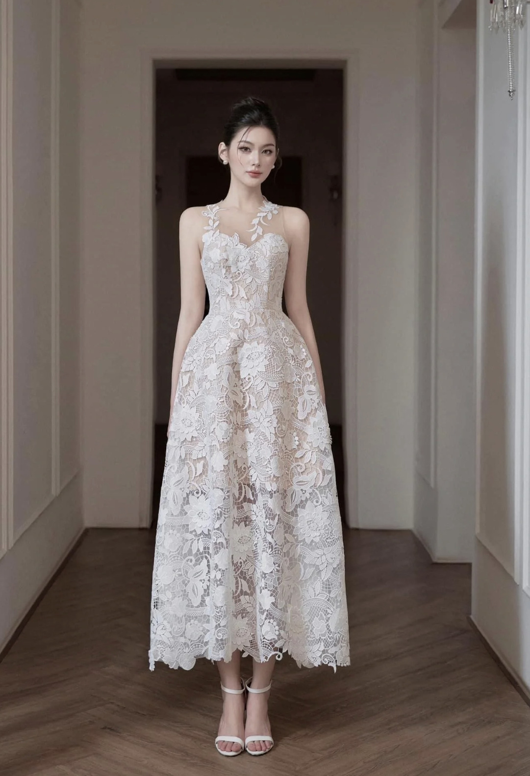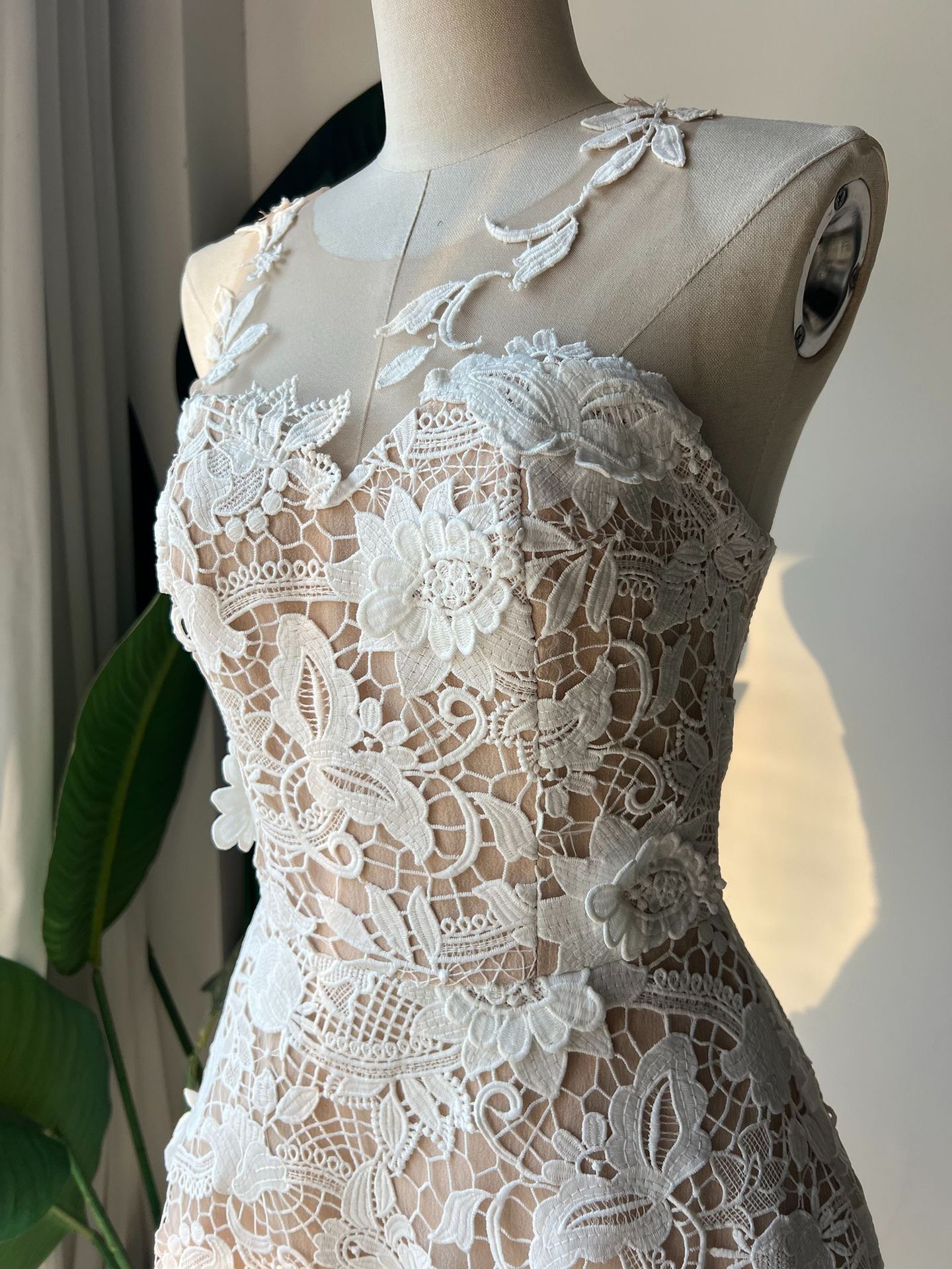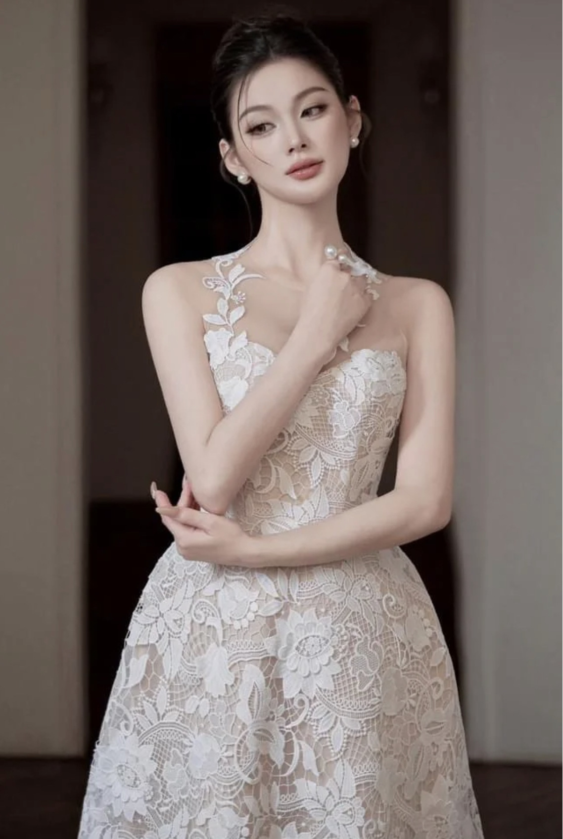網紗拼接水溶蕾絲長禮服