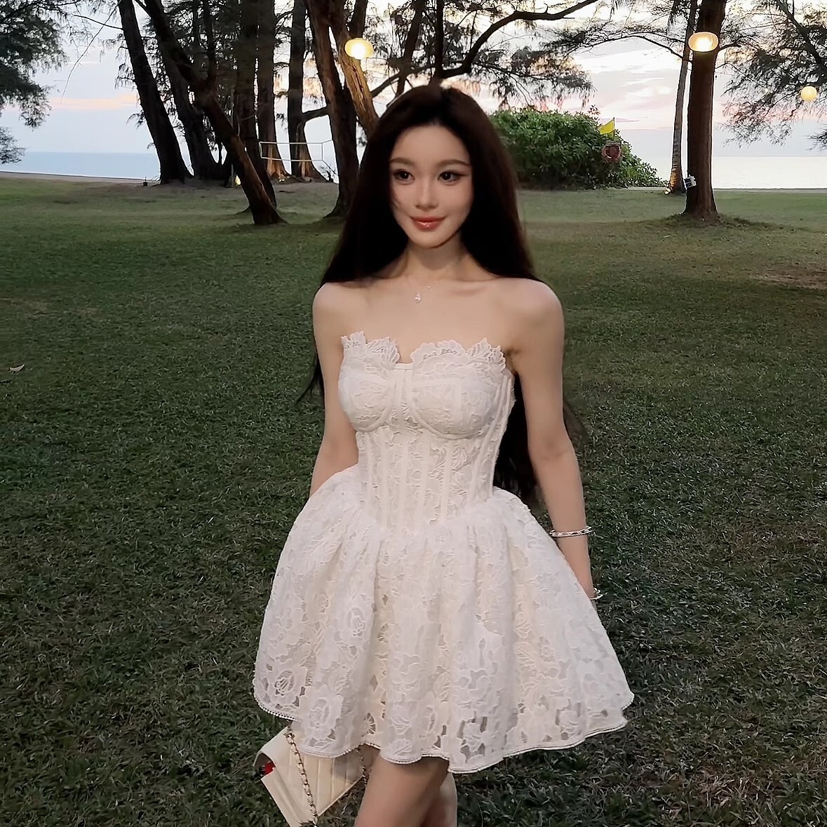 宮廷性感 魚骨收腰露肩小禮服