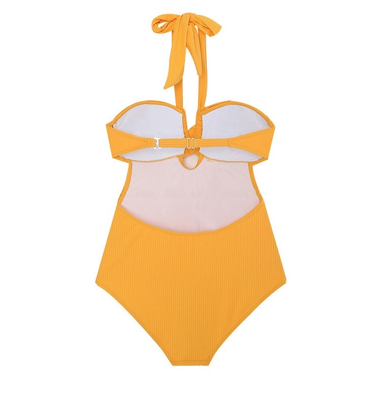 平口繞脖 連身泳衣(黃/黑)