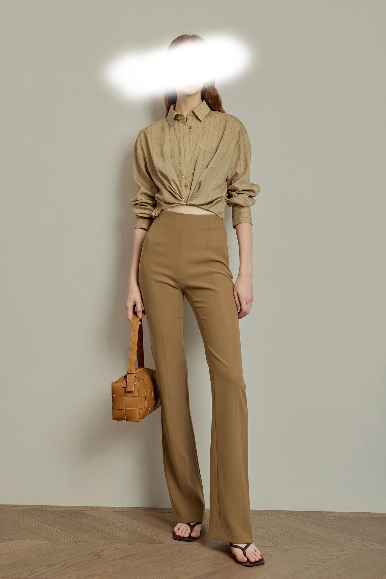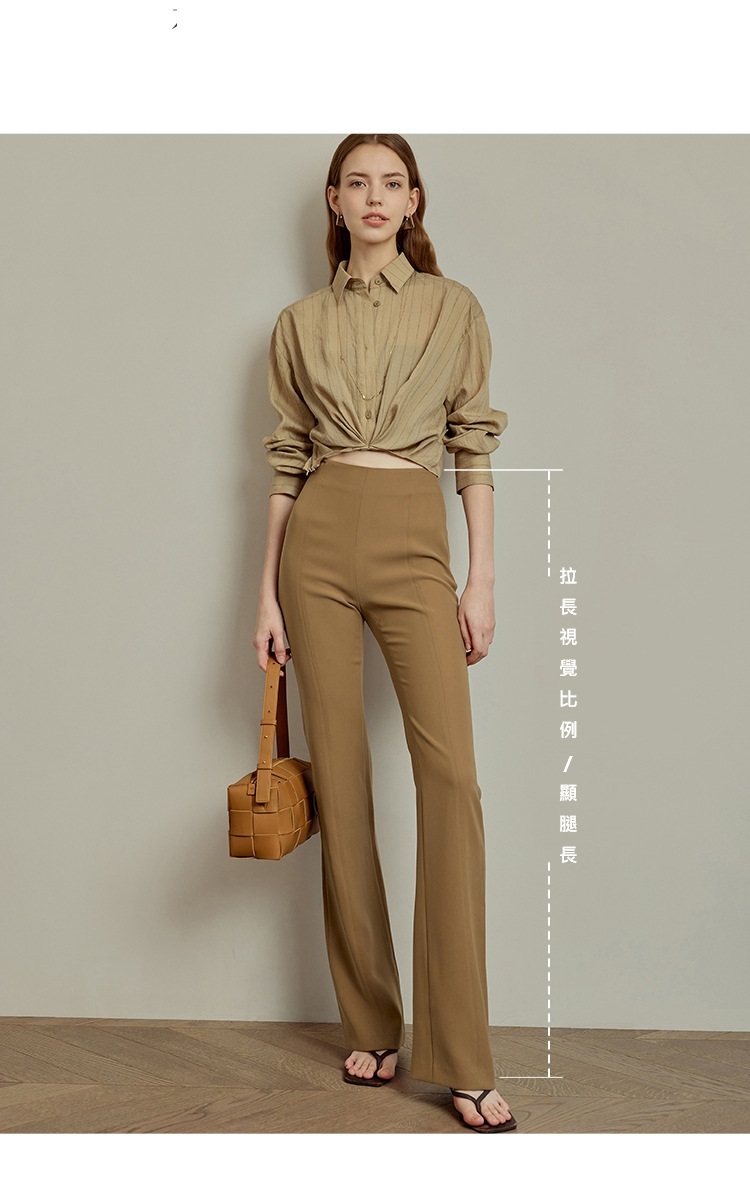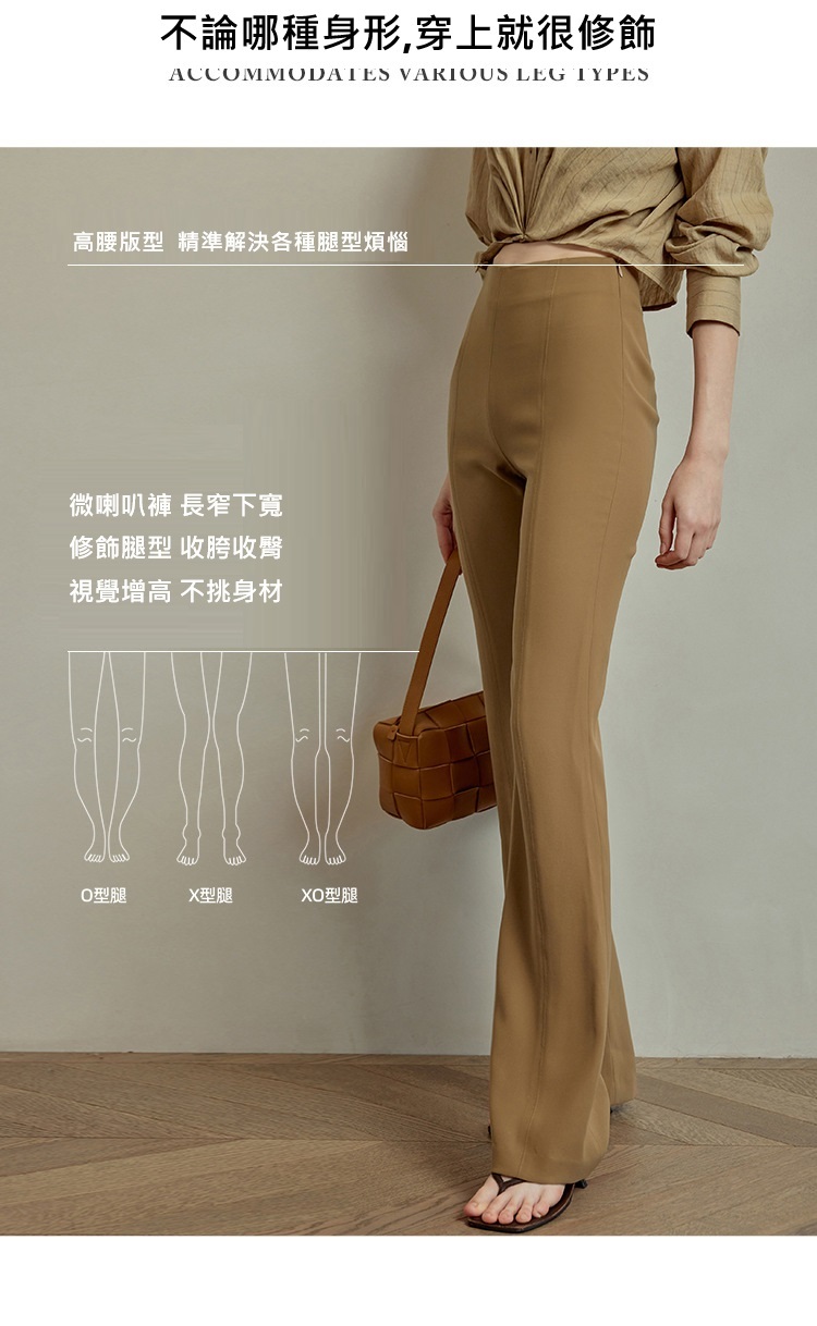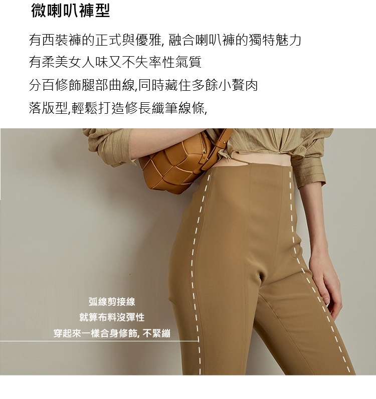 寬鬆舒適的喇叭褲型,飄逸隨興又顯瘦提臀。