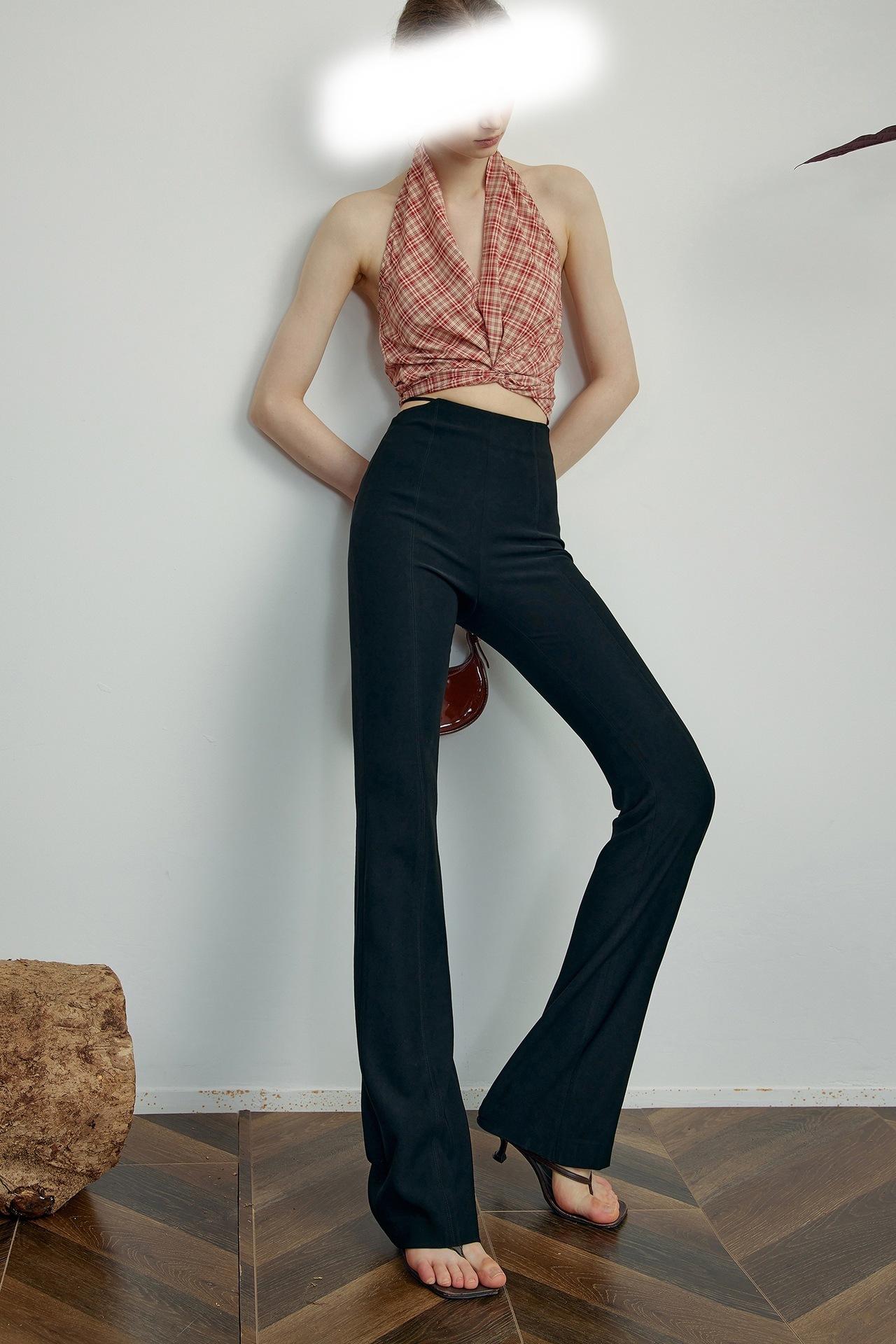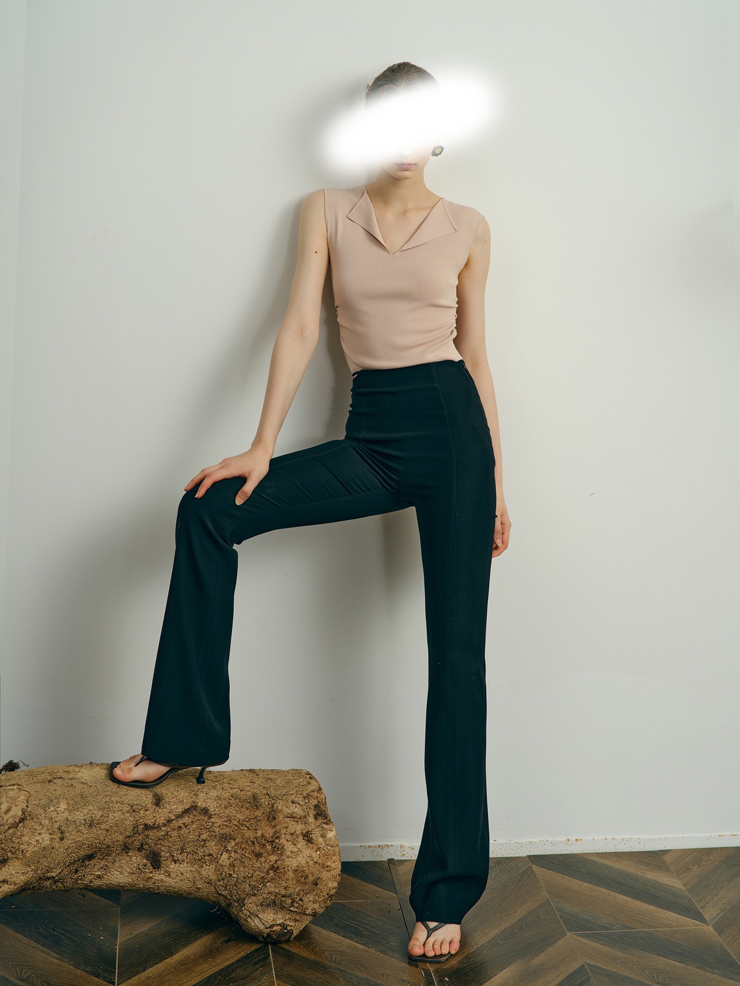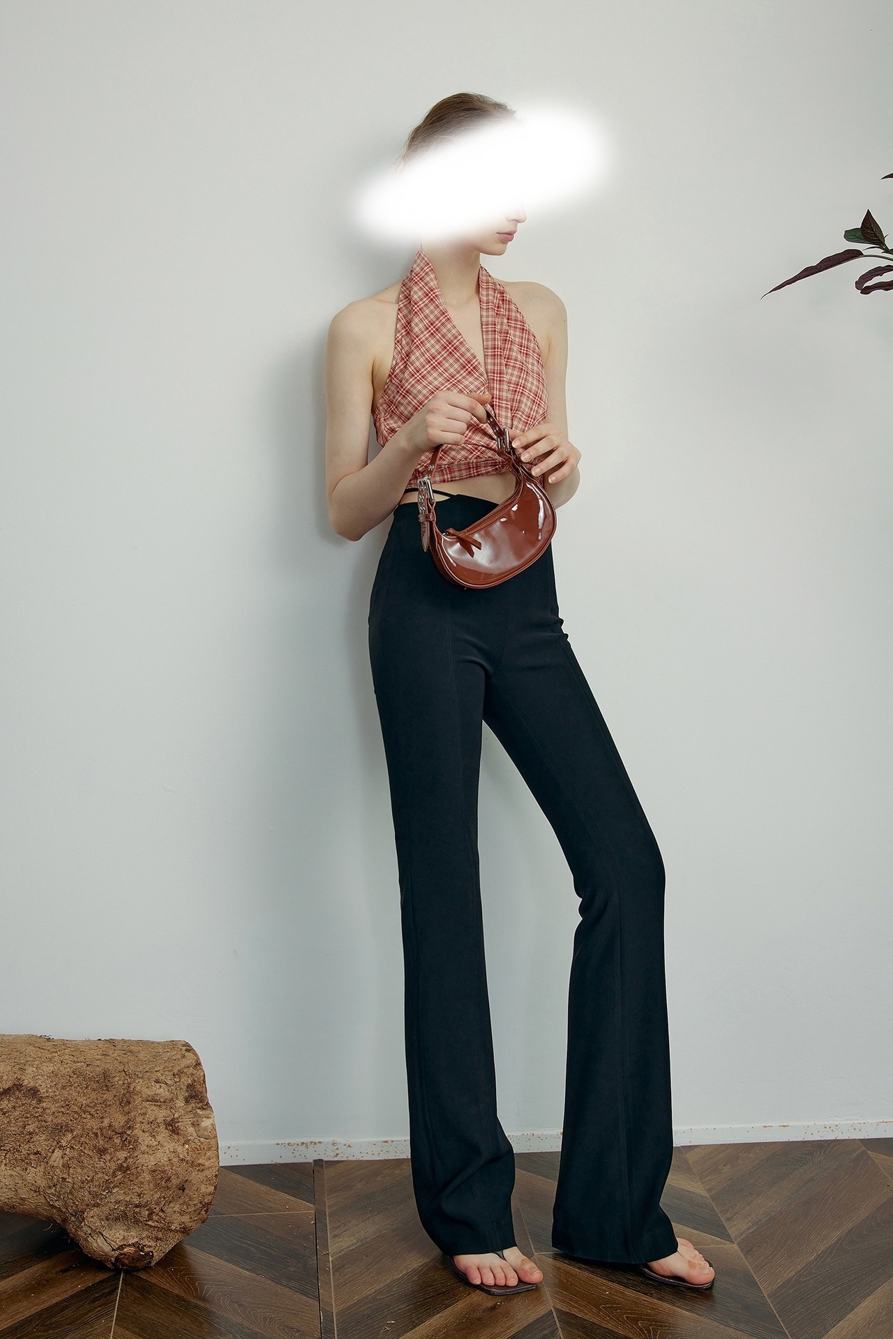 寬鬆舒適的喇叭褲型,飄逸隨興又顯瘦提臀。