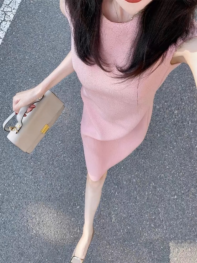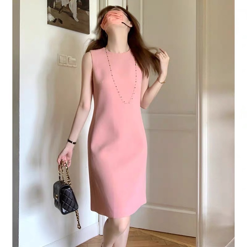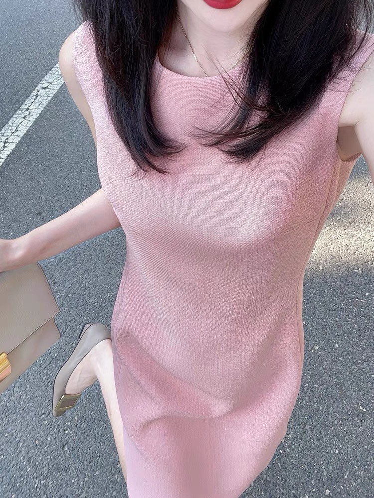 氣質小姐姐 粉色無袖洋裝