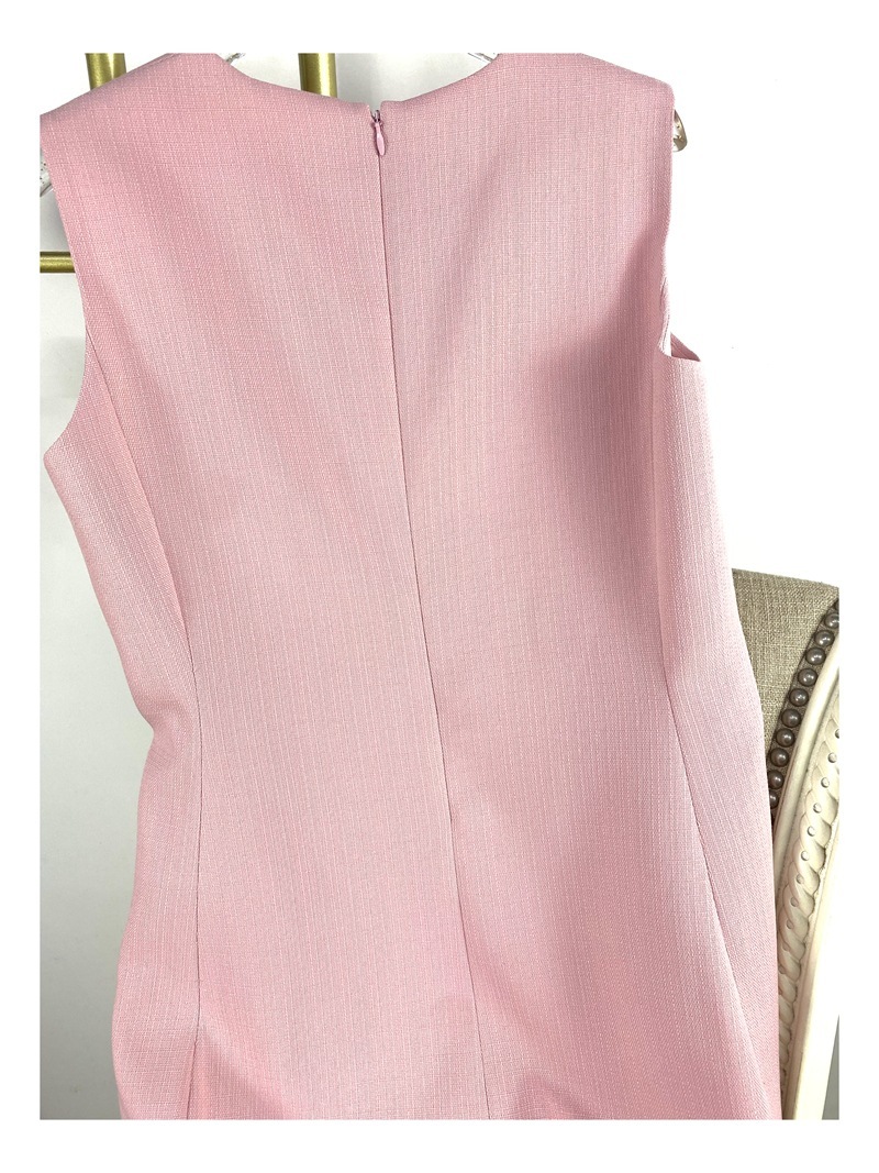 柔美的粉色調為這件無袖洋裝增添氣質。洋裝的簡約設計令人優雅大方。挺括的腰線展現妳迷人的身材曲線。這件舒適好穿的洋裝是最佳的日常穿搭及約會裝扮選擇。無論是正裝場合或是休閒時光,這件洋裝都能為穿著者營造出清新甜美的氣質。