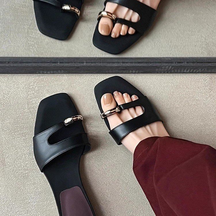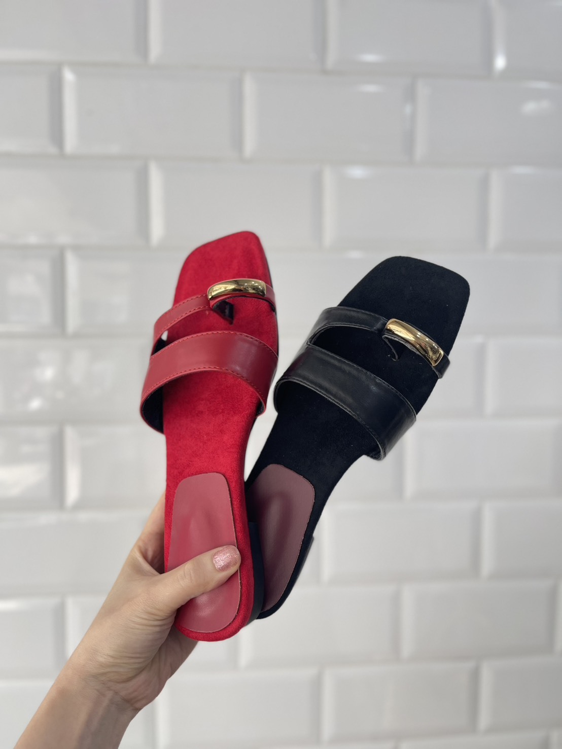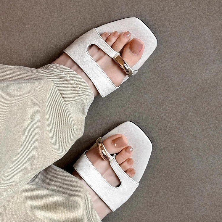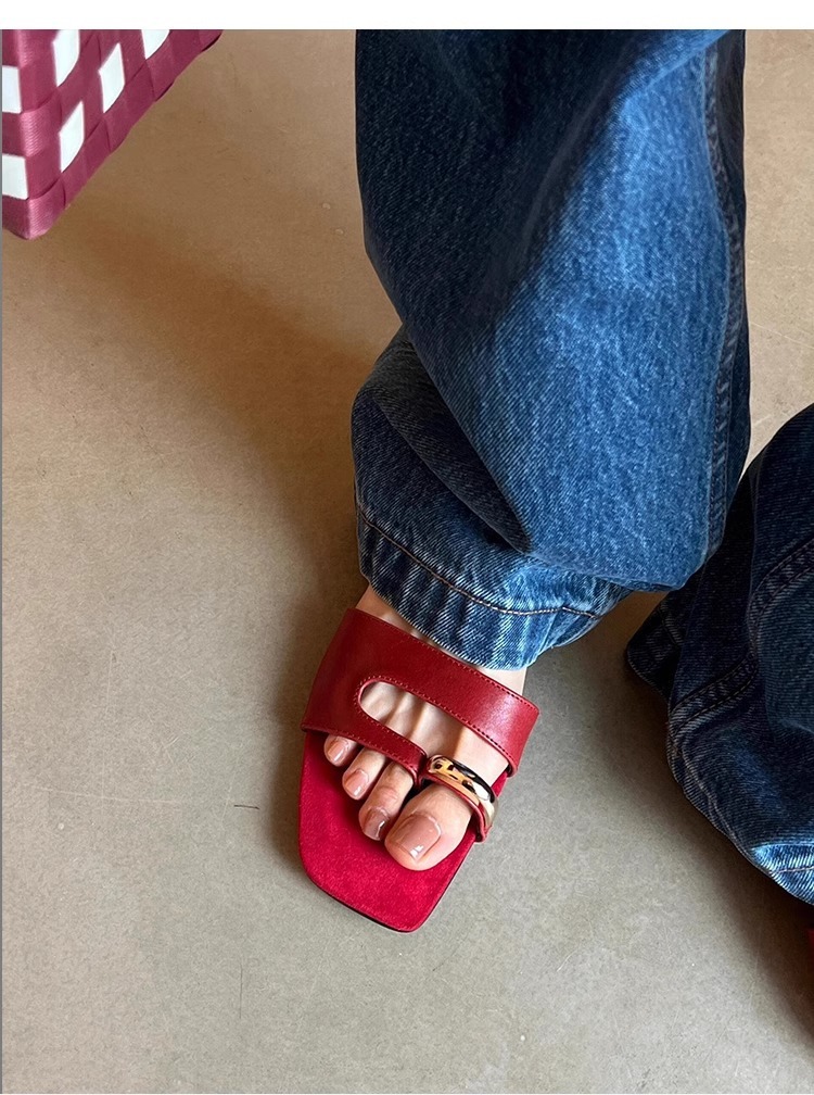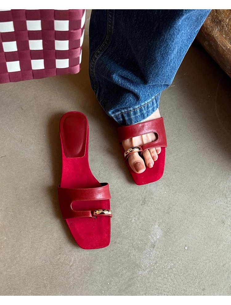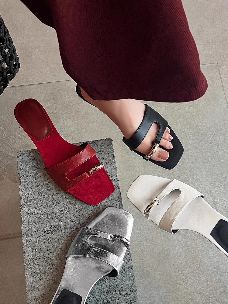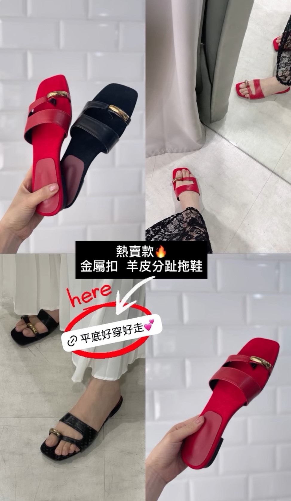 金屬釦 羊皮分趾拖鞋(35-40)(紅/白/銀/黑)