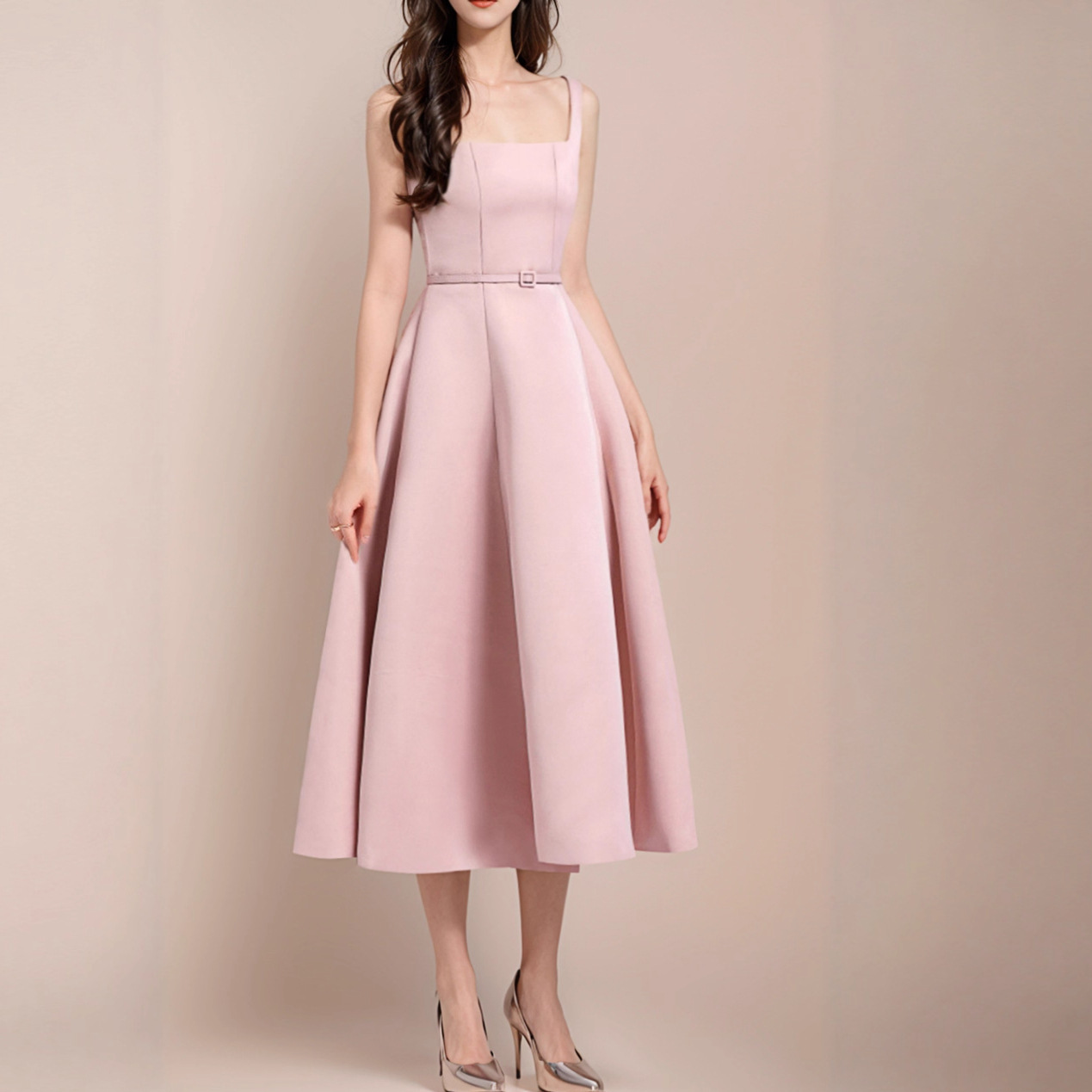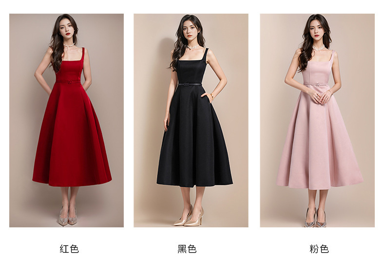 方領收腰 挺版長洋裝(3色)
