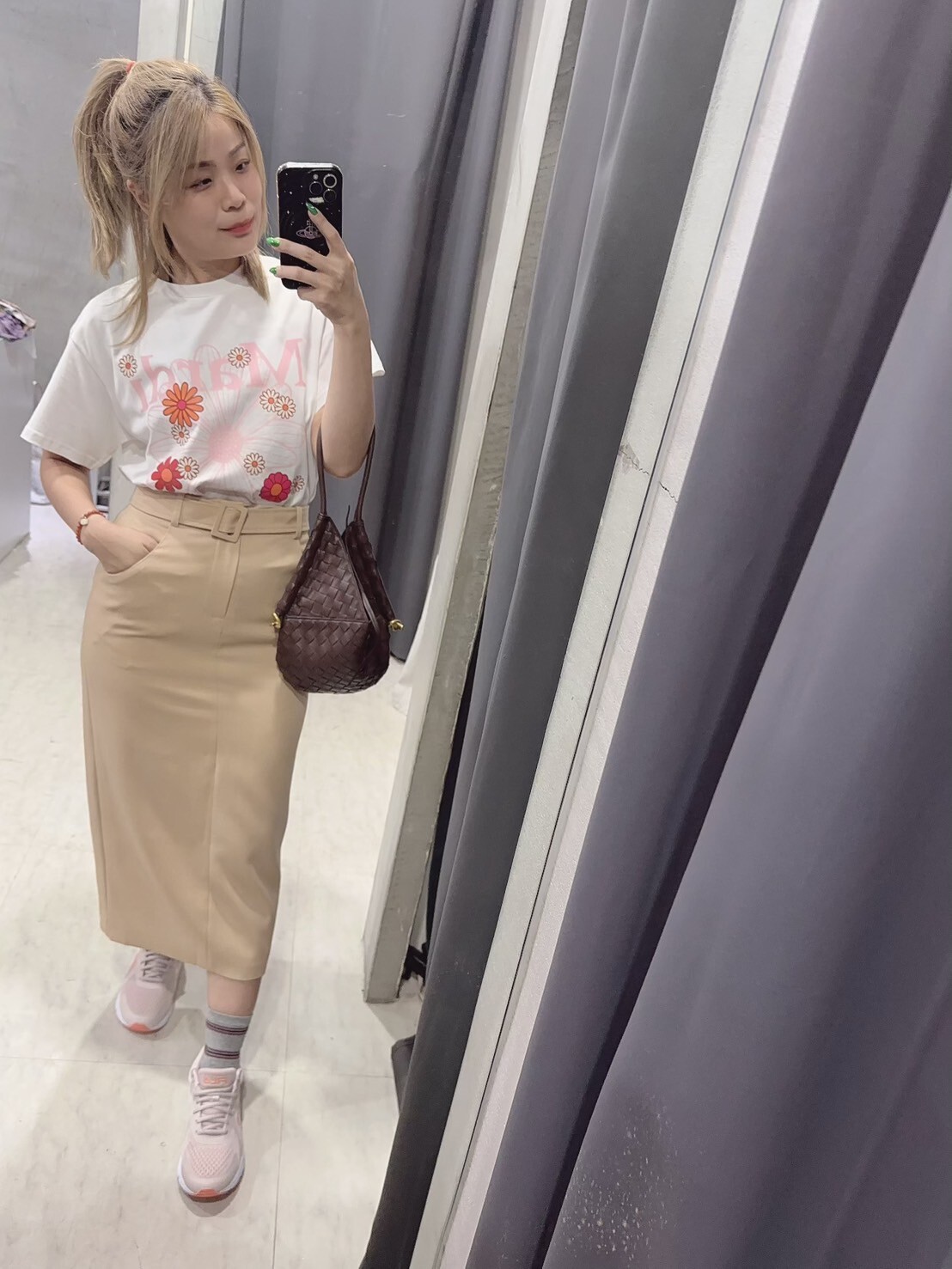 高腰裙剪裁修飾身形,展現時尚優雅。