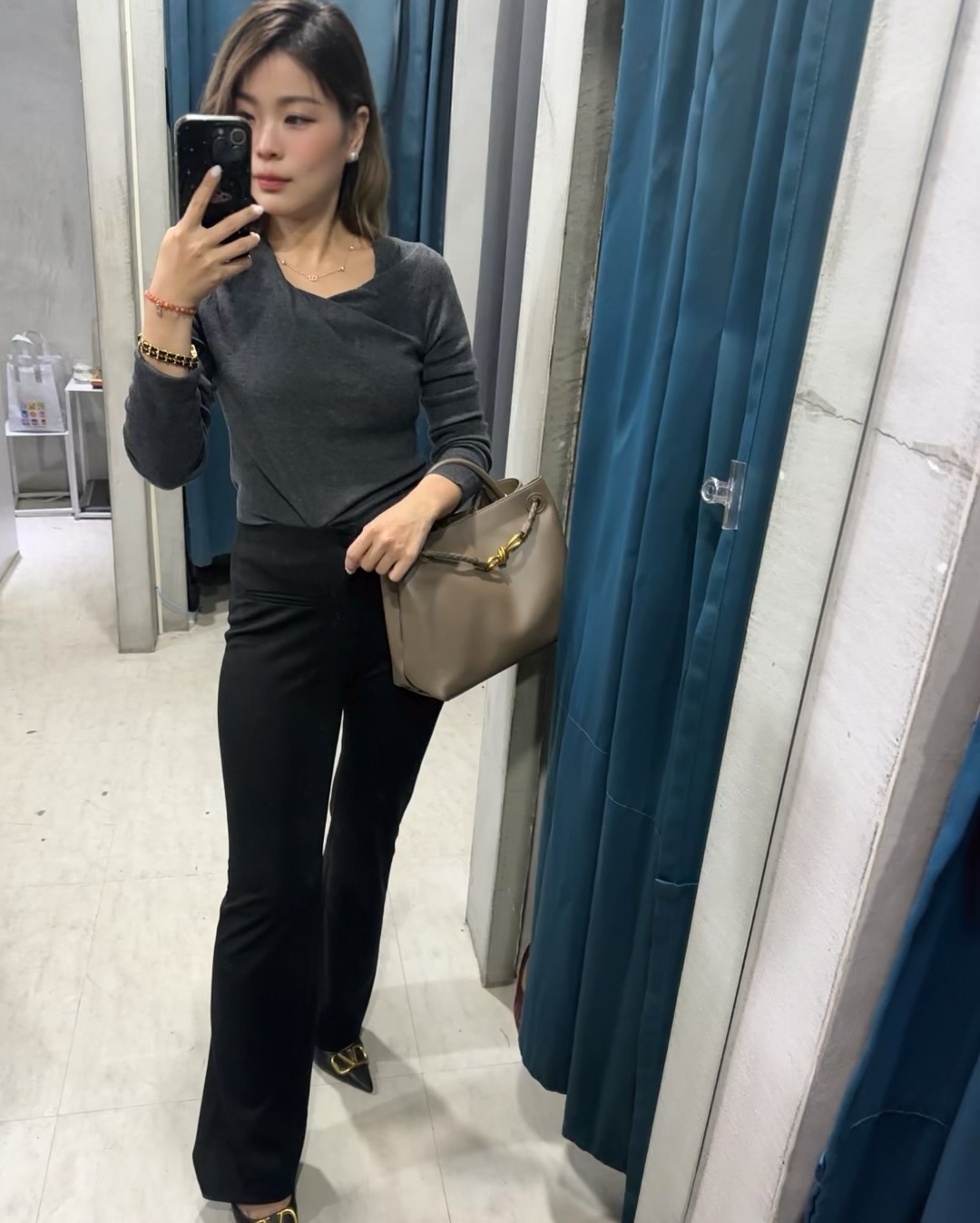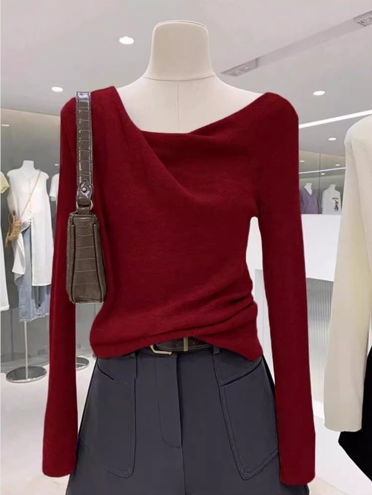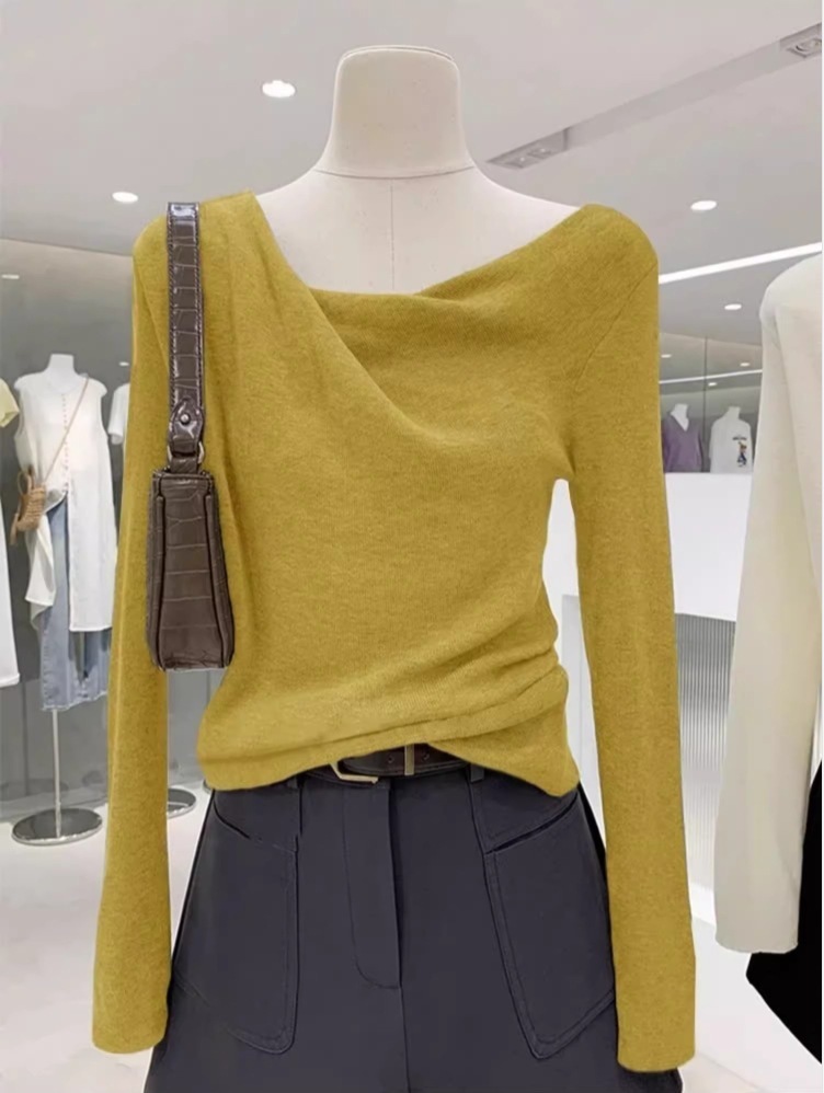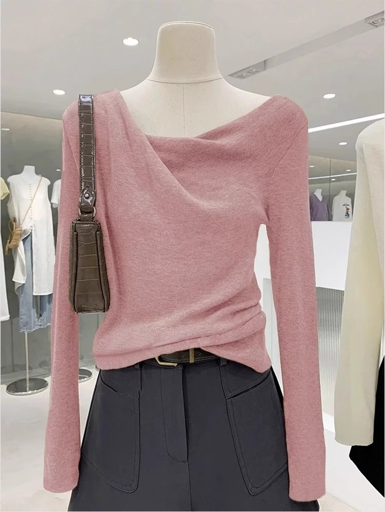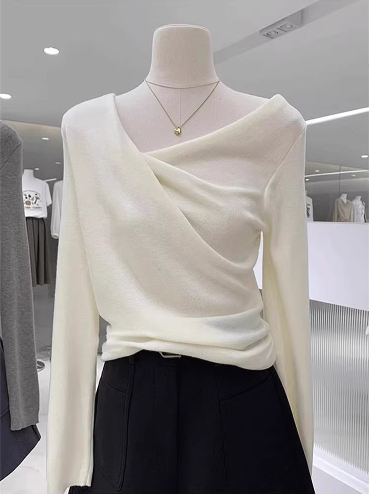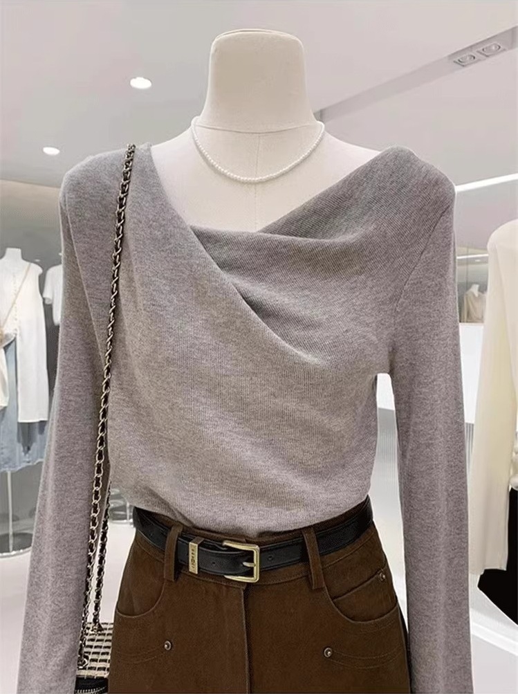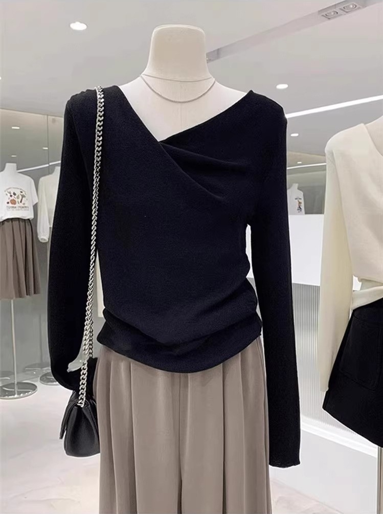 不規則垂墜領 長袖針織上衣(多色)