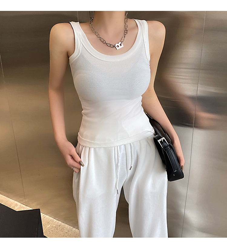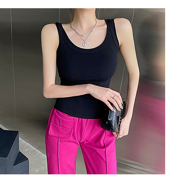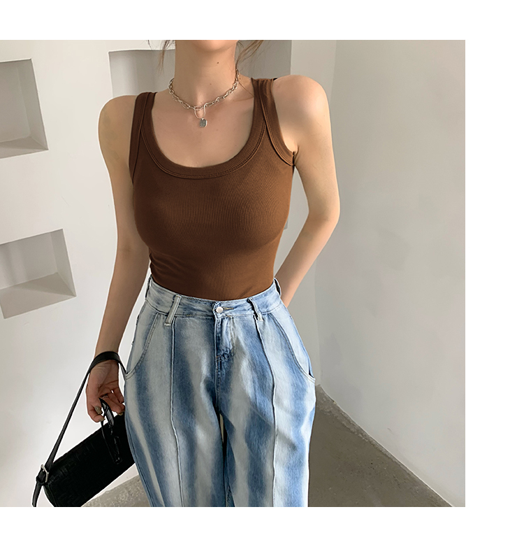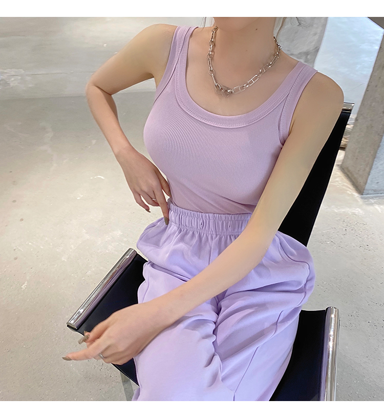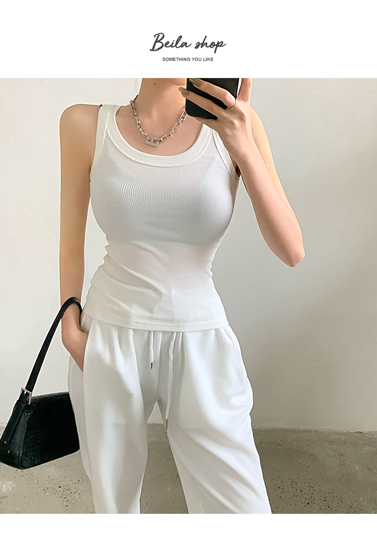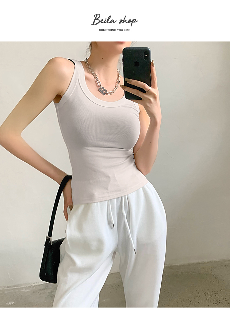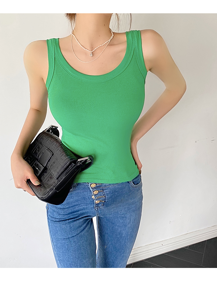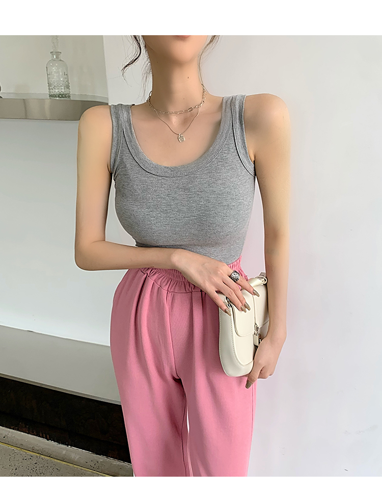 這款背心剪裁修飾,緊緻貼身,展現妳的好身材。柔軟棉質材質舒適透氣,搭配簡單百搭的螺紋紋理,多色選擇可以搭配不同造型。無袖設計能為妳突顯纖長手臂,穿搭休閒又不失時髦。