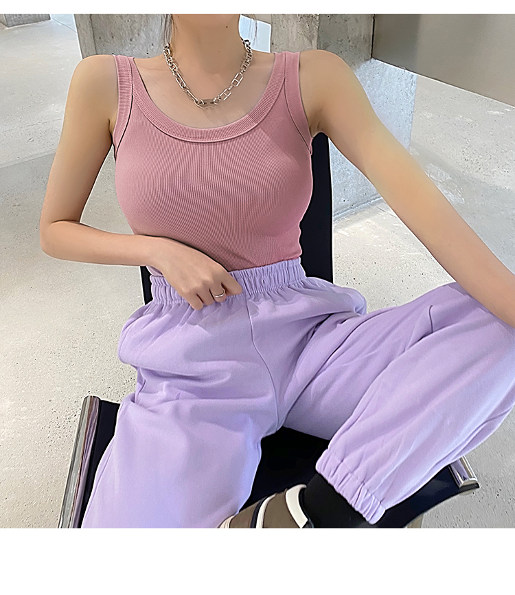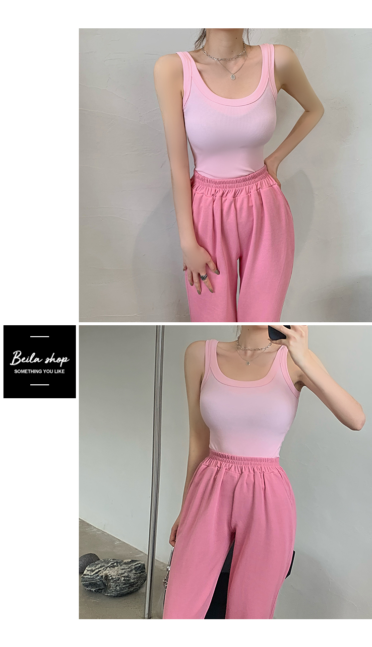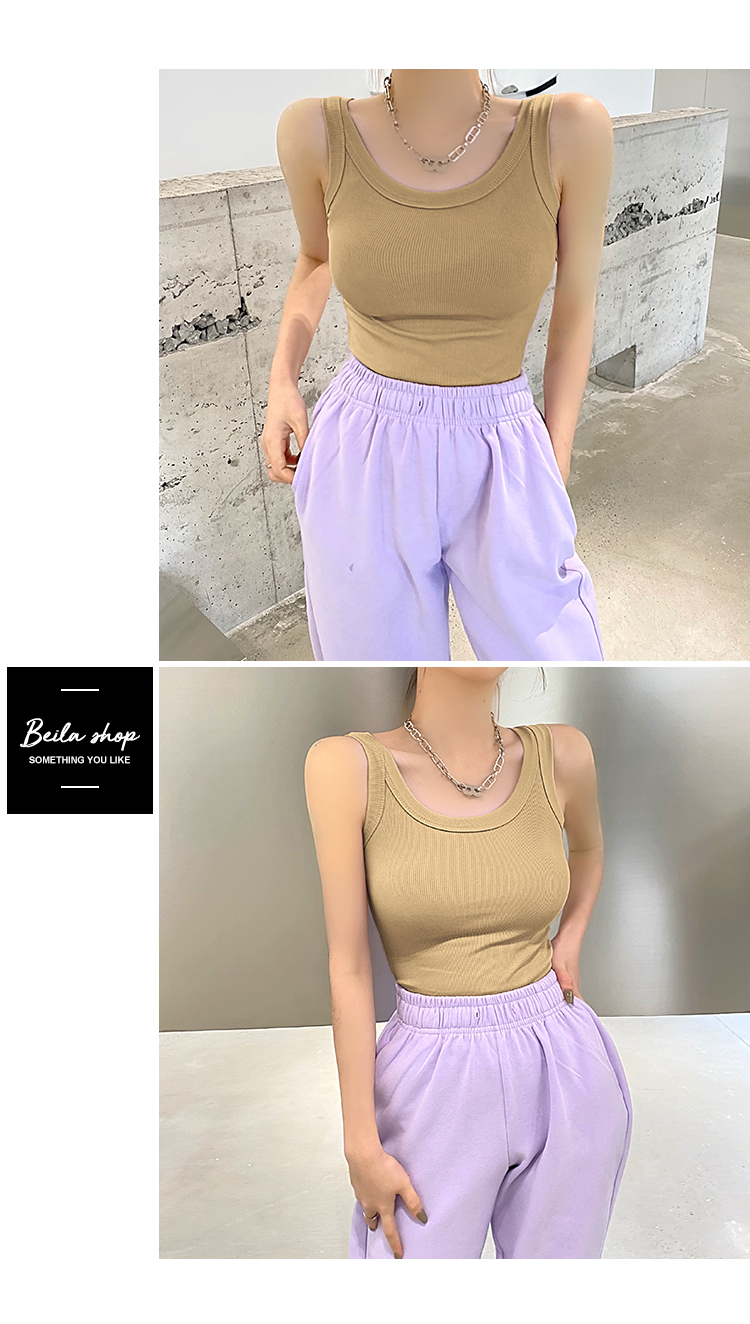 性感工字背 帶胸墊棉質上衣(紫/淺藍/粉/杏/灰/咖/黑)(顏色備註)