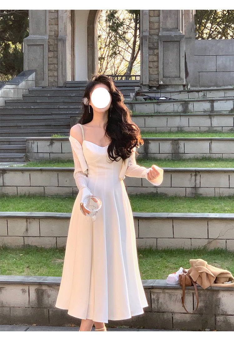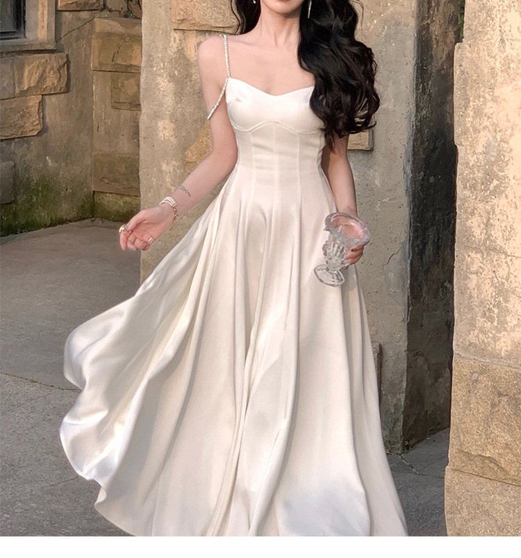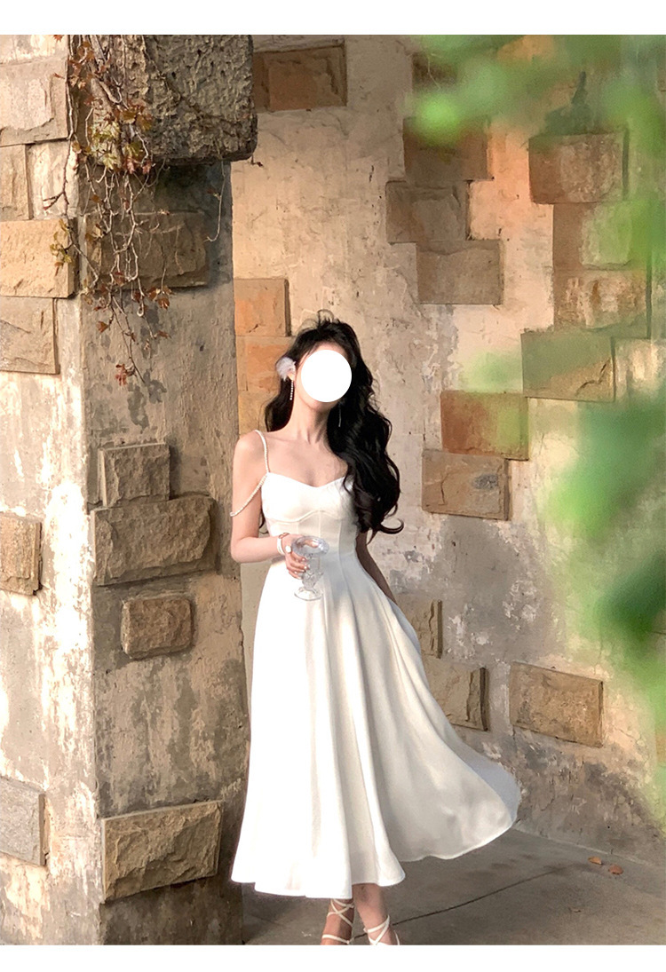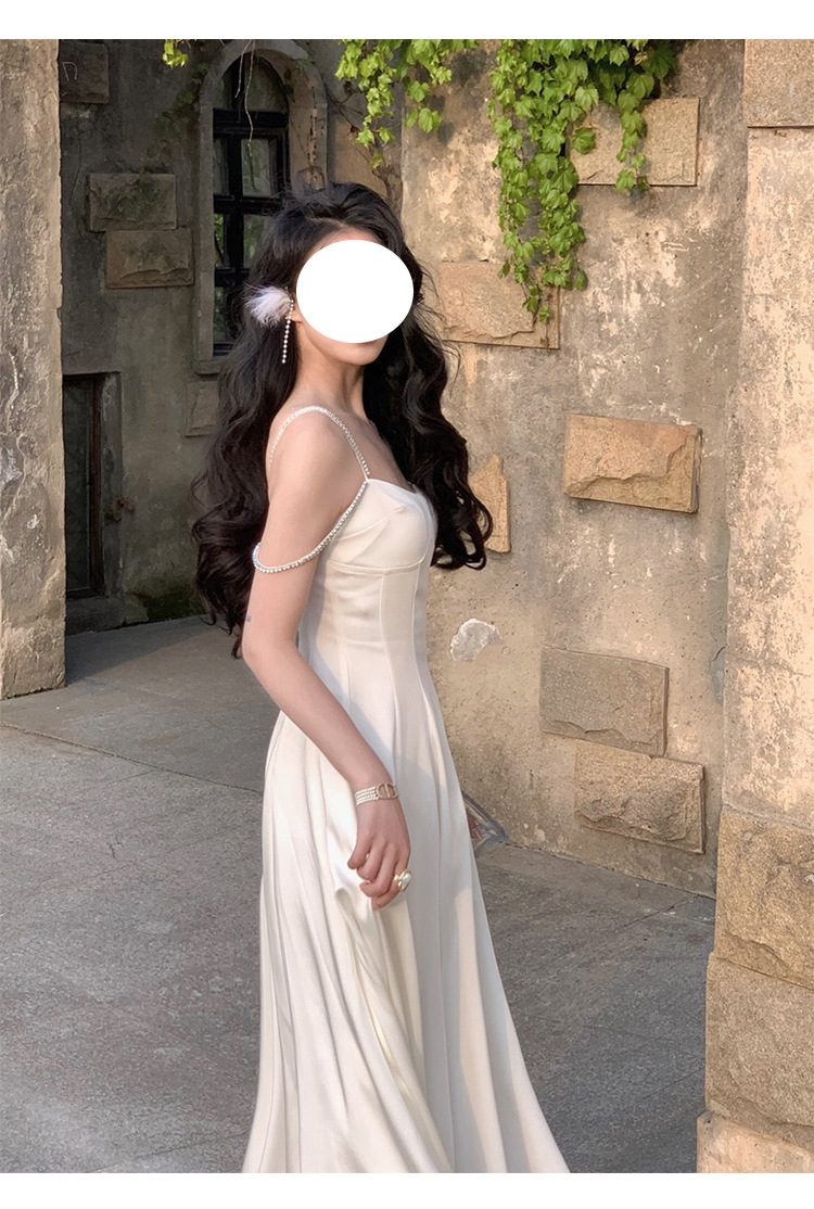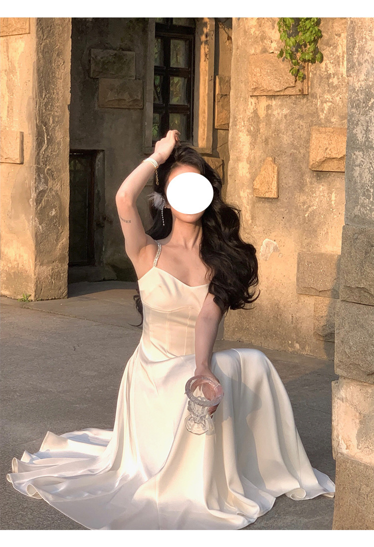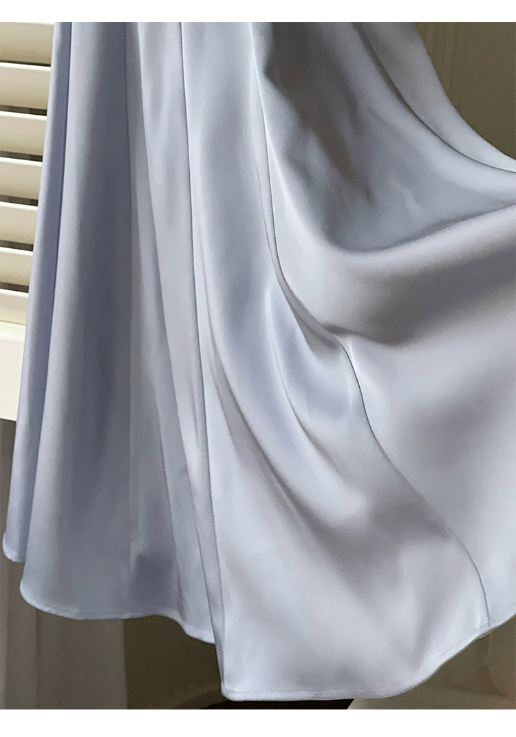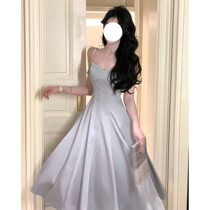 綢緞灰藍色 鑽肩帶小禮服