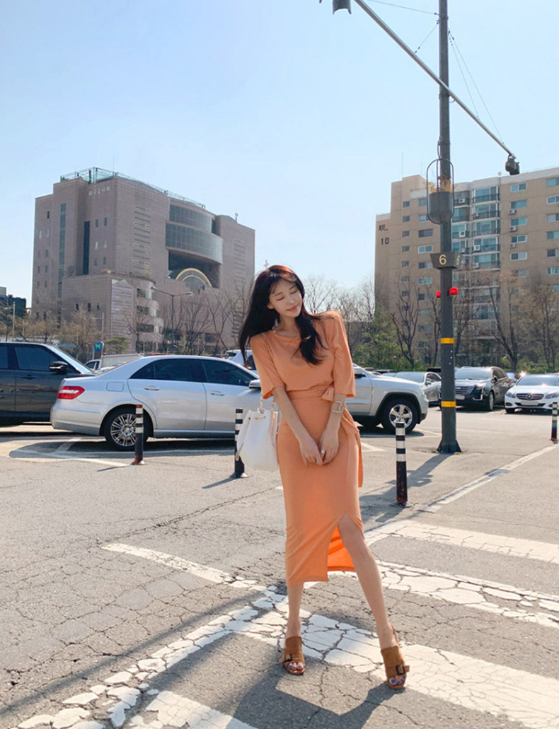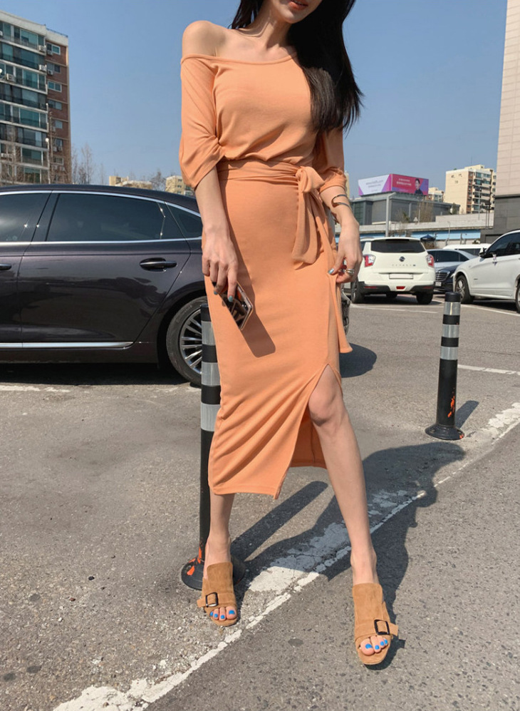 前開衩設計,增添優雅動感,適合夏日或約會場合穿搭。