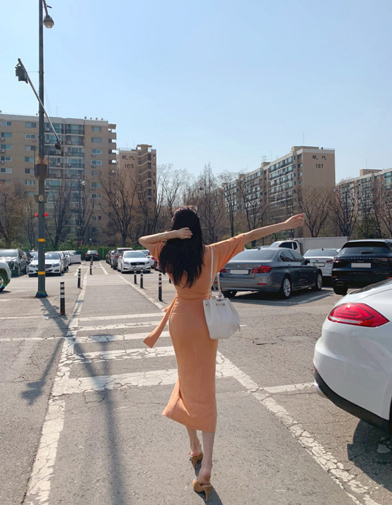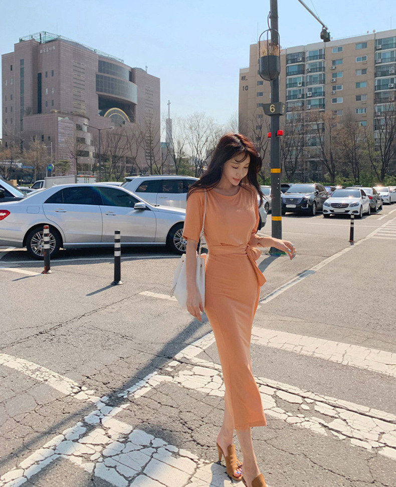 腰間綁帶設計,可調整束腰度,凸顯纖細身段。