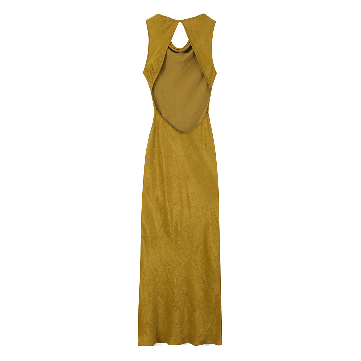 綢緞露背收腰長洋裝