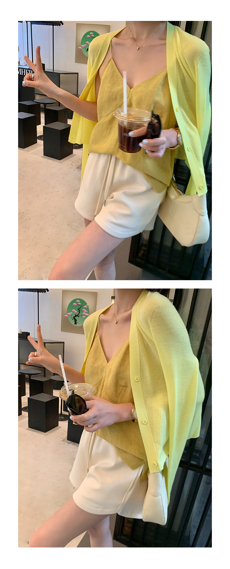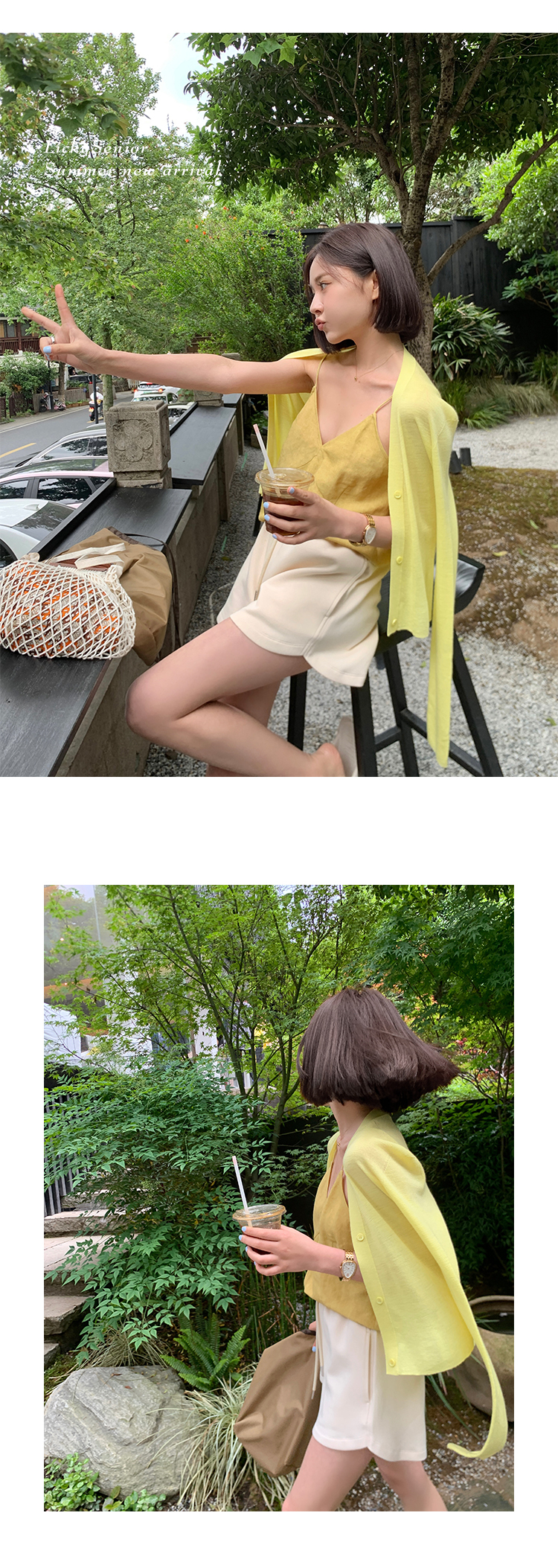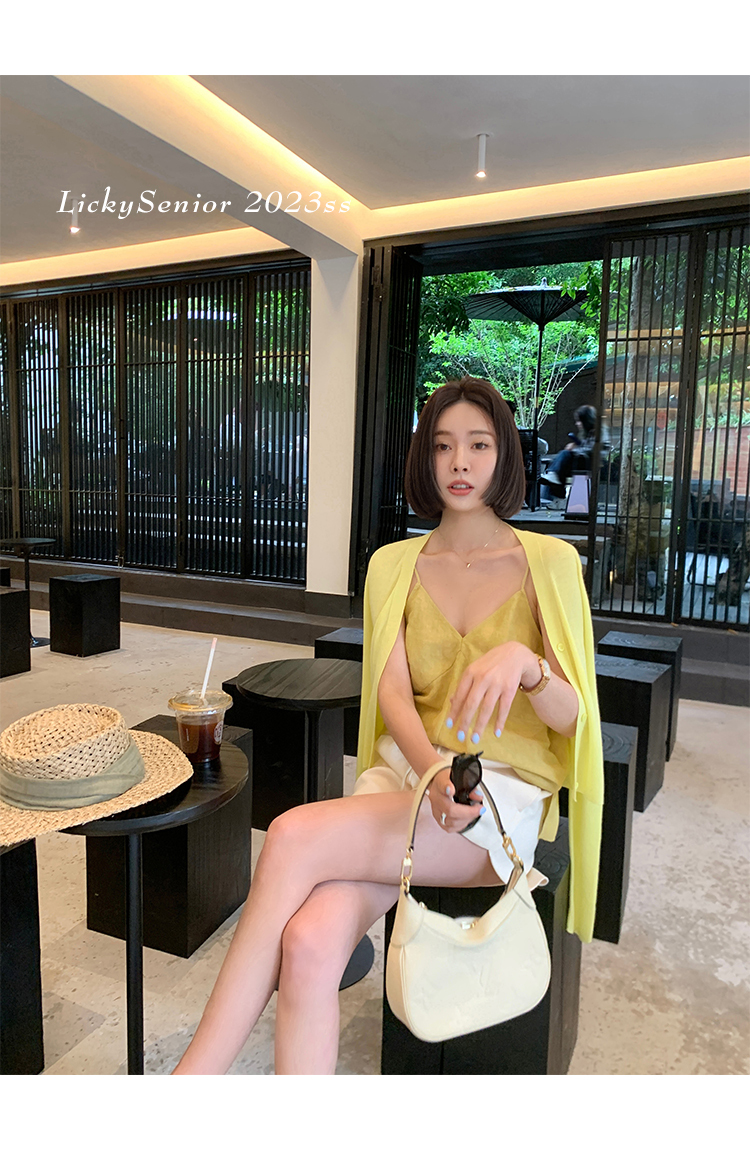 輕柔 U 領背心搭配簡約針織外套,展現柔和甜美的休閒風情。U 領設計優雅性感,修身版型勾勒出自然曲線。針織外套質地細緻柔軟,遮蓋適度,營造柔和氣質。多種顏色選擇,可搭配多種場合,是春夏外出的時尚好選擇。